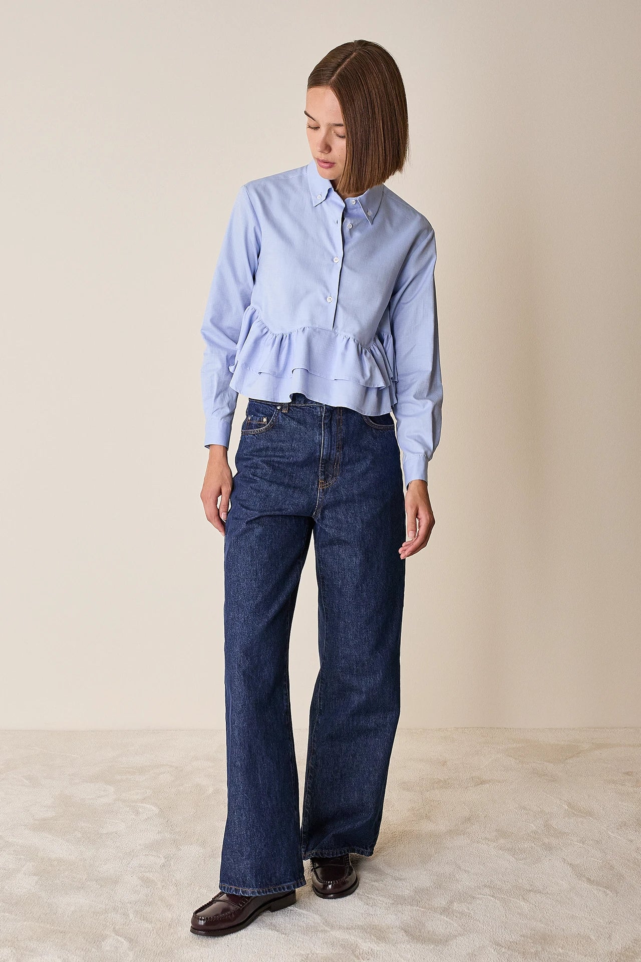 Nothing beats the versatility of classic five-pocket jeans. Dress them up with a silk shirt and Mary Janes or keep it casual with an oversized crewneck and sneakers. Designed with a straight, slightly oversized cut inspired by '90s styles, our five-pocket jeans come in two timeless washes: deep blue and vintage-effect.