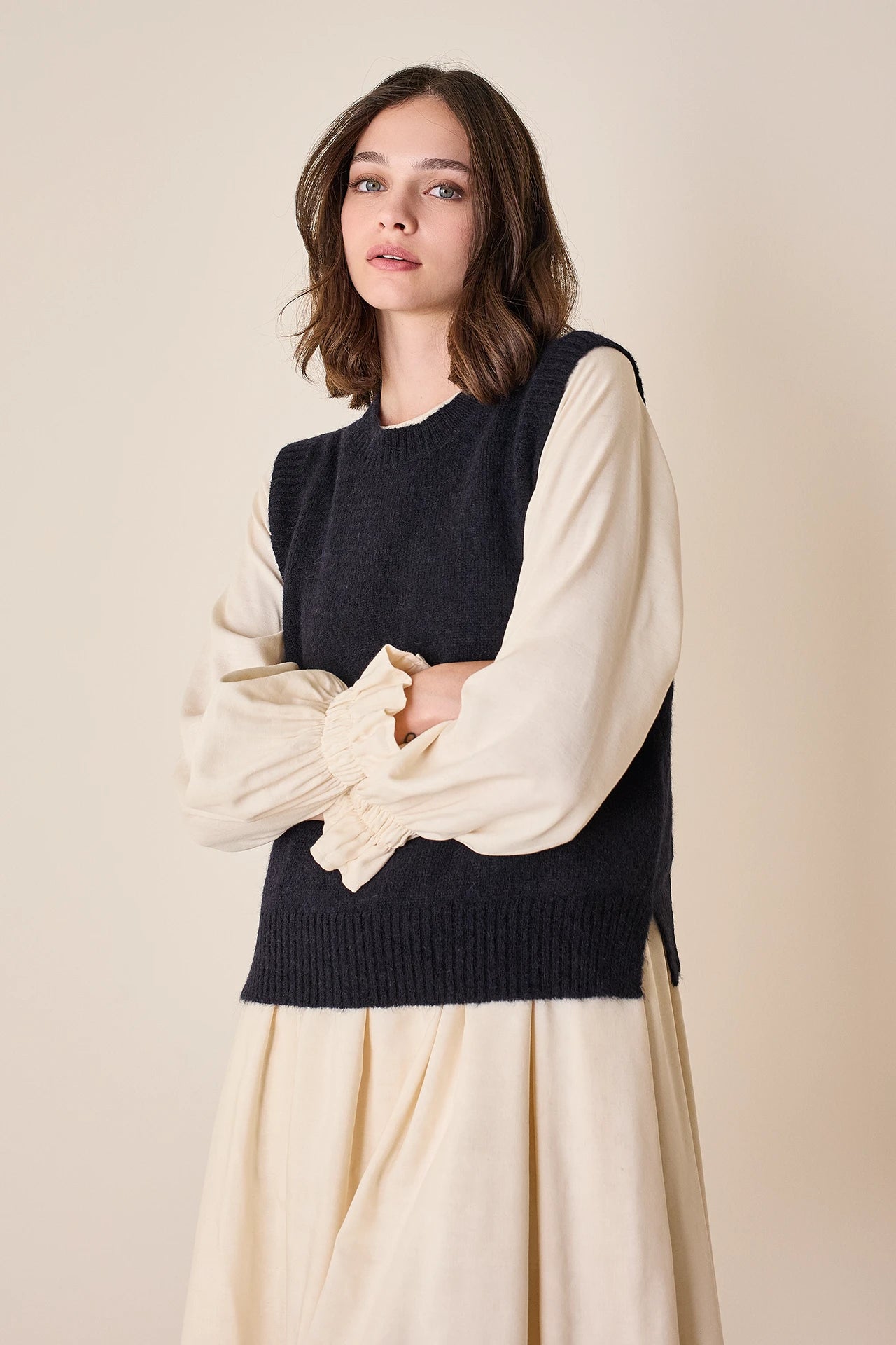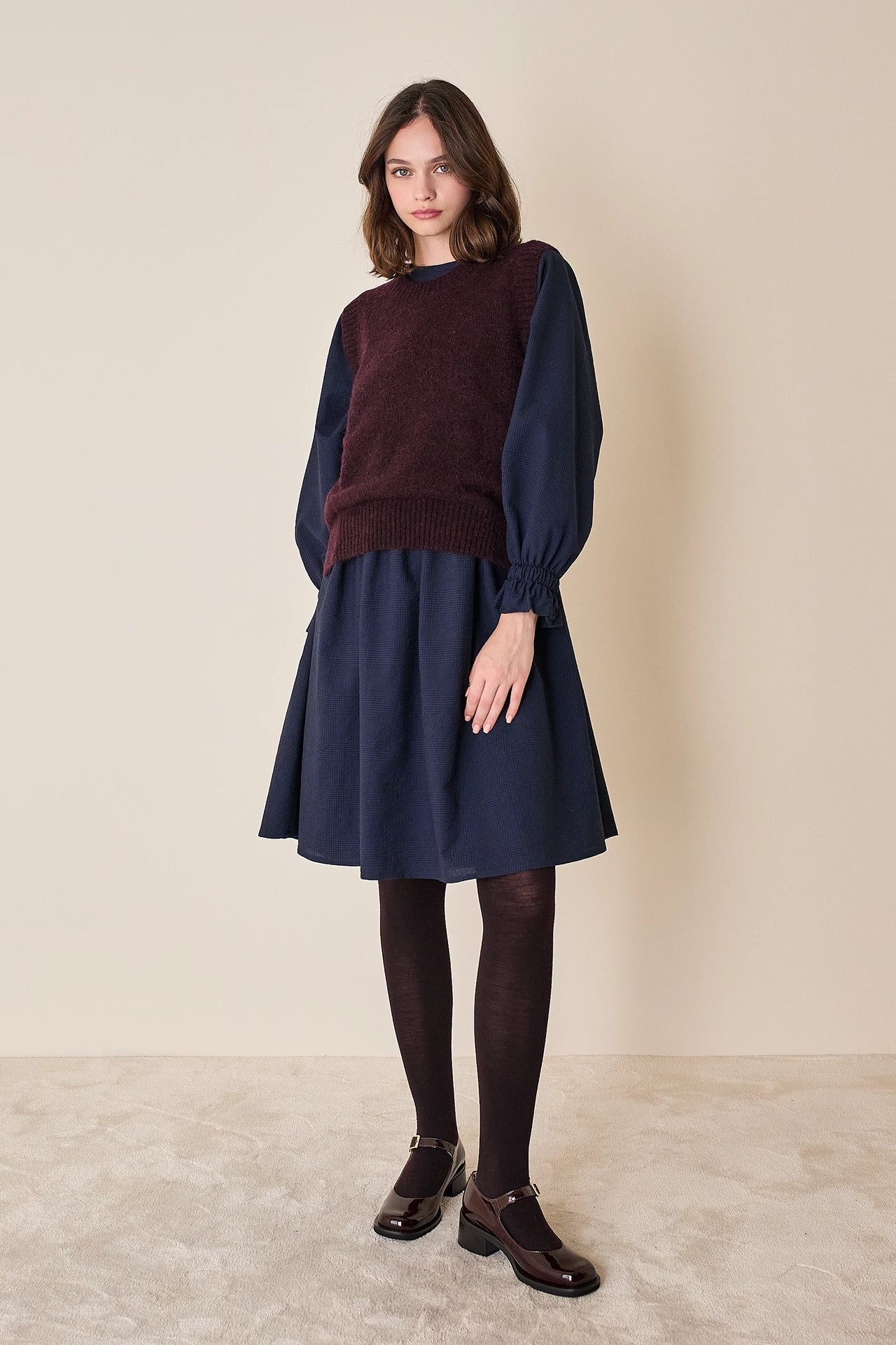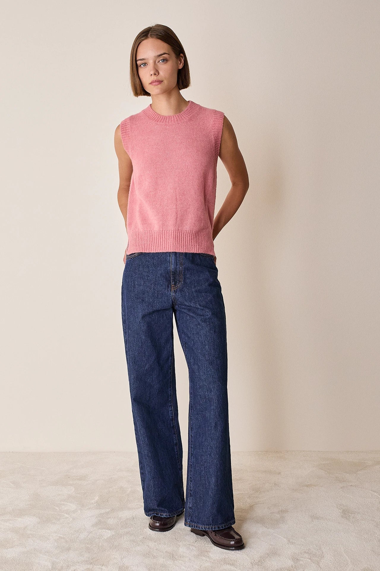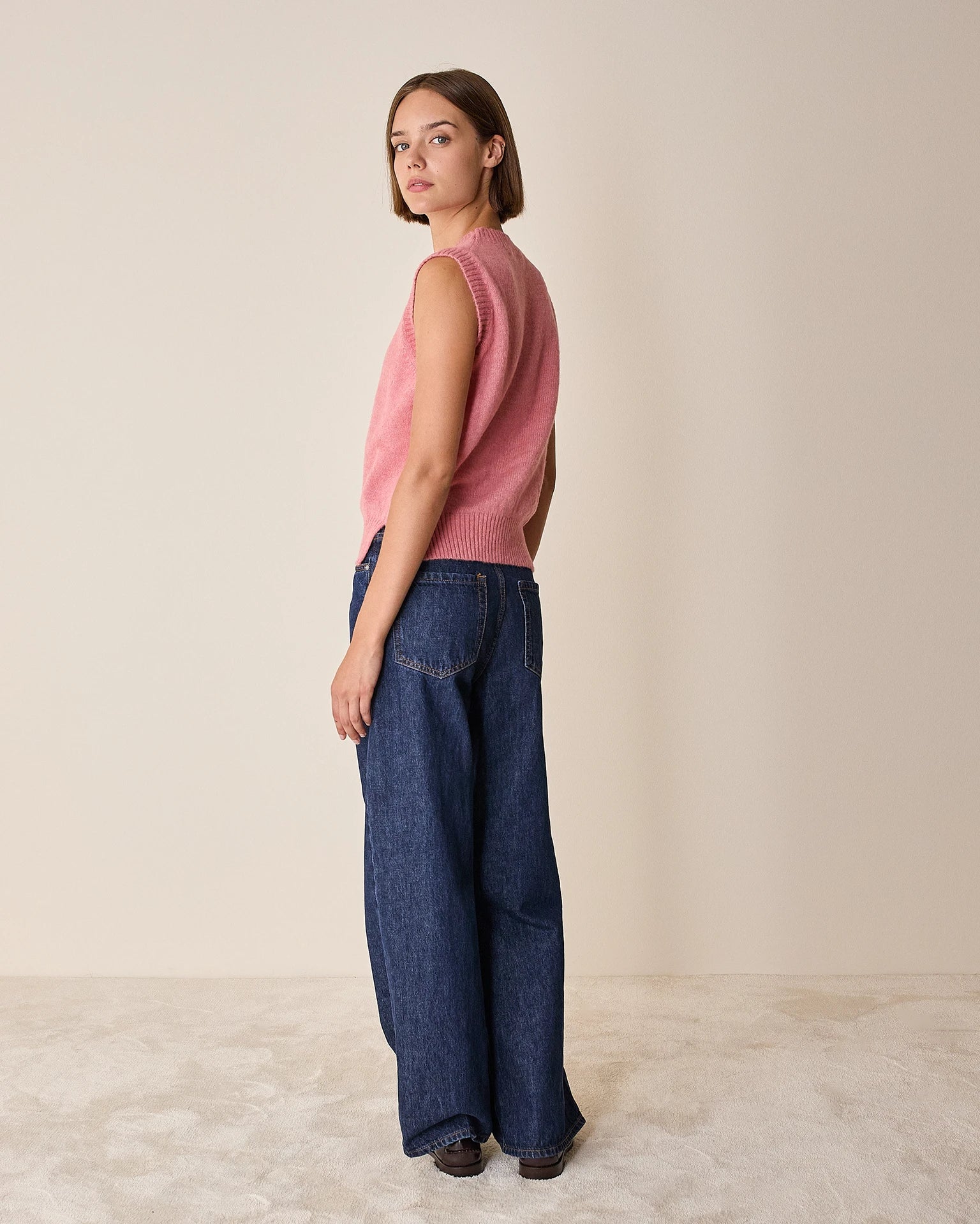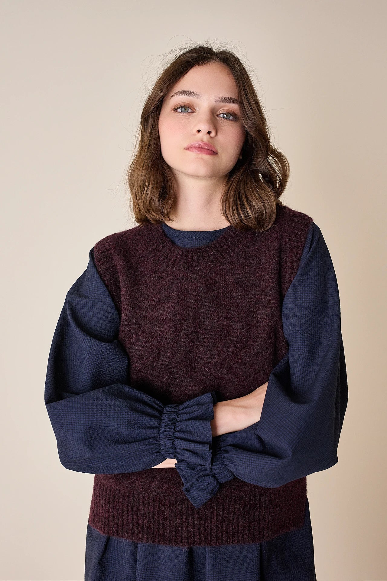 This gilet – made from a brushed* blend of alpaca and merino wool – is your go-to piece for adding a touch of colour (and extra warmth) to any outfit. Available in blue, olive, burgundy or pink.
