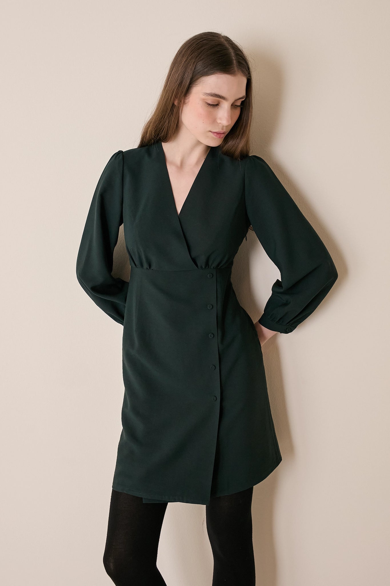 Easy-to-style and versatile, this fluid dress is perfect for both the office and the Holidays. Wear it with or without tights, paired with slingbacks or leather boots. Available in brown or forest green.