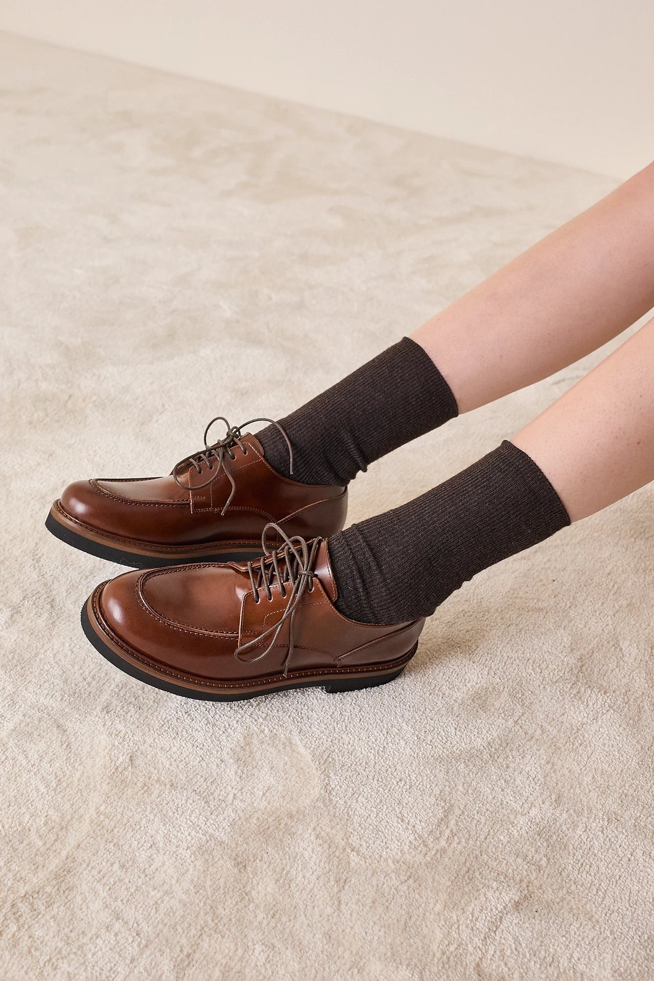 Introducing our new favorite style. These leather lace-up shoes stand out for their raised stitching and chunky rubber sole, a detail that gives them a casual edge while providing extra insulation and comfort. Available in black or brown leather.