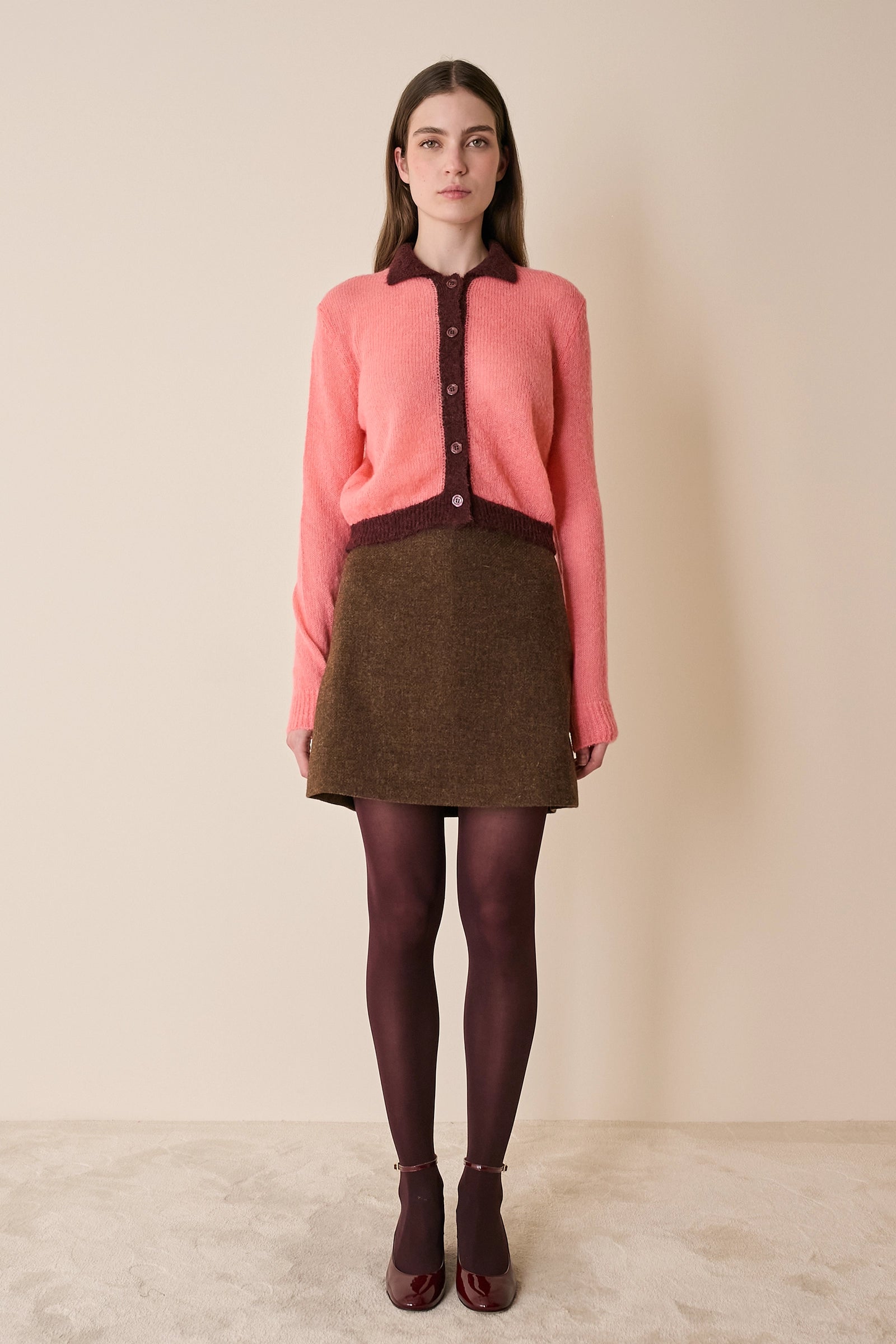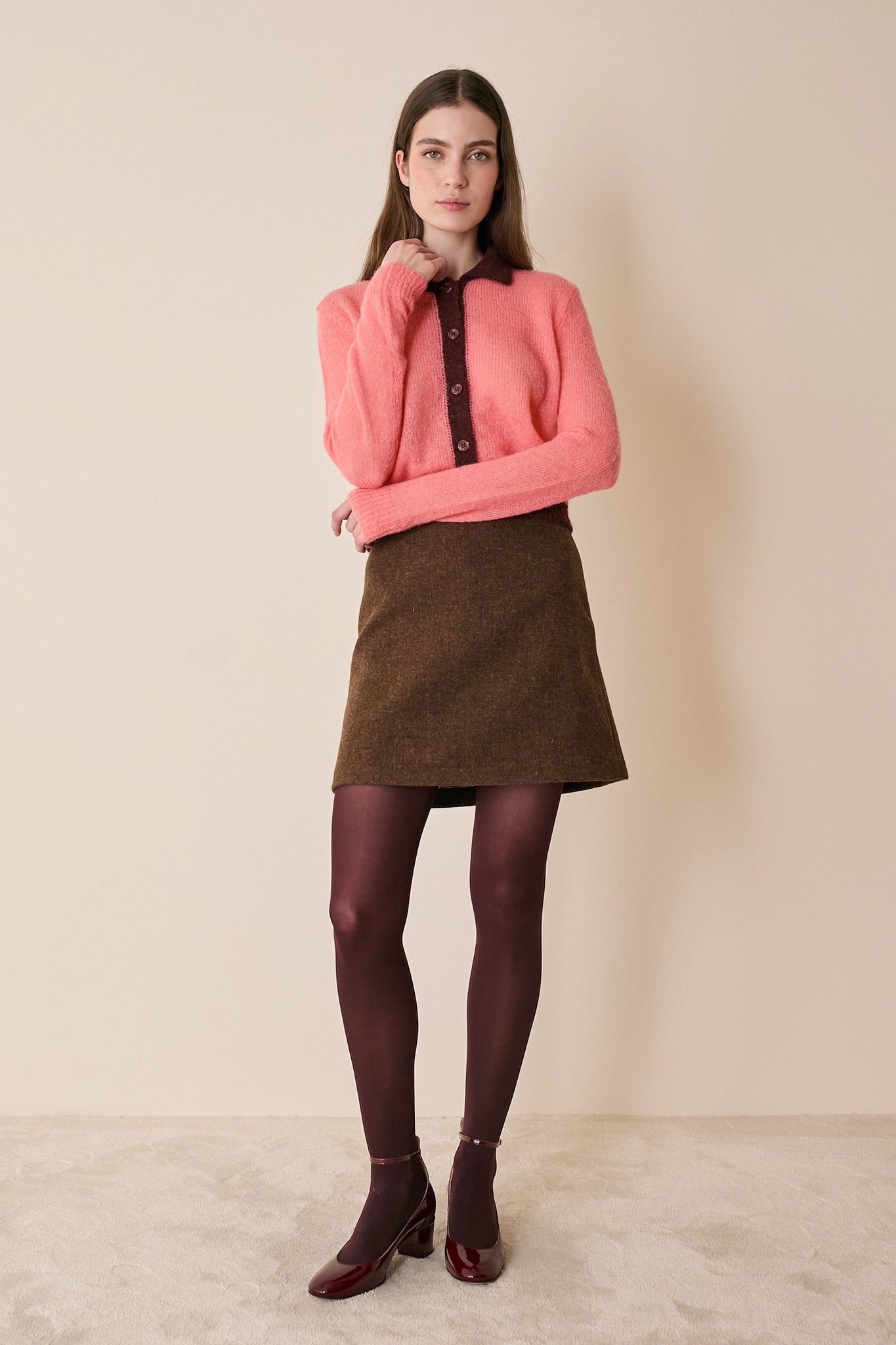 We added a graphic touch to this cardigan: the polo collar, button placket, and ribbed hem come in a contrasting color. A subtle pop that will brighten up your office outfits and beyond.