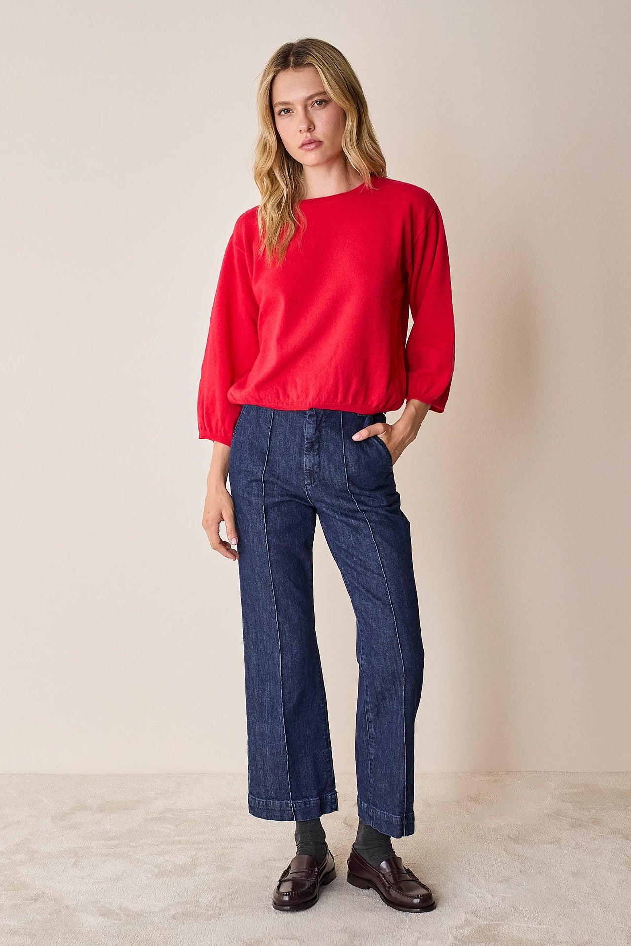 For this three-quarter sleeve sweater, we chose a premium blend of silk, cashmere, and merino wool. Naturally warm and soft, it comes in ebony, red, gray, and ivory.