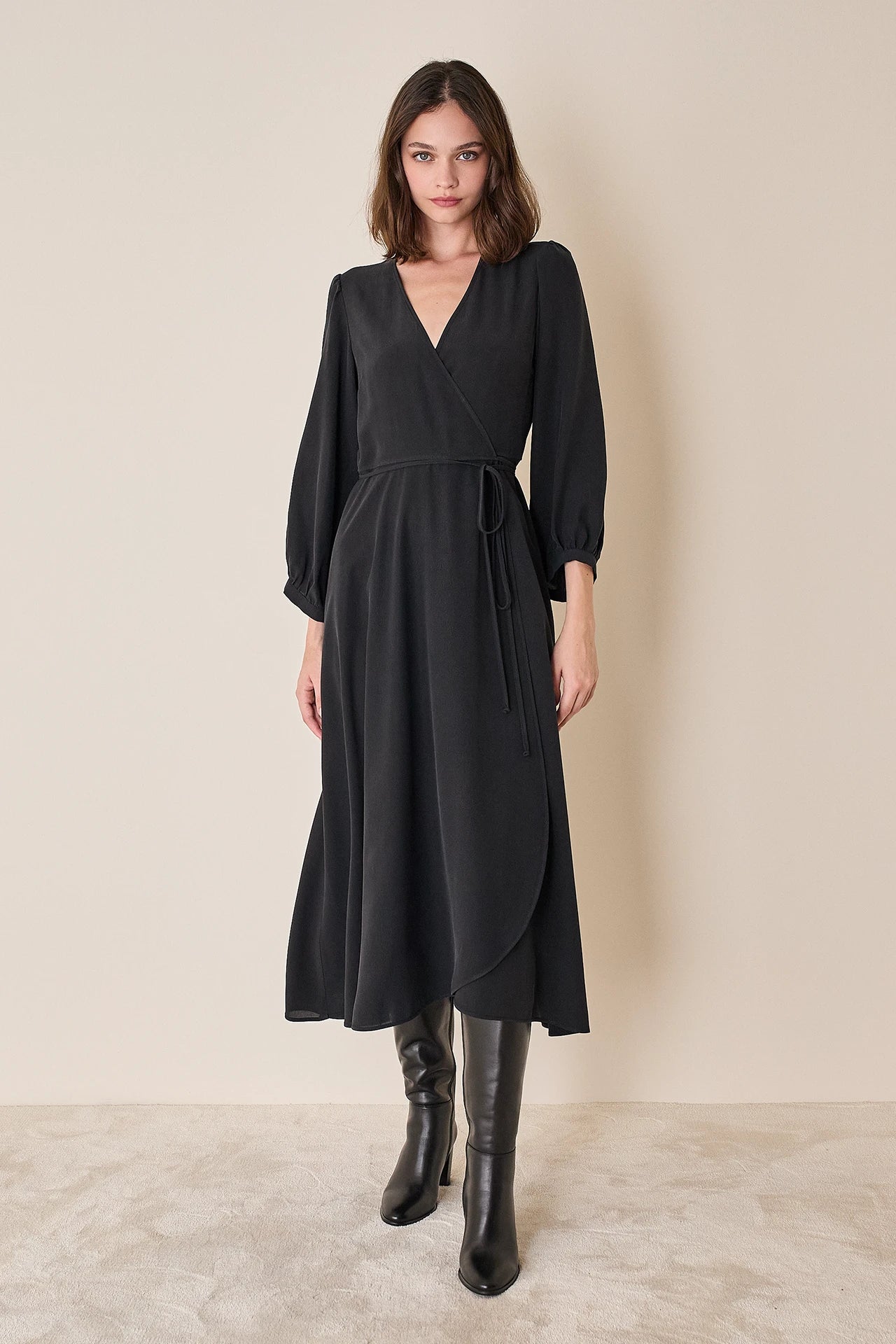 Ideal for both office days and special occasions, this wrap dress in pure silk crêpe de chine blends elegance and ease. The regular fit flatters without constriction, and the wrap closure makes it effortlessly wearable.