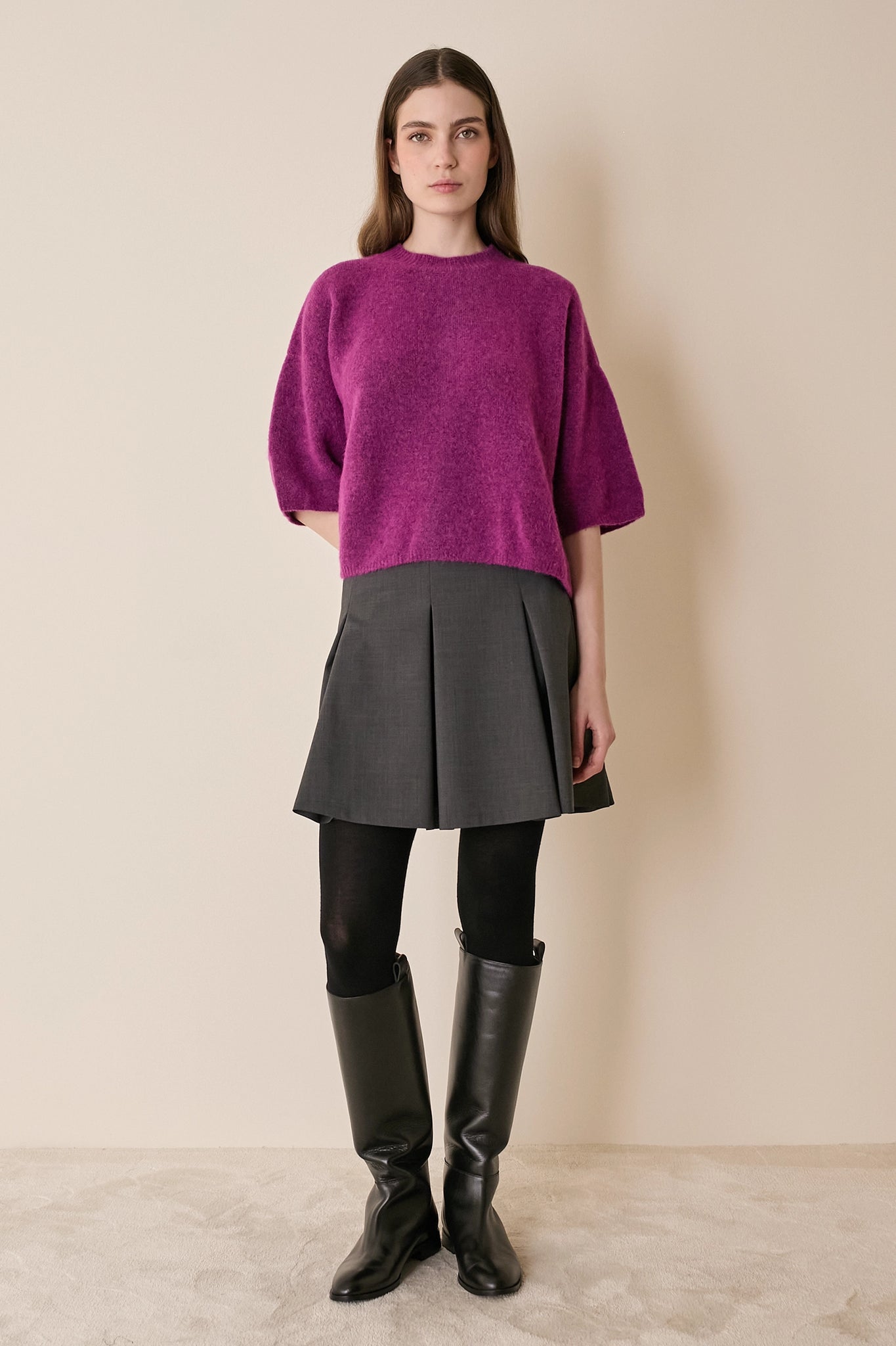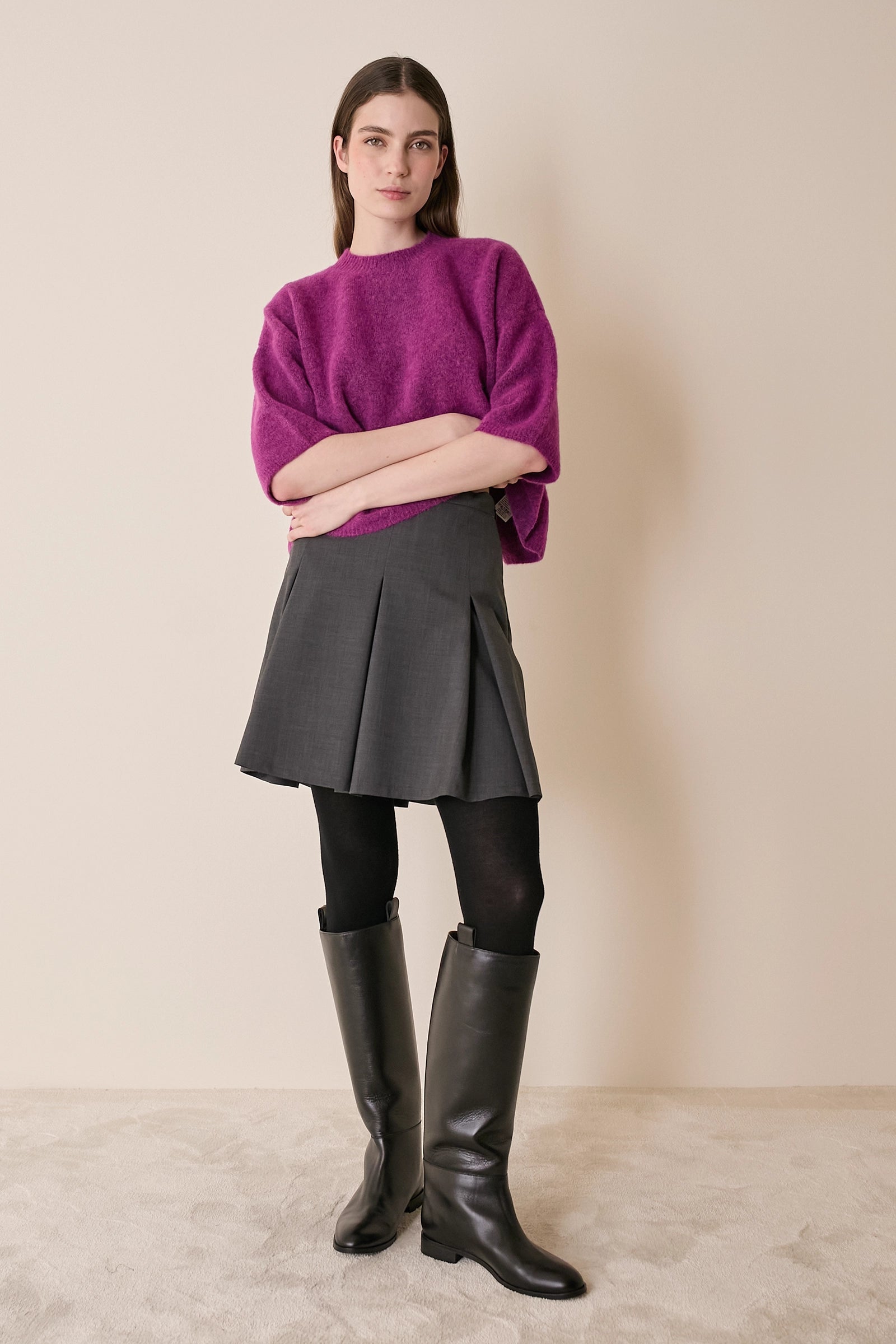 Stretch wool pleated skirt