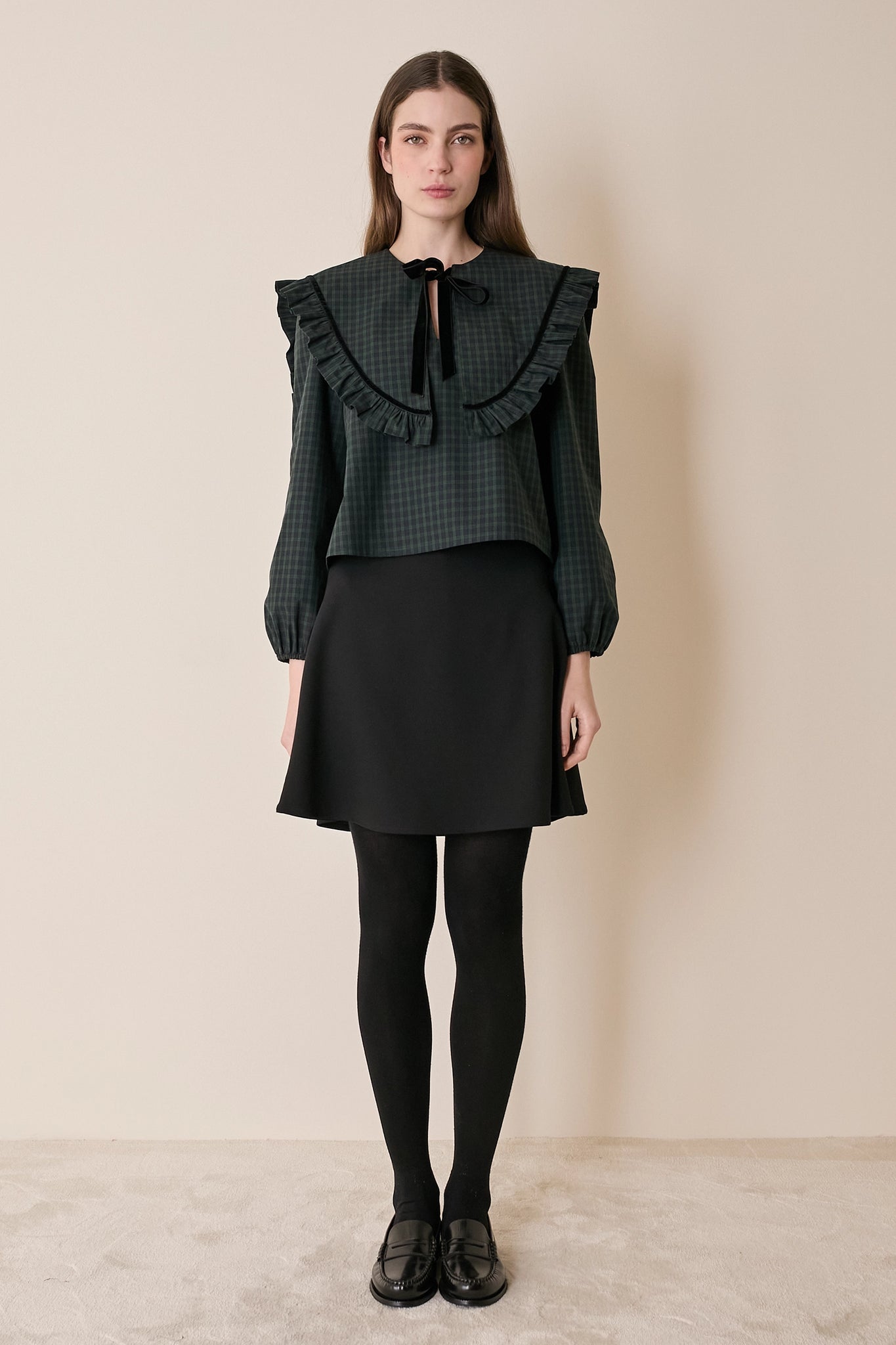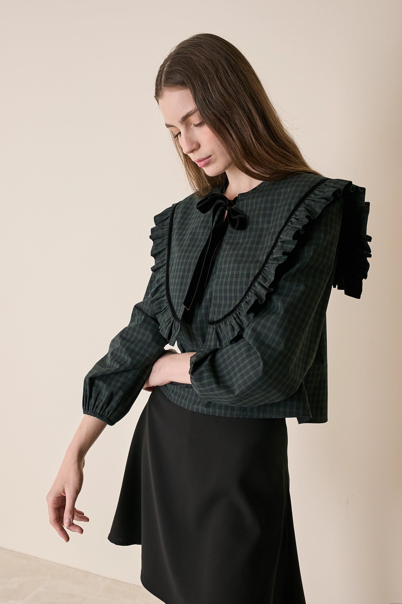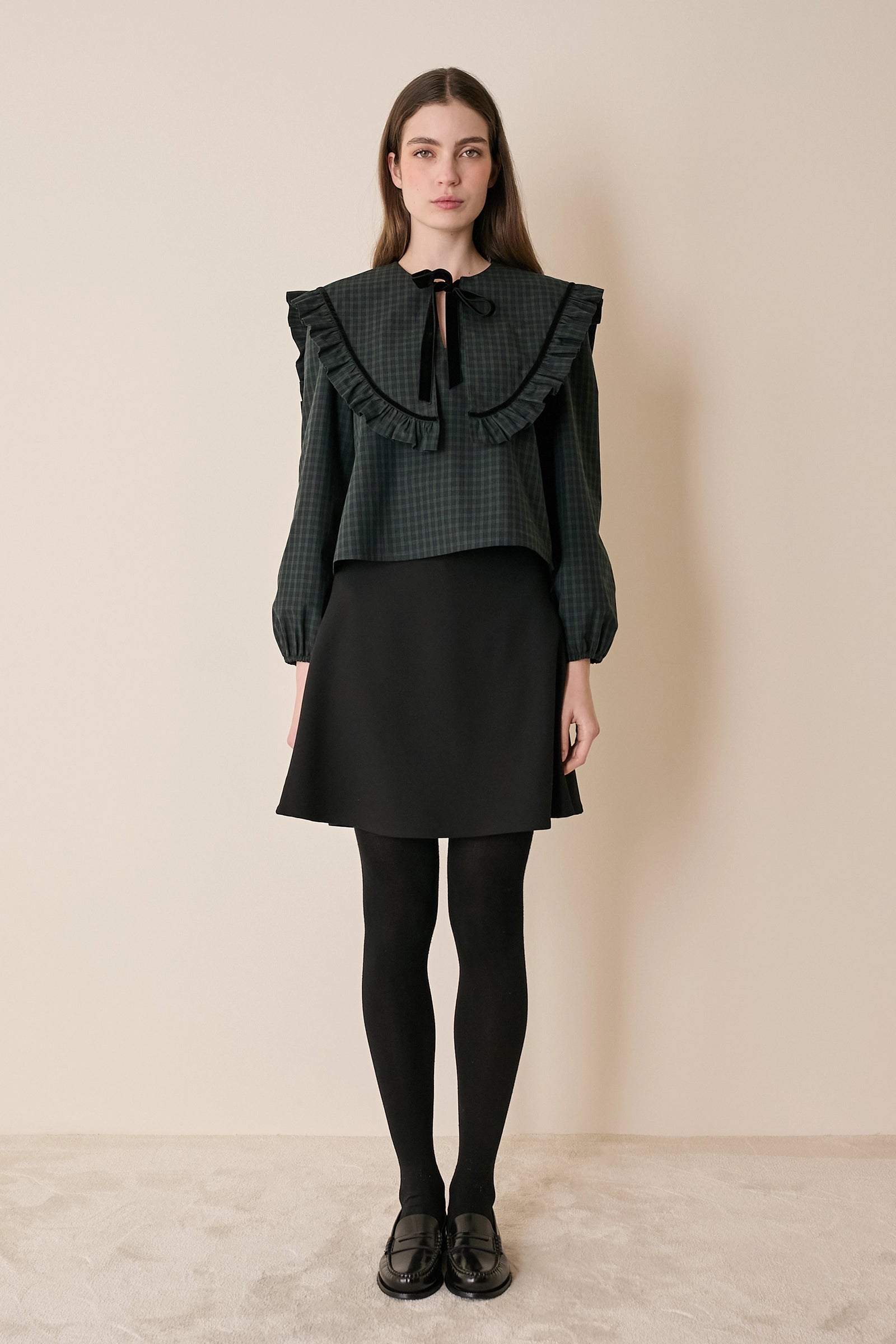 We chose a cotton tartan fabric for this top with an oversized collar, perfect for both the holidays and the office.