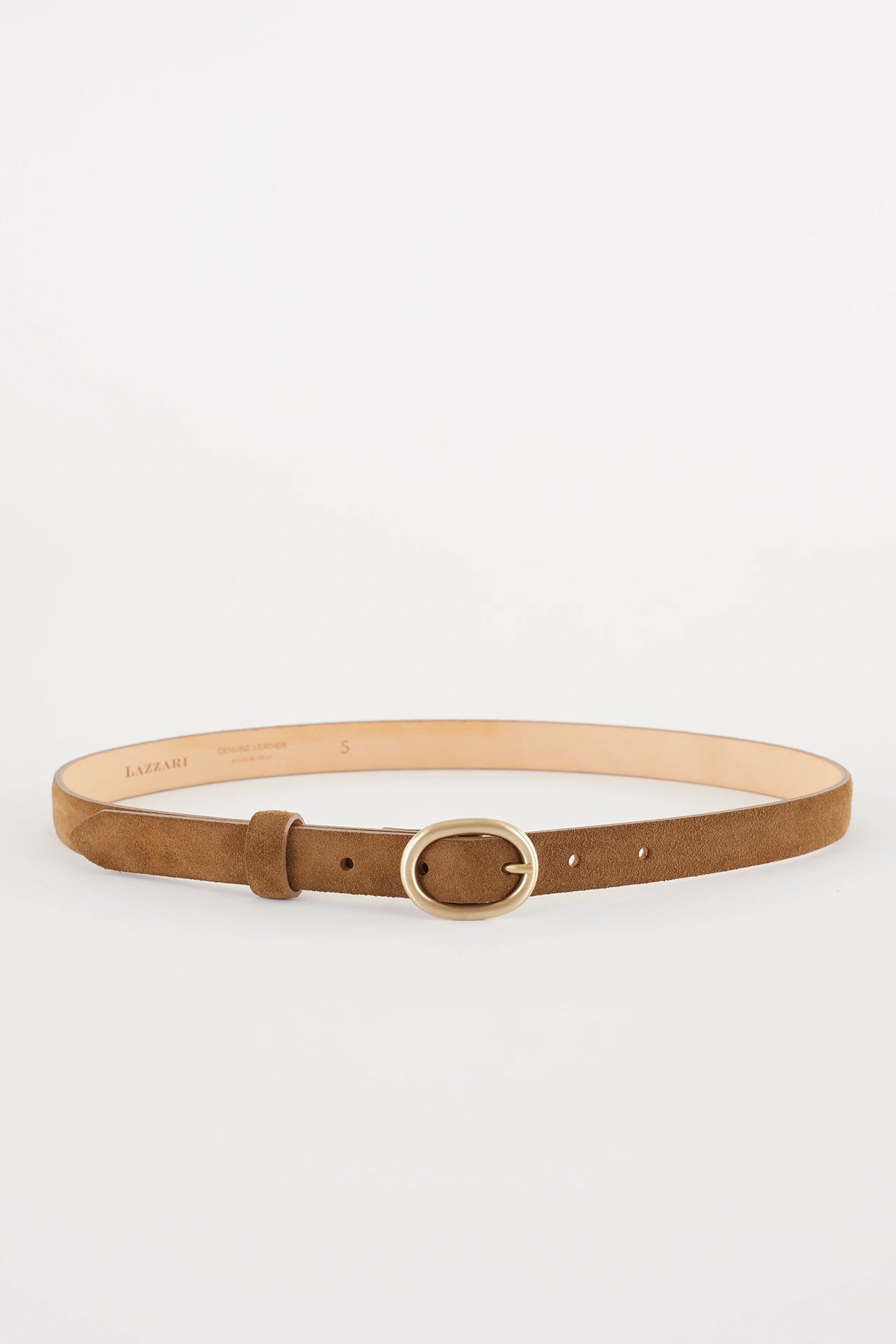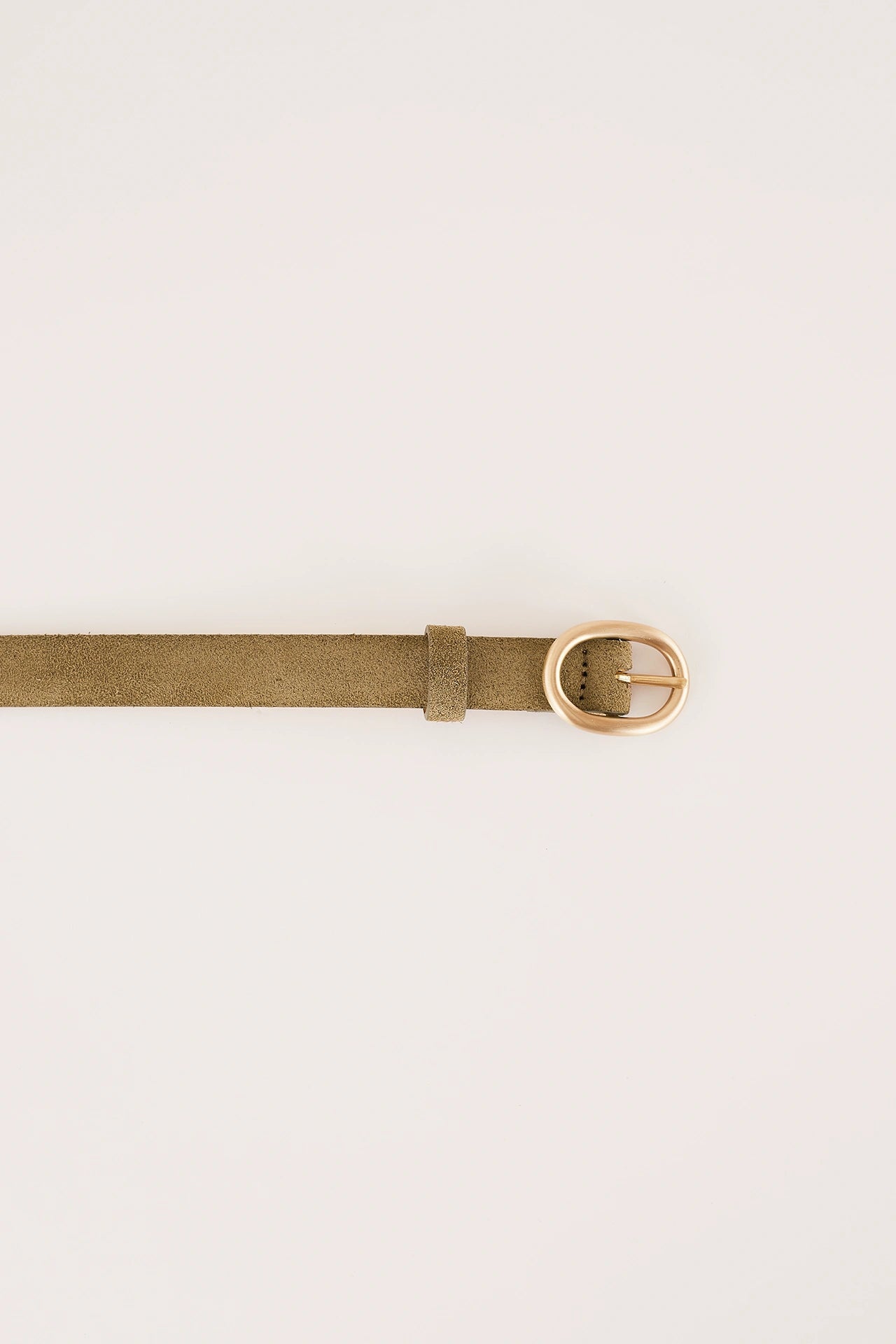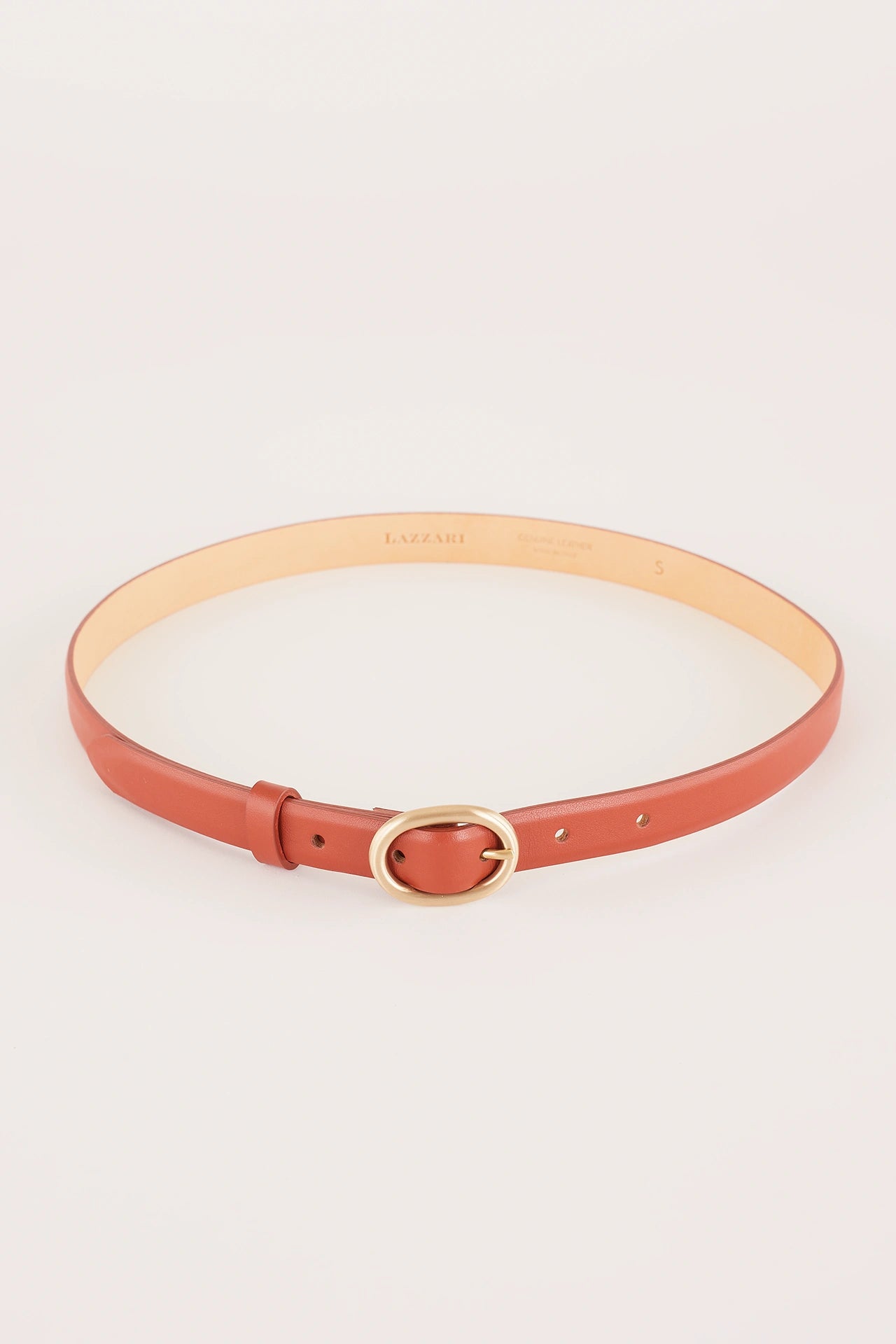 Thin leather belt with gold oval buckle