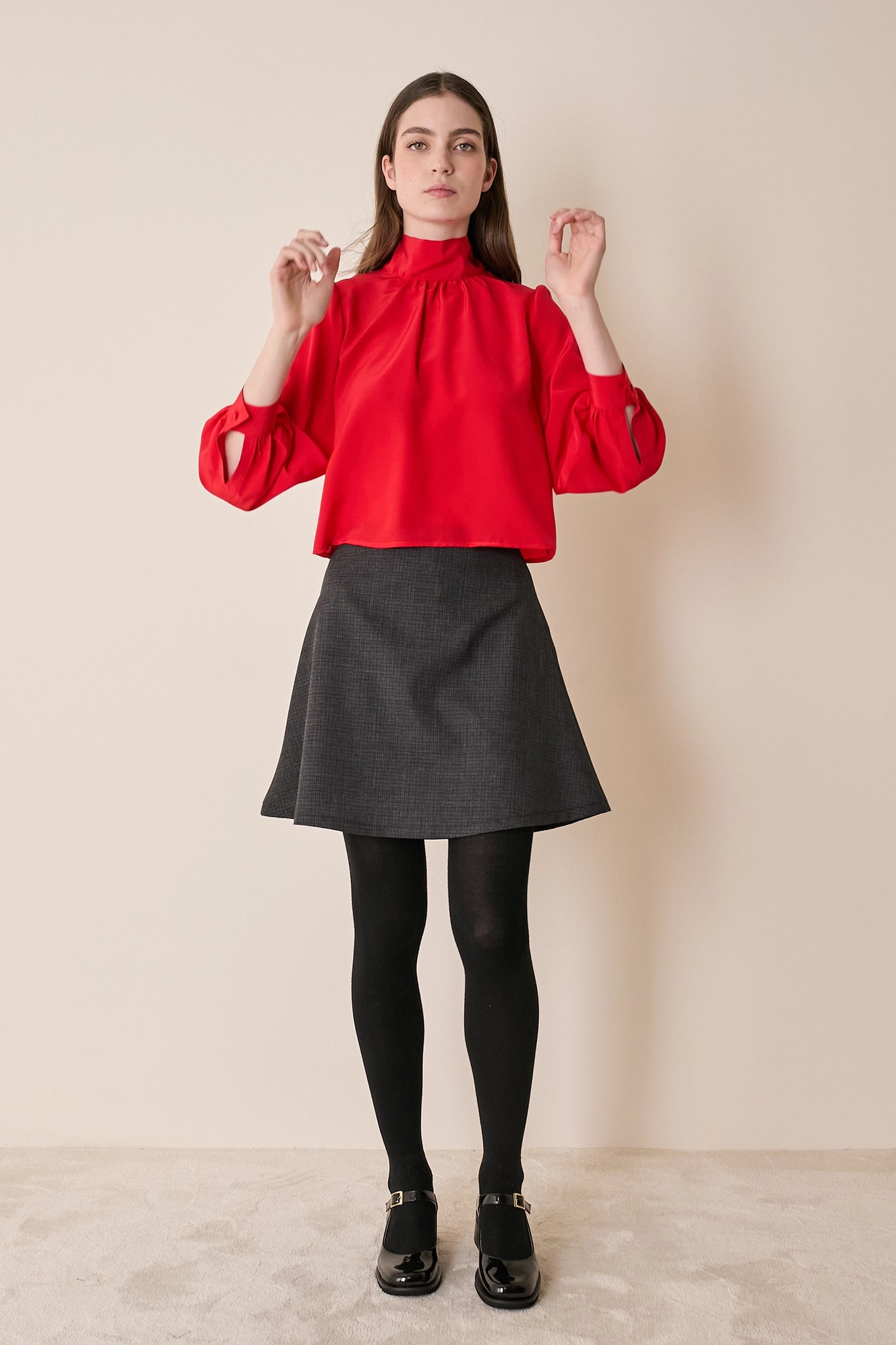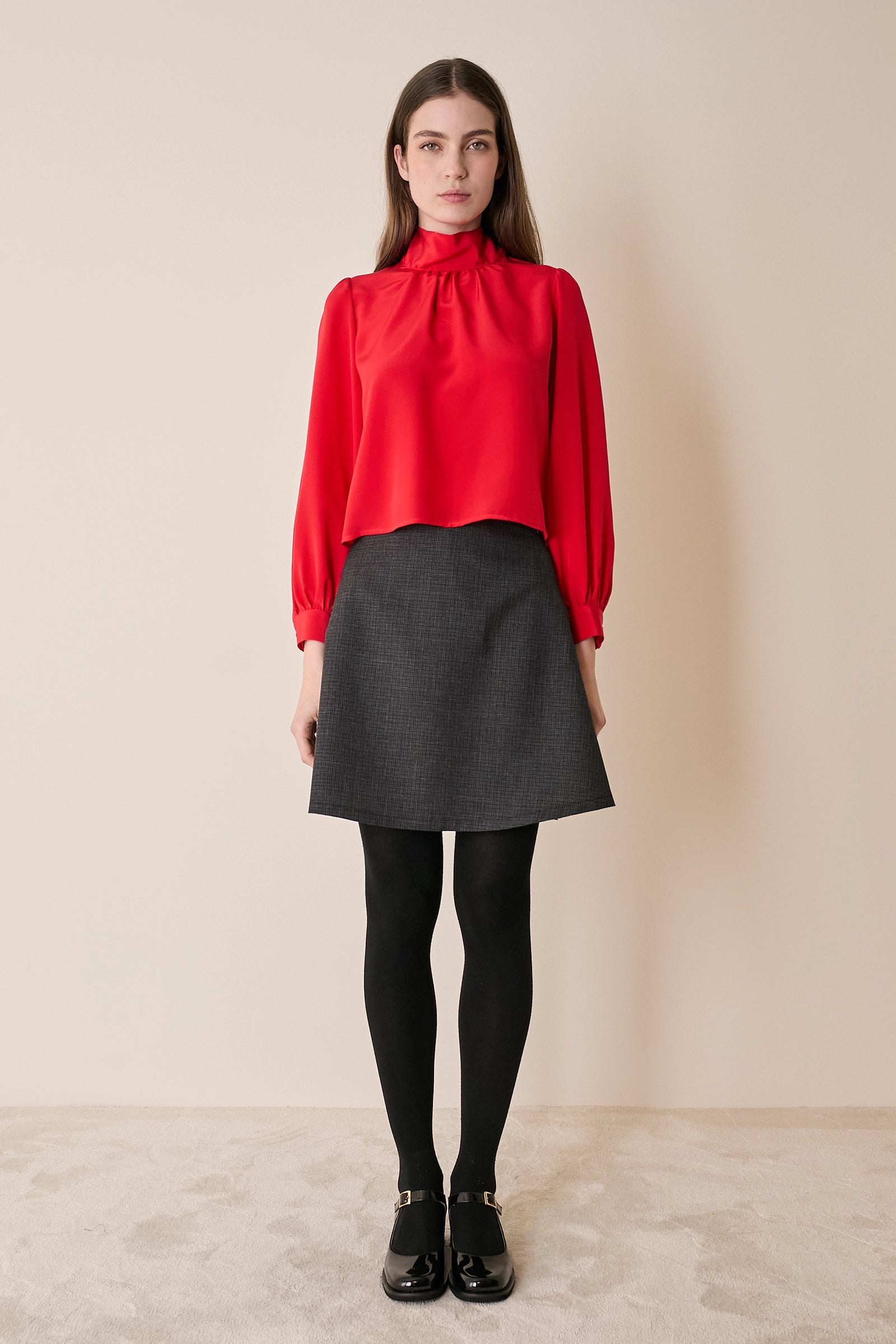 This wool blouse is the perfect example. Pair it with the matching skirt for an office-ready look, or dress it down with jeans for the weekend.