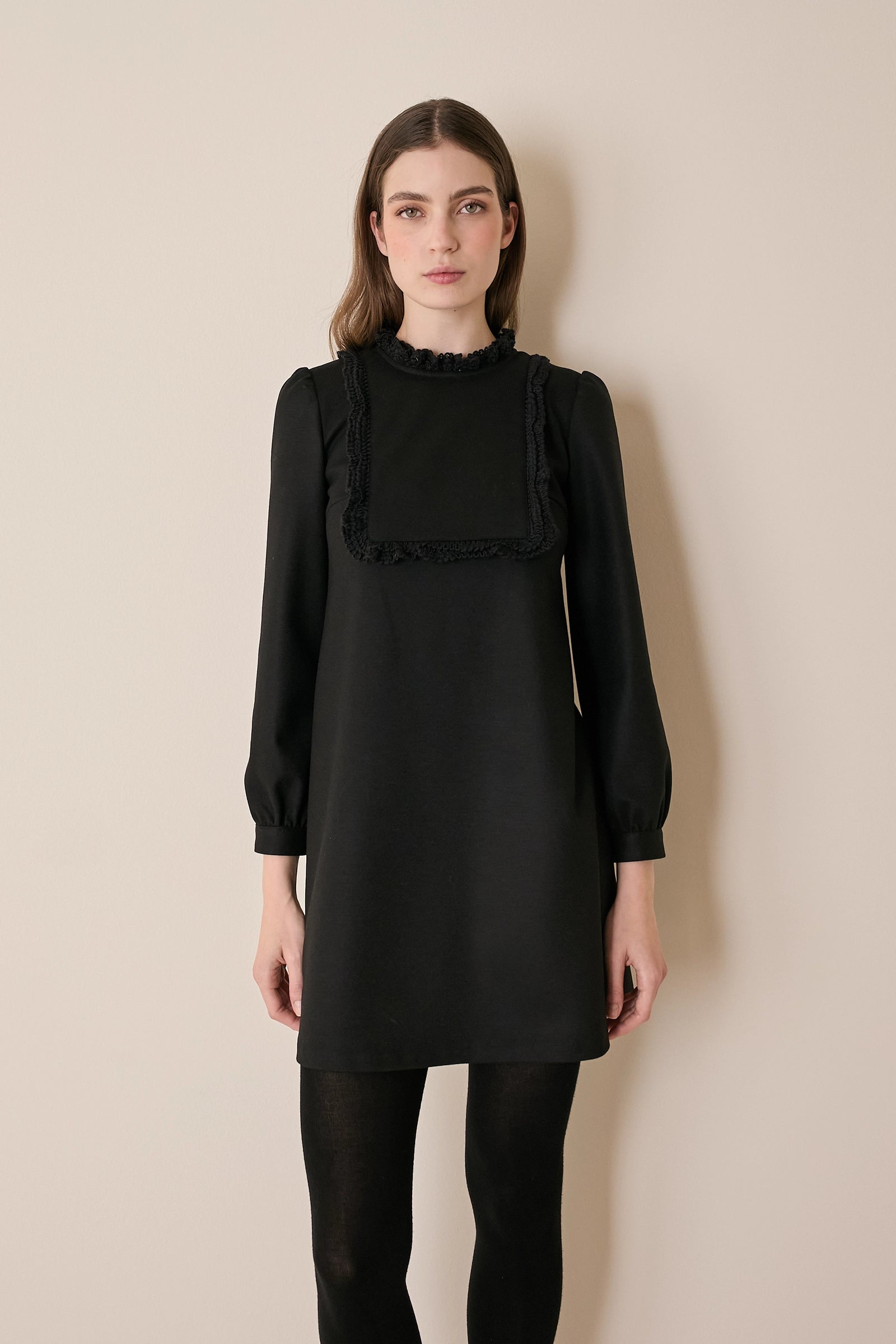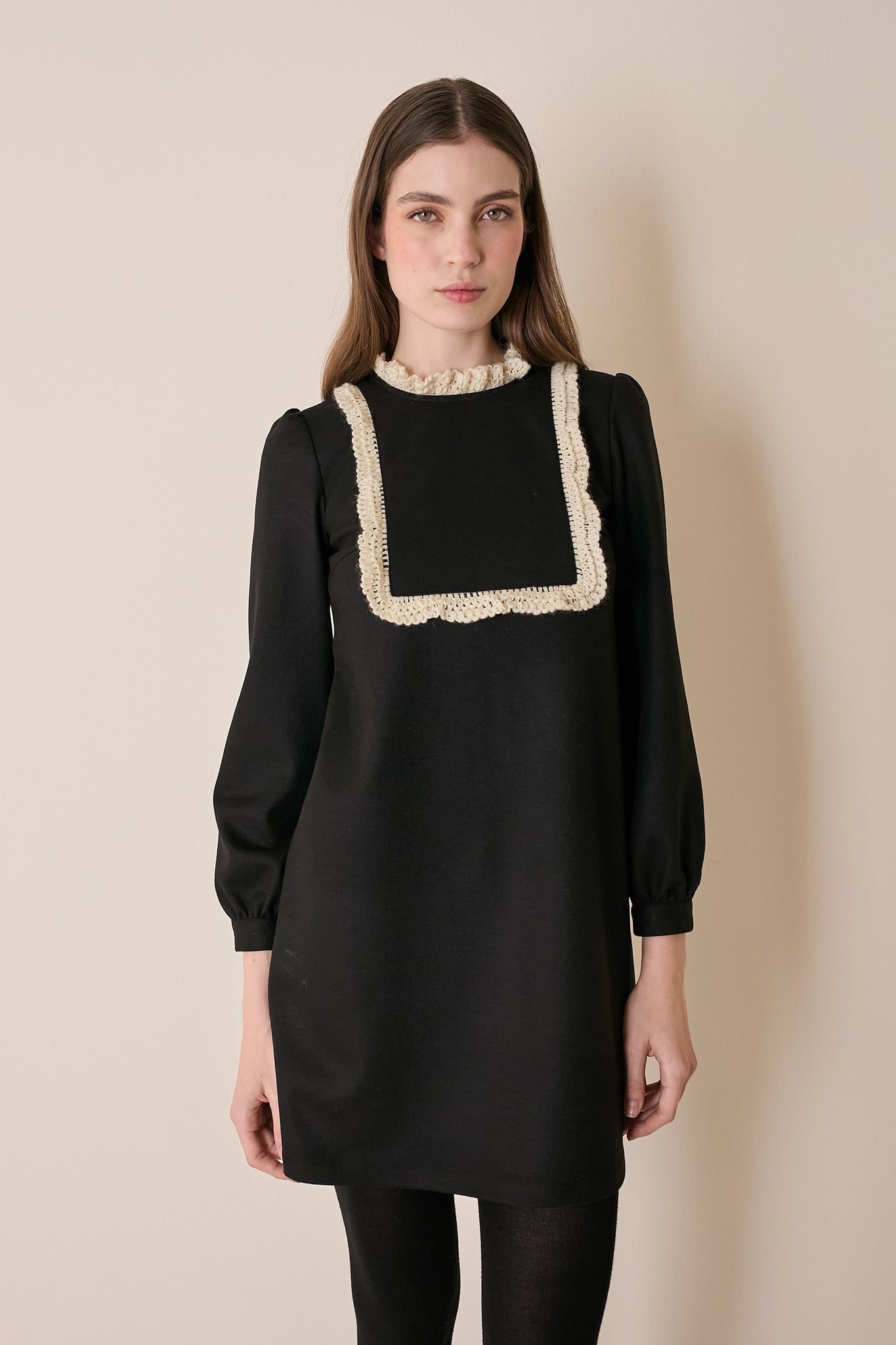 Wool dress with soft trim
