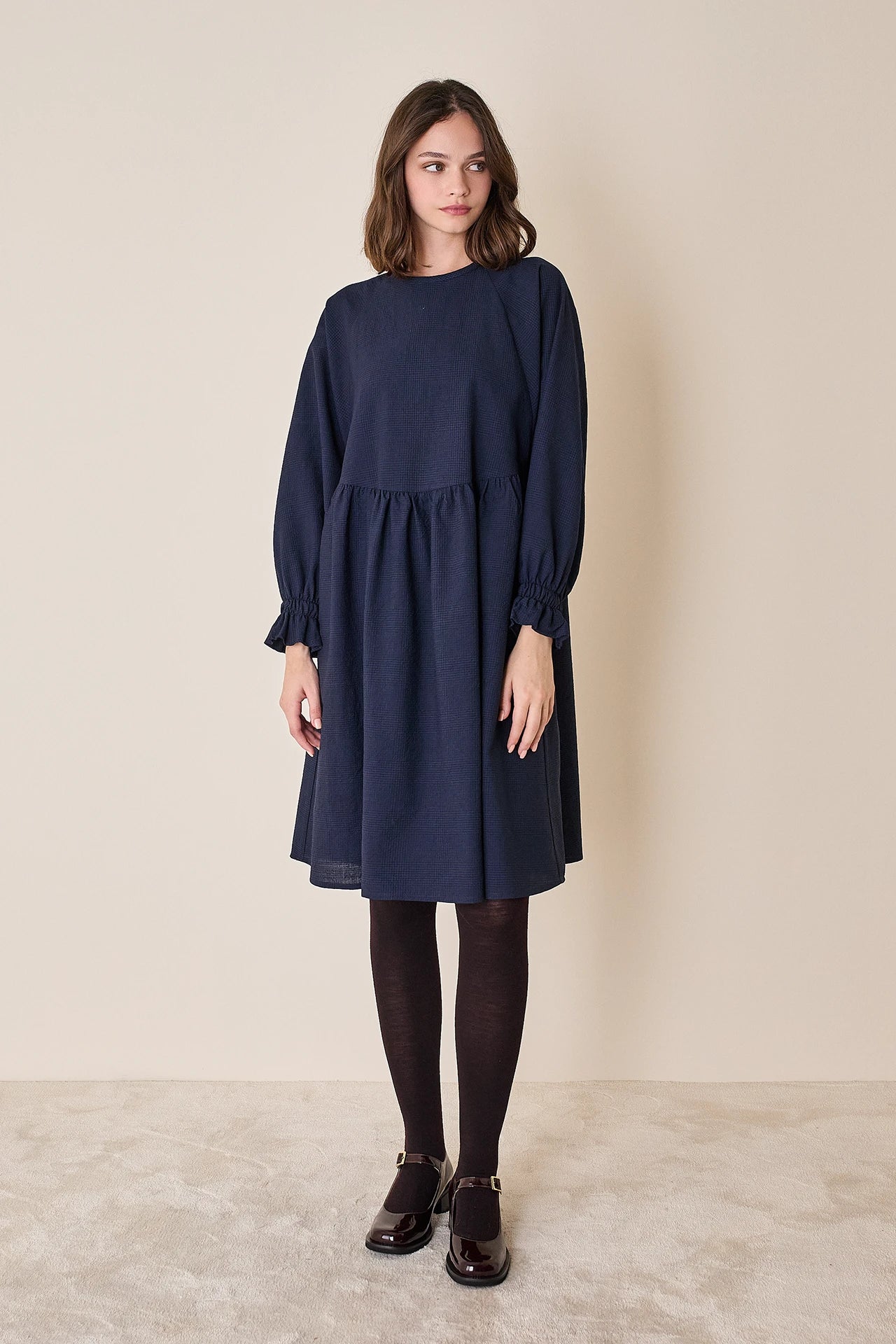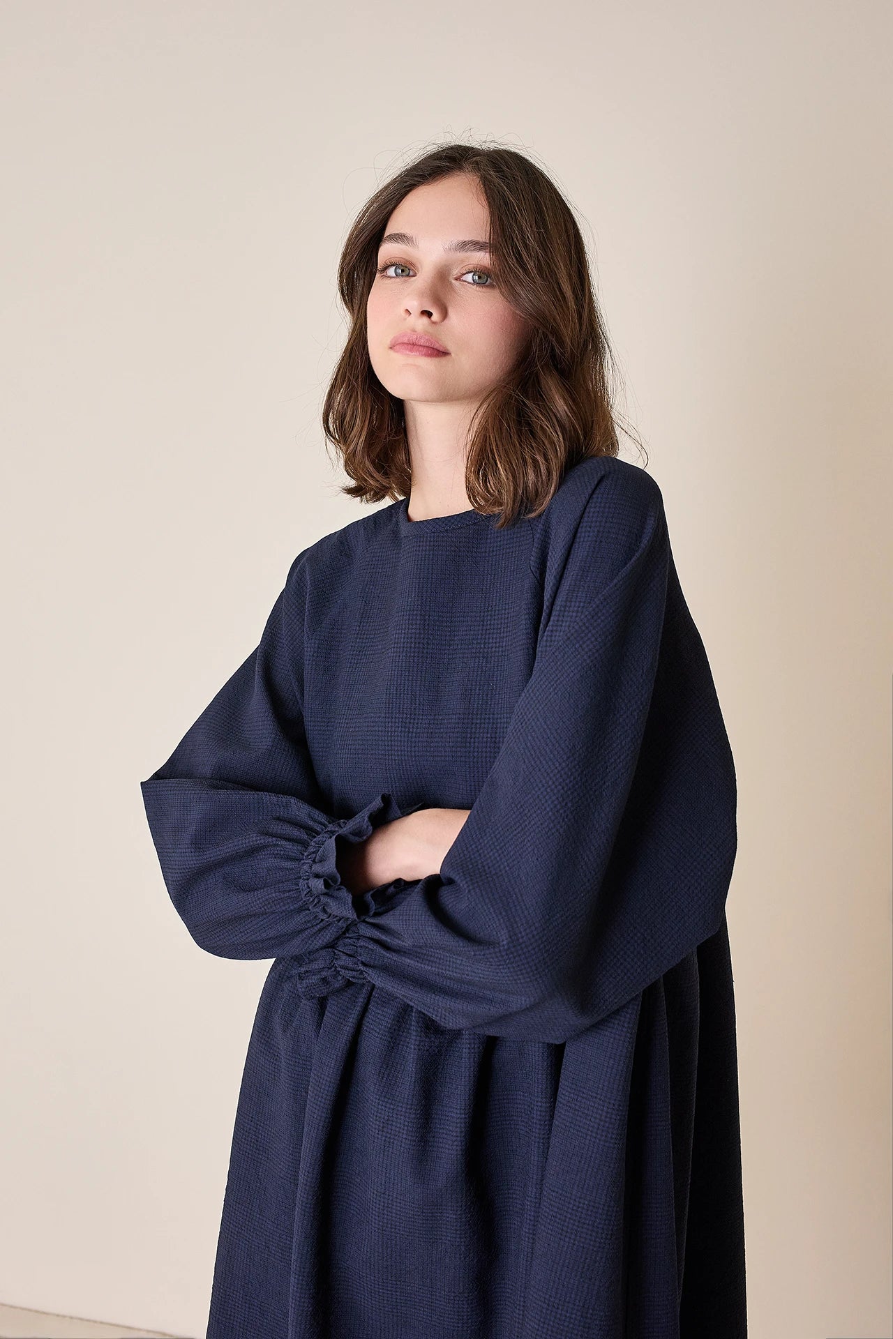 For this dress, we focused on details that make it both comfortable and versatile: the length, ideal for the office or your free time, elasticated cuffs you can wear long or three-quarter, and a relaxed, roomy cut that makes it easy to wear every day.