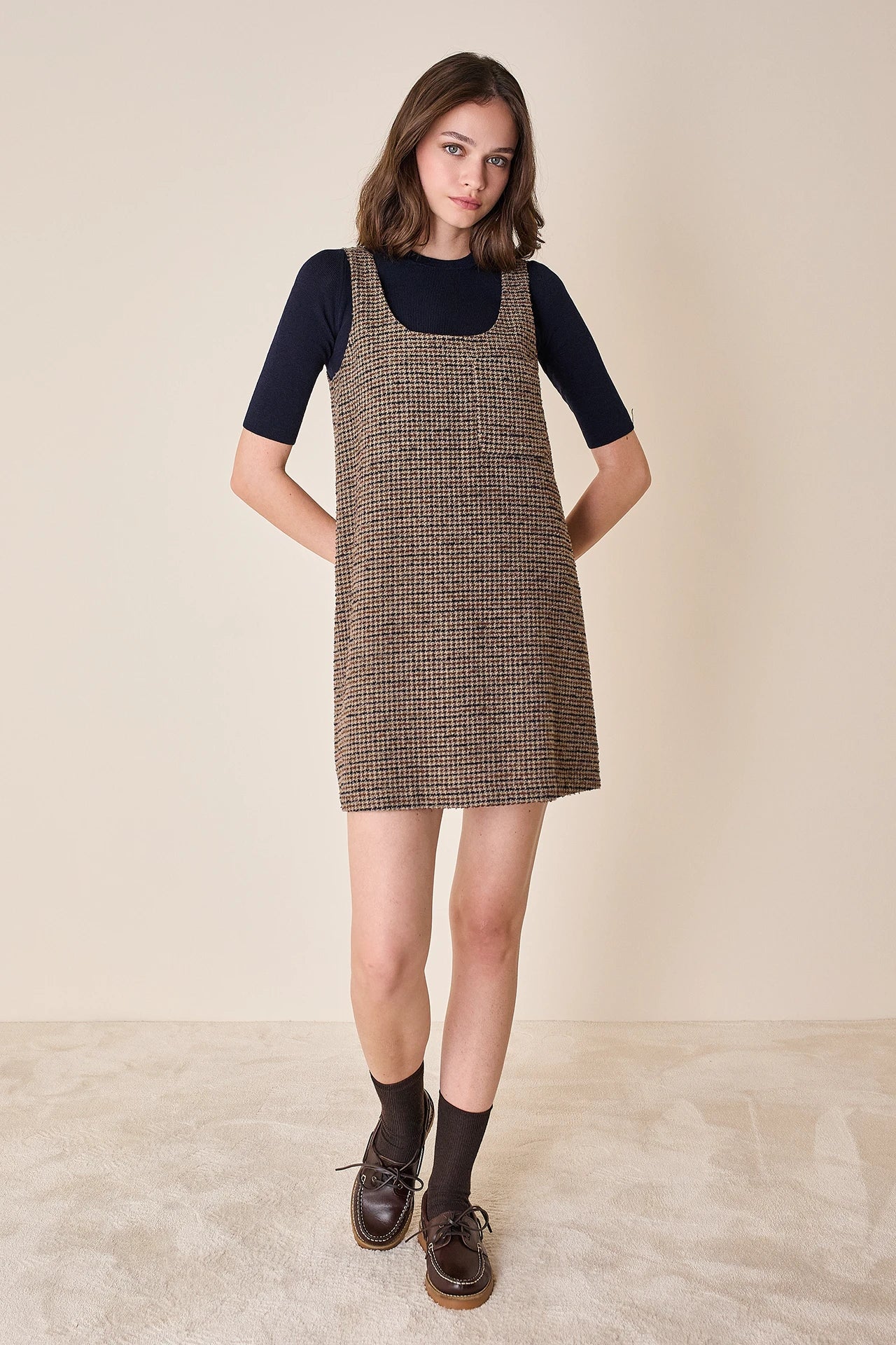 Disponibile in grigio tinta unita o pied-de-poule marrone.