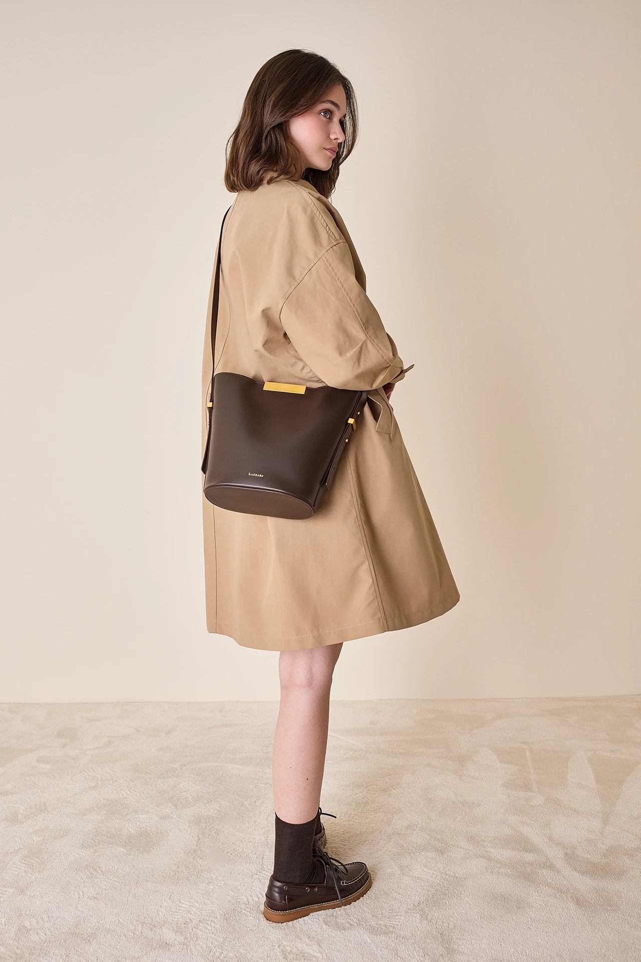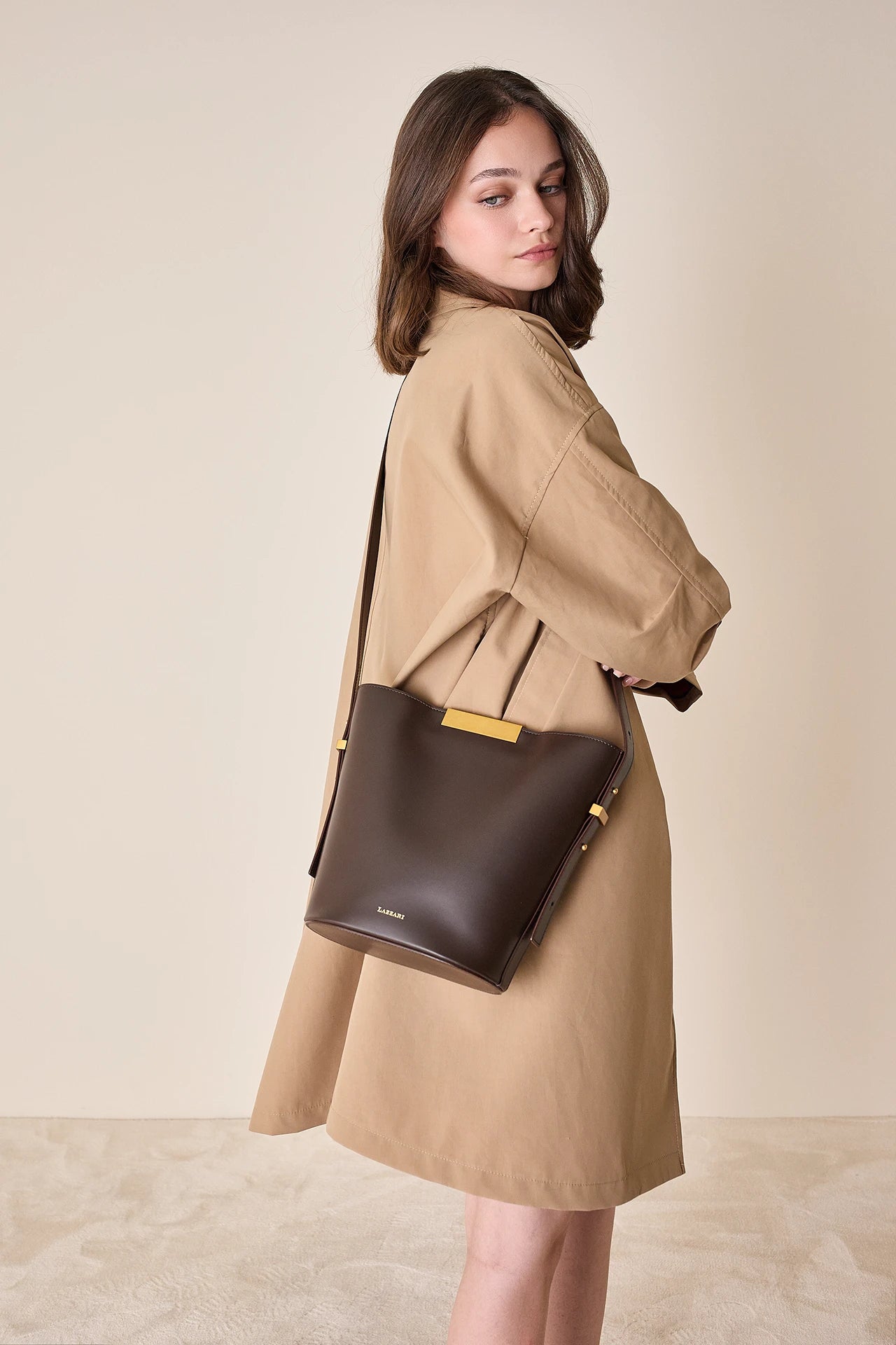 Questa borsa a secchiello in pelle di alta qualità è pensata per accompagnarti sia al lavoro che nella vita di tutti i giorni. Leggera ma capiente, è dotata di una tracolla regolabile e impreziosita da dettagli in ottone satinato. Disponibile in nero, verde, bordeaux o cioccolato.