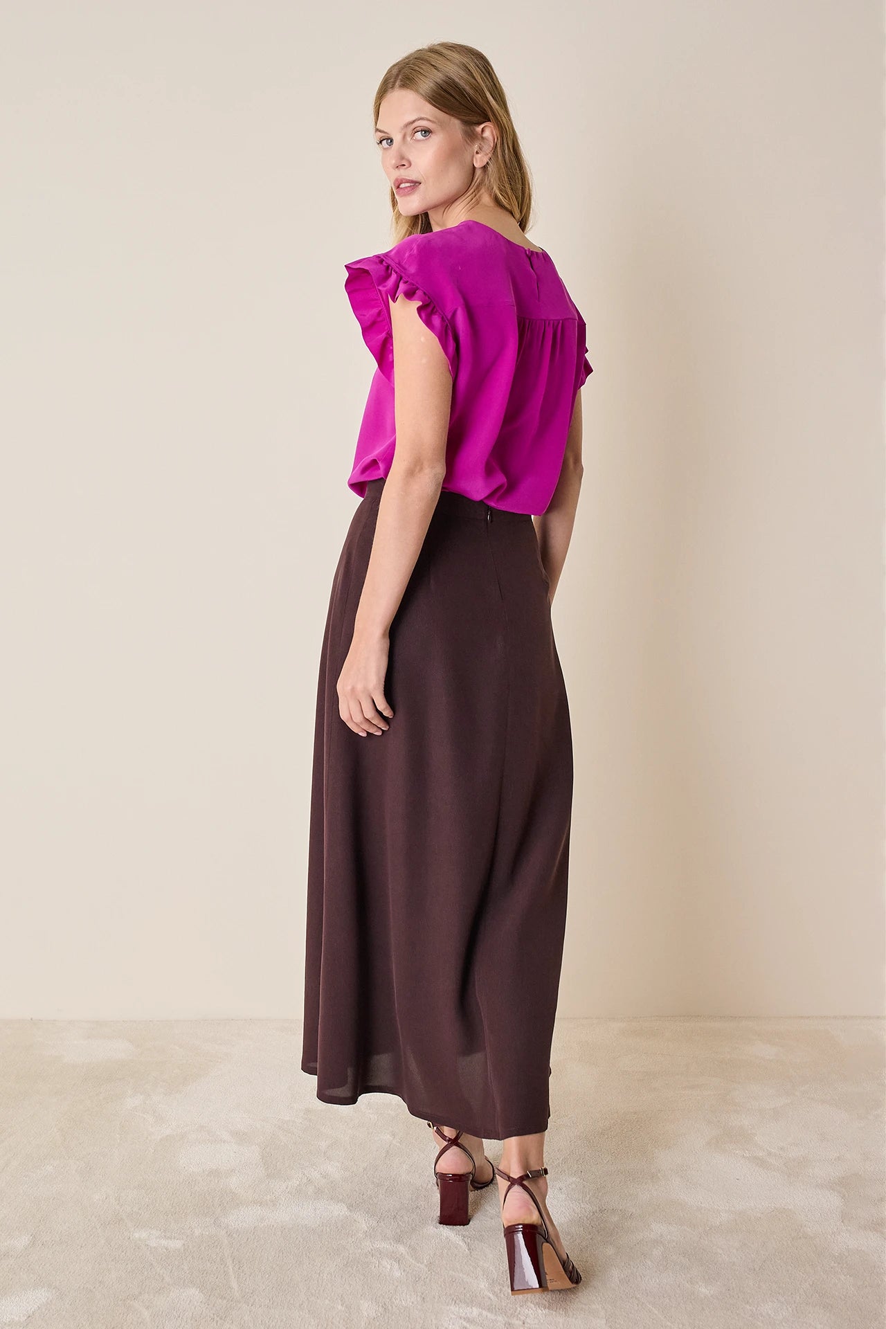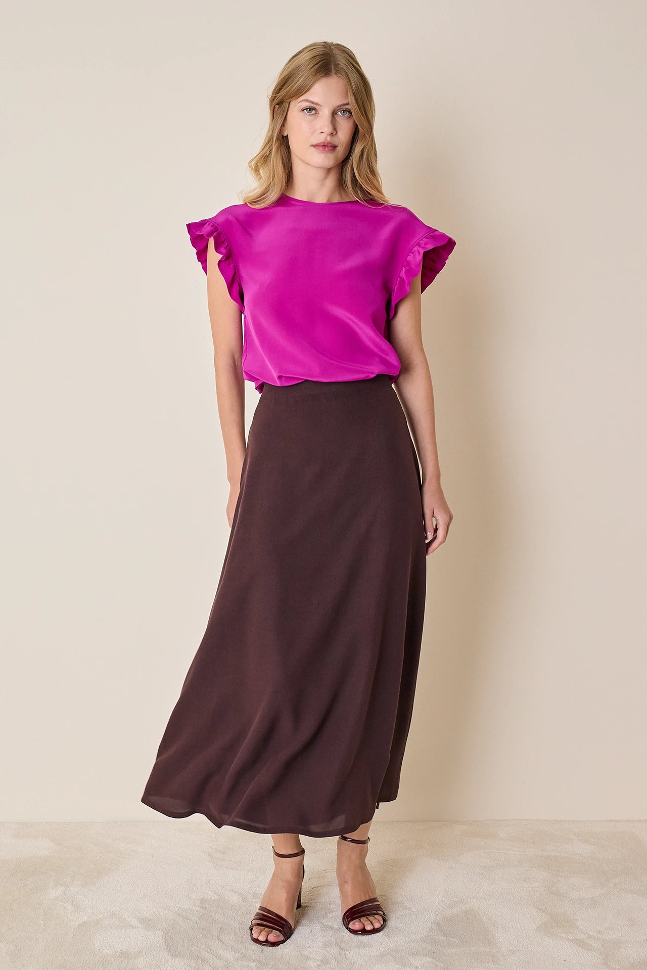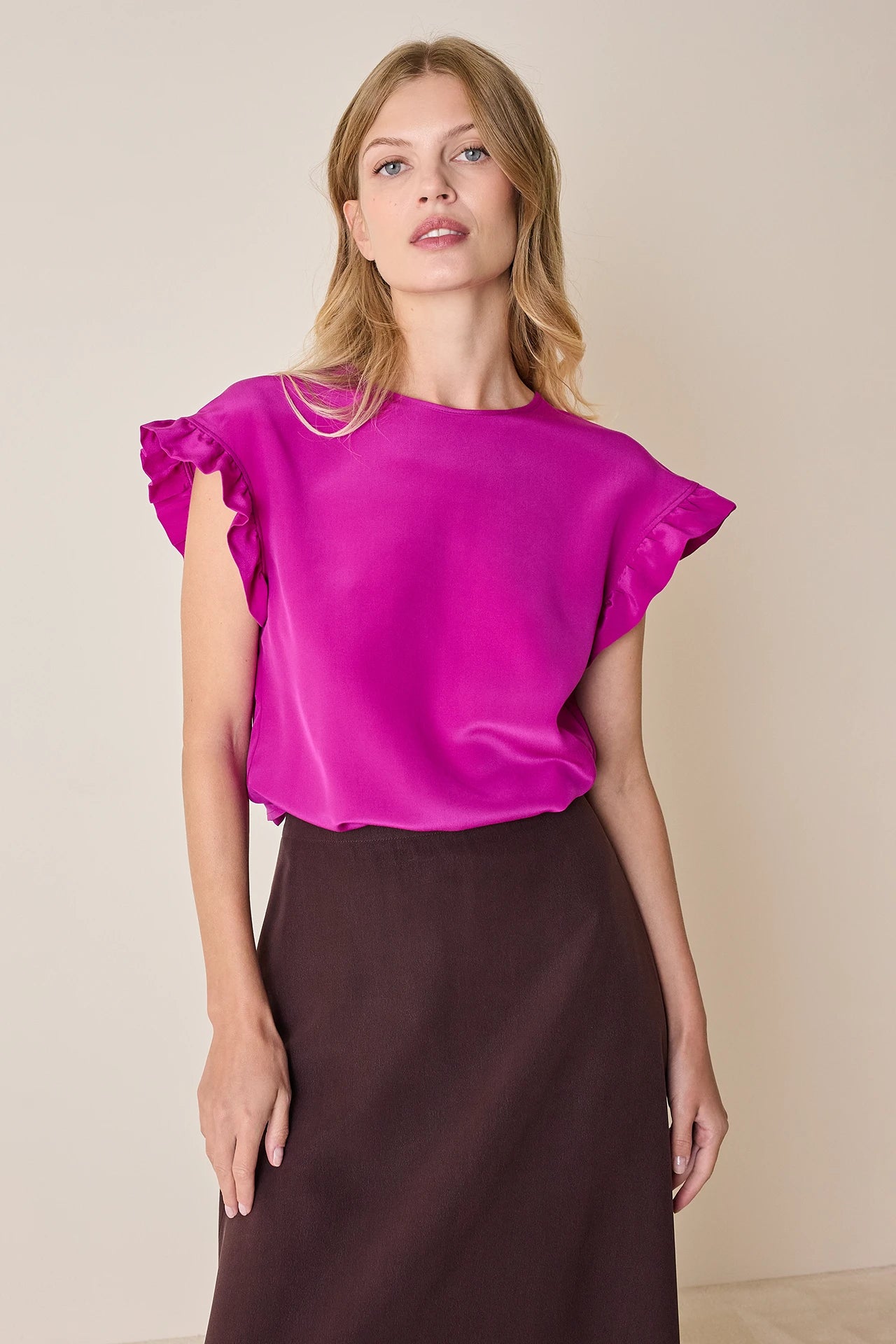 Questo top in pura seta è perfetto per le cerimonie, ma anche per l'ufficio e gli eventi. In ufficio indossalo con una gonna in lana e un paio di collant; per una cerimonia, abbinalo a una gonna in seta e a sandali alti; per una serata, scegli pantaloni sartoriali o una minigonna. Disponibile in nero, oliva o fucsia.
