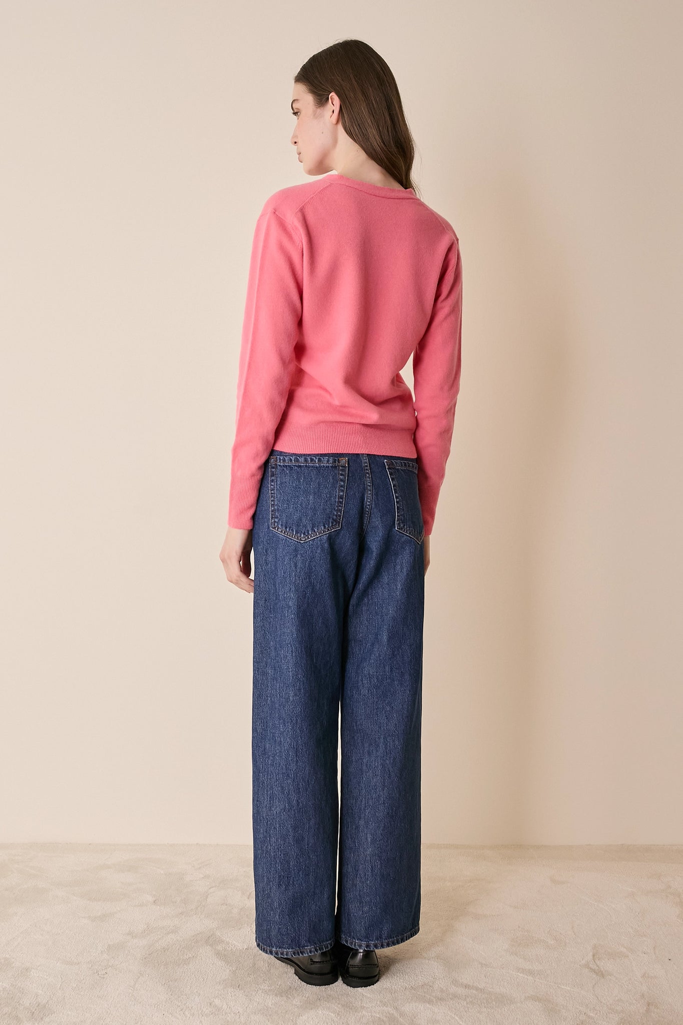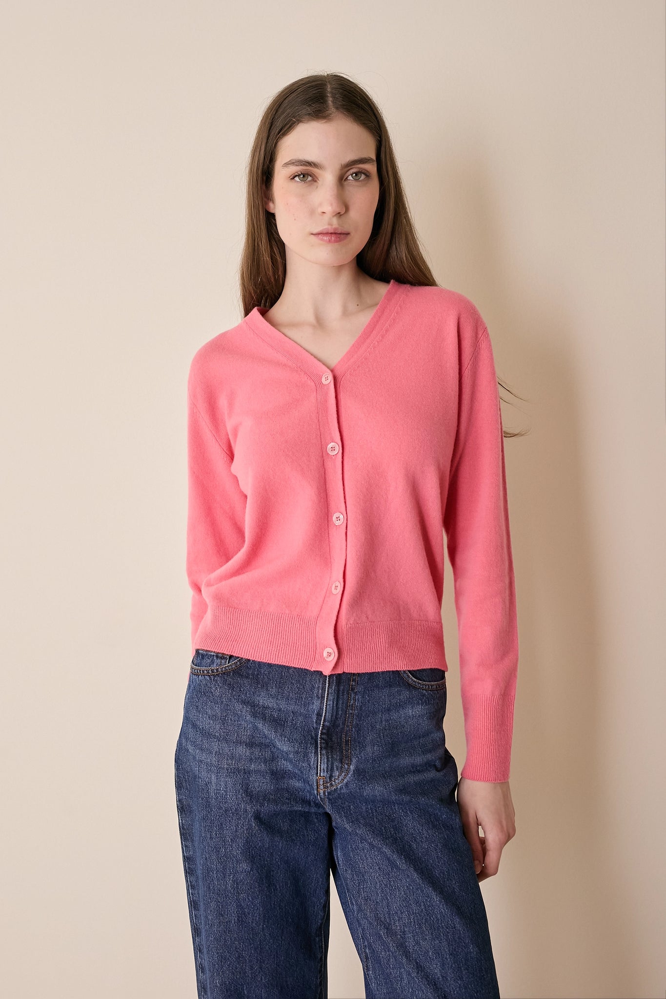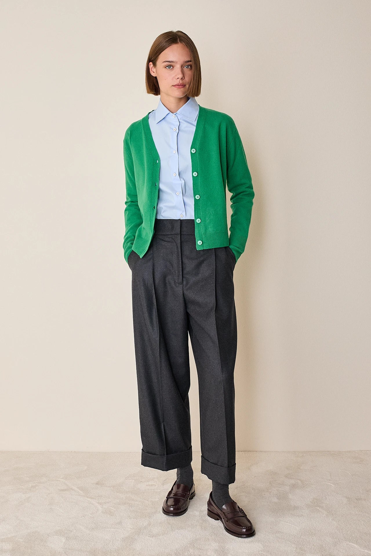 Per questo cardigan abbiamo scelto un filato camberra superfine, naturalmente caldo ma sottile. Disegnato per essere indossato sia a pelle che sopra a una camicia o t-shirt, è disponibile in blu, verde, rosso, grigio o rosa.