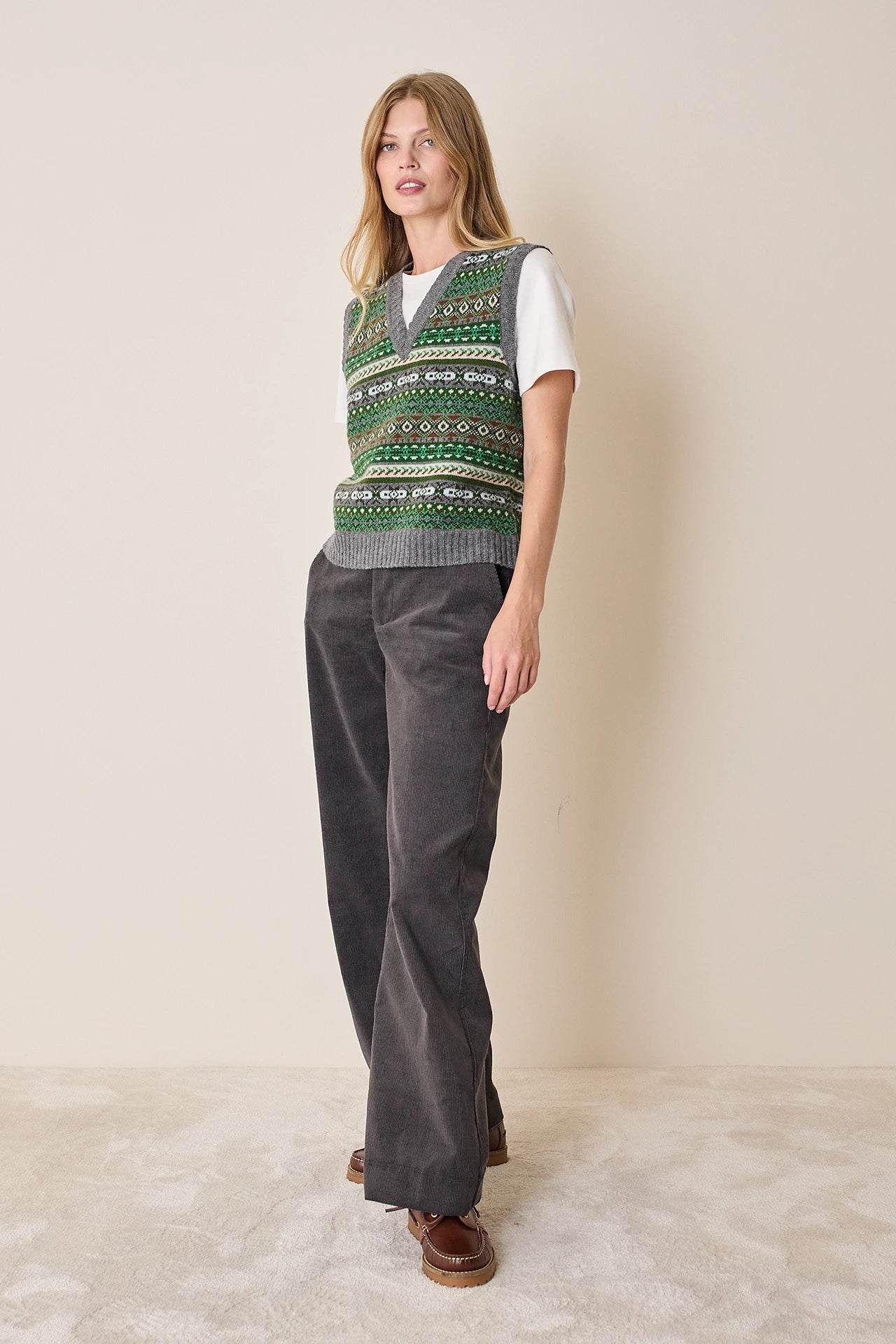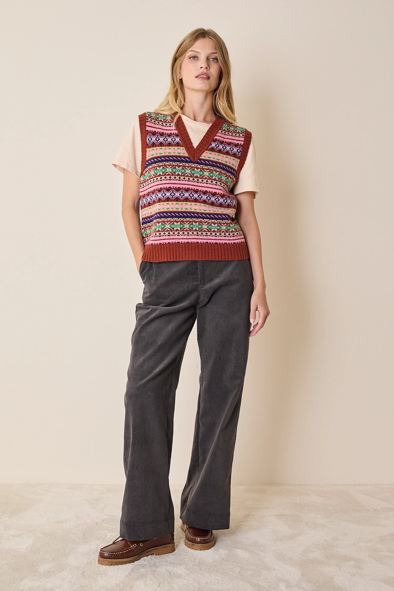 Questo gilet in lana è disegnato per aggiungere uno strato di colore (e caldino) a ogni tuo look. Per realizzarlo abbiamo scelto la tecnica dello jacquard e filati coloratissimi a contrasato, che fanno risaltare il motivo geometrico. Disponibile in tre varianti.