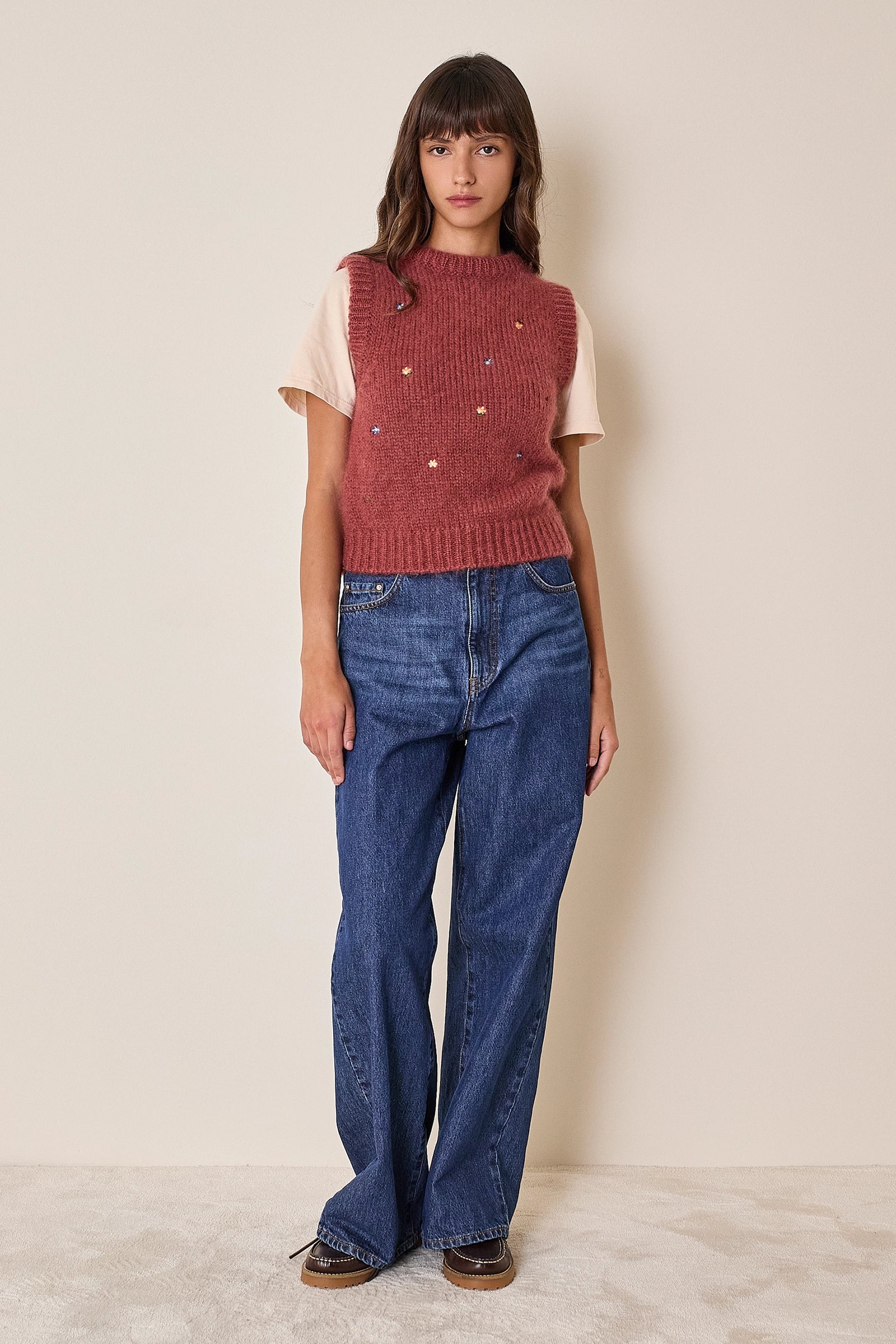 Tra la morbidezza del mohair fanno capolino piccoli fiori ricamati. Ti presentiamo il nostro ultimo gilet, pensato per aggiungere uno strato di calore e morbidezza a ogni tuo look.