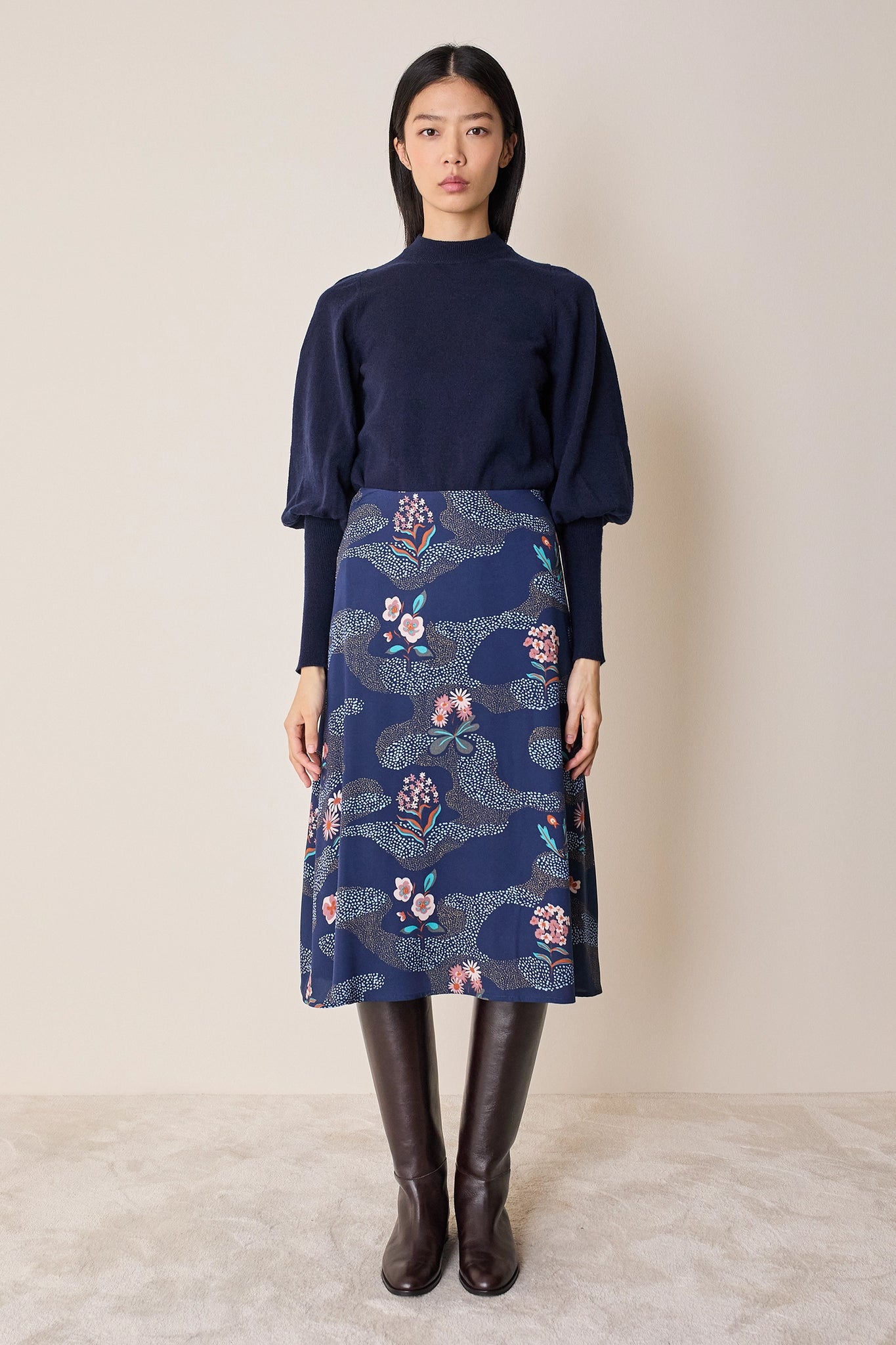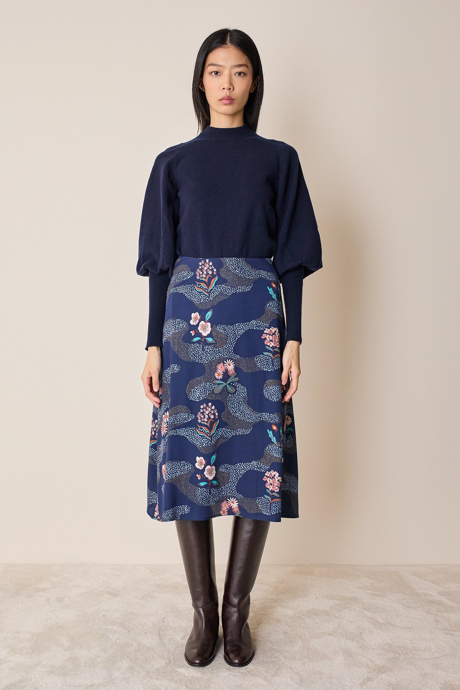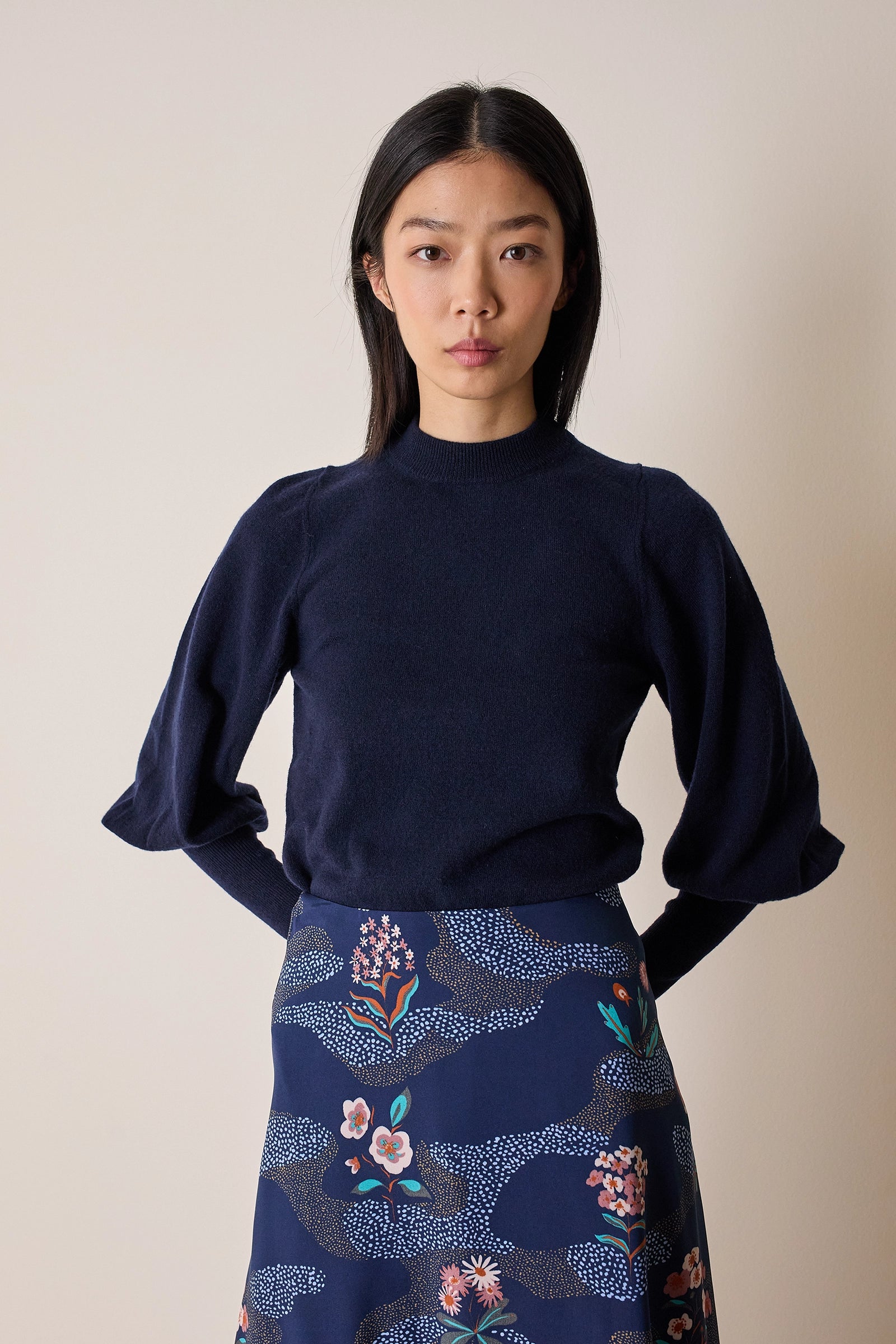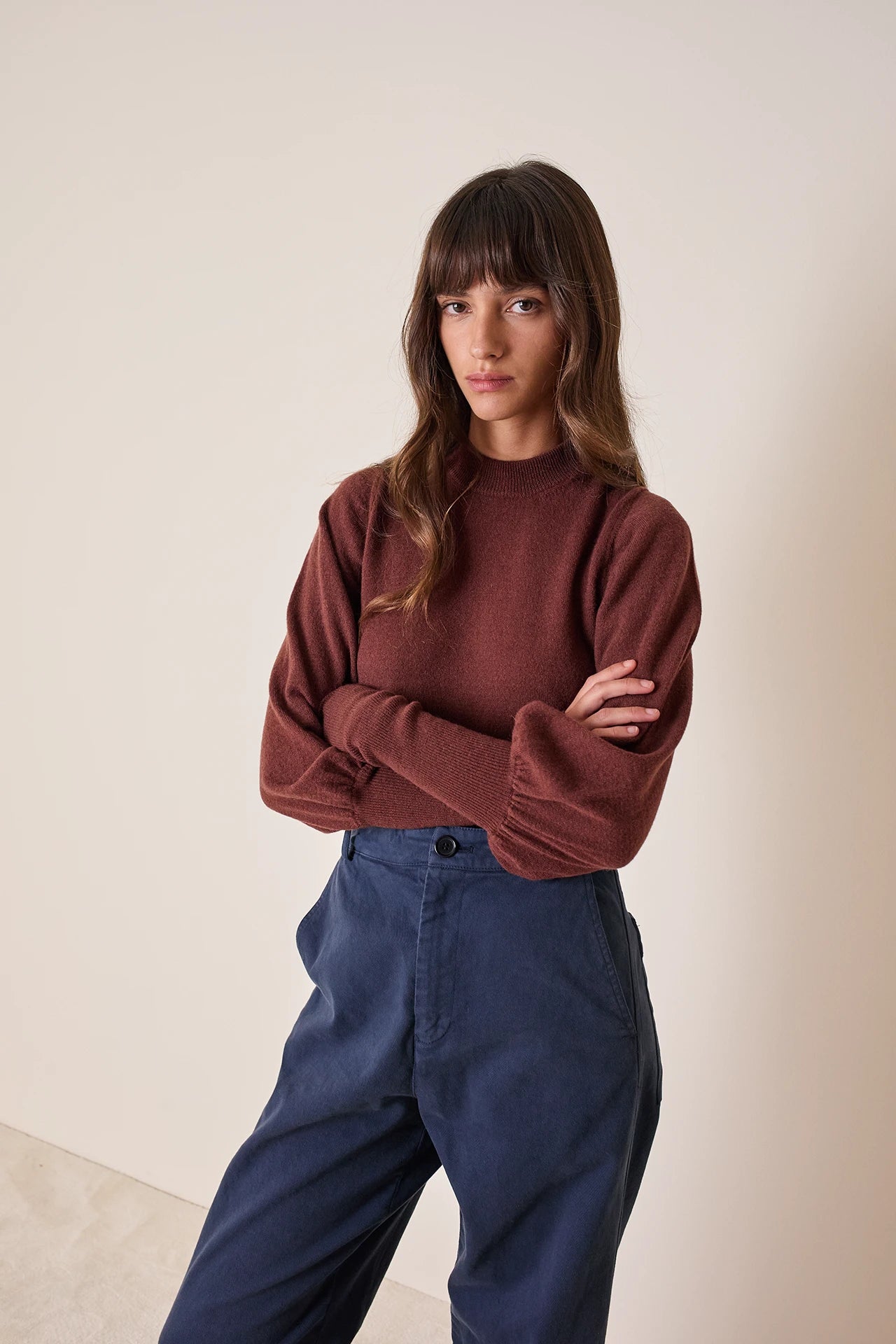 Maglia girocollo in lana e cashmere con maniche a sbuffo