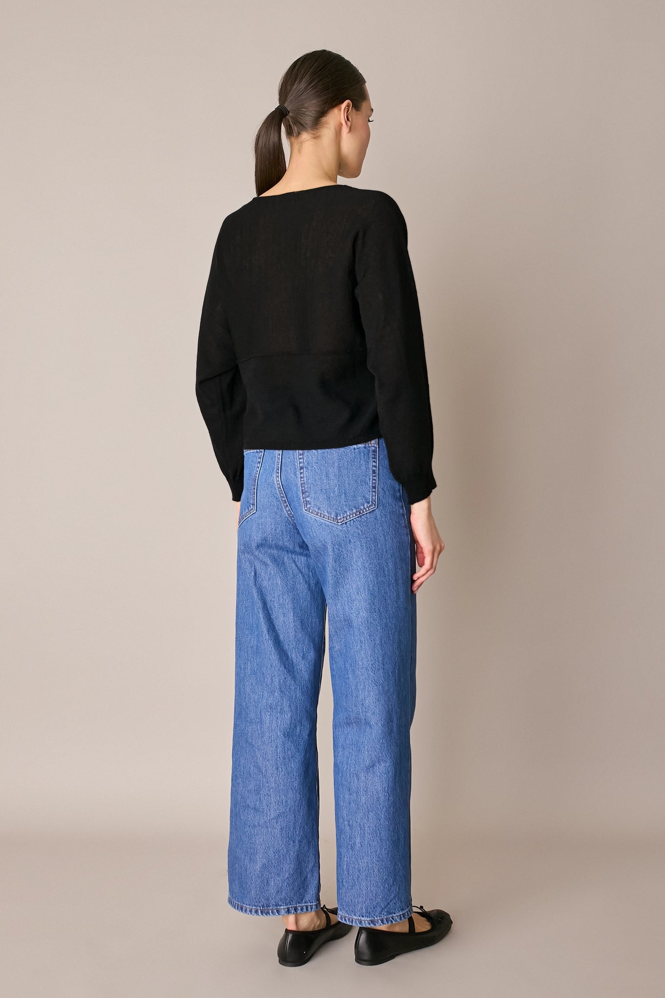 Realizzata in lino e cotone, questa maglia è caratterizzata da ampie maniche scese senza cuciture, un dettaglio che la rende casual e versatile, perfetta per tutti i giorni.