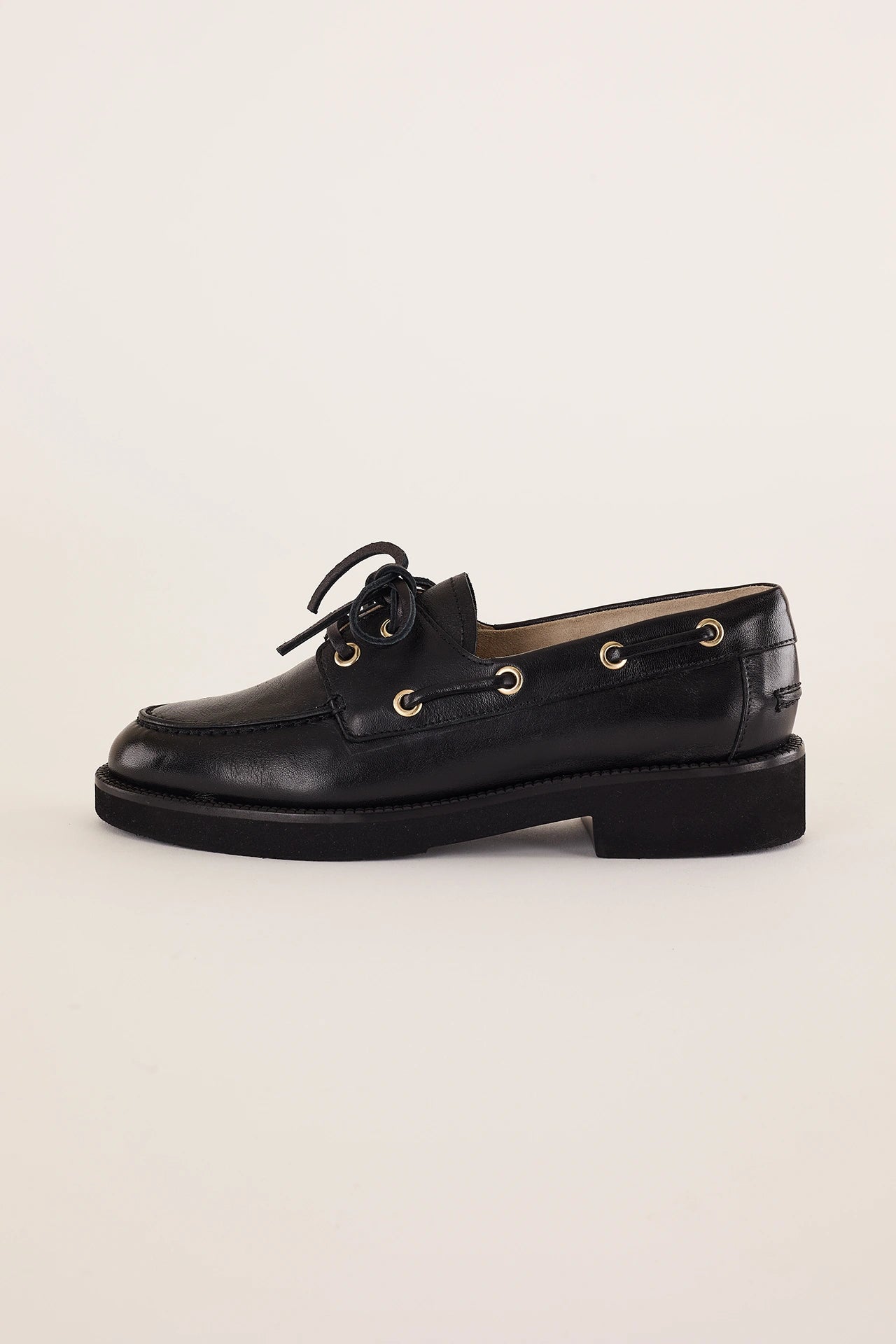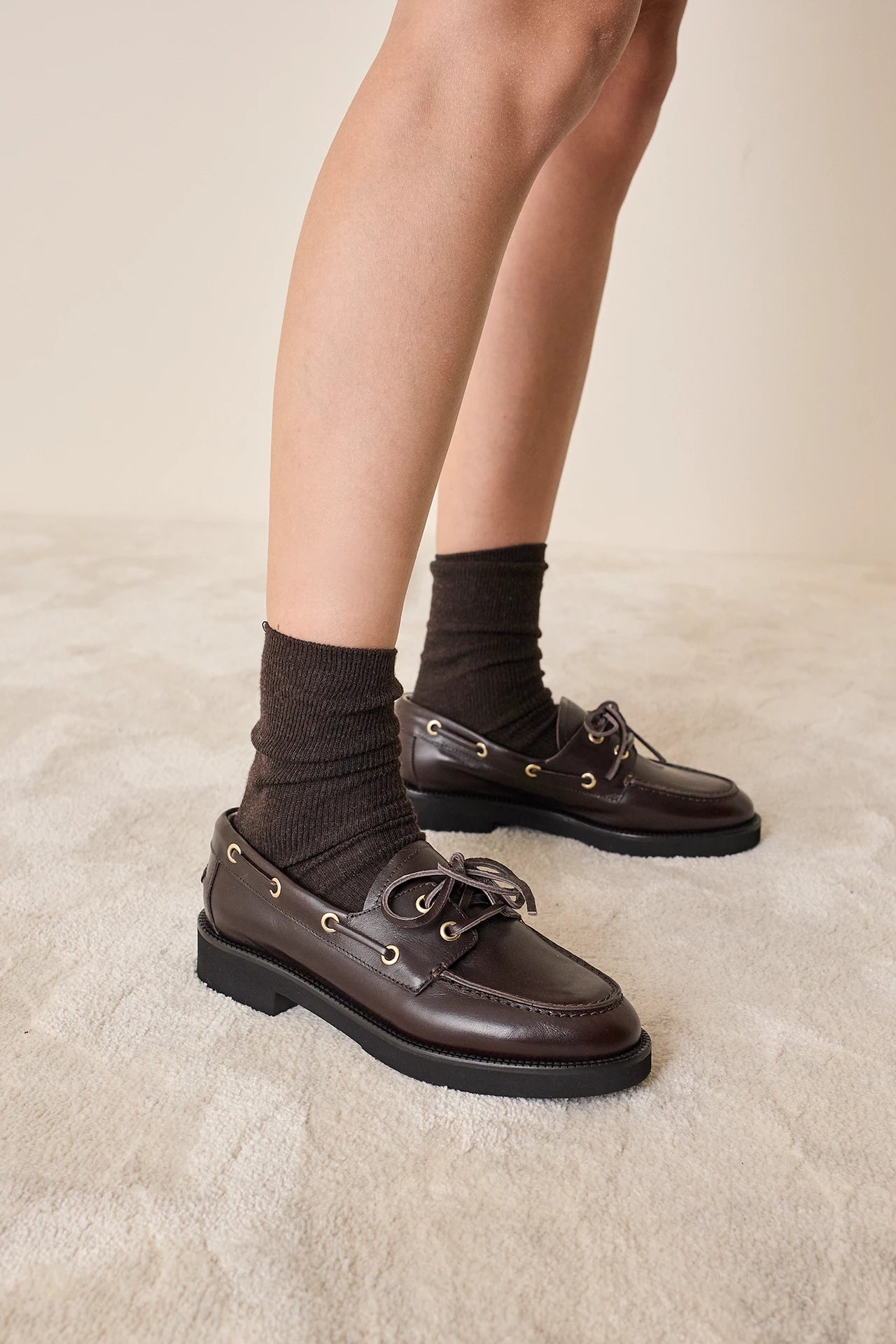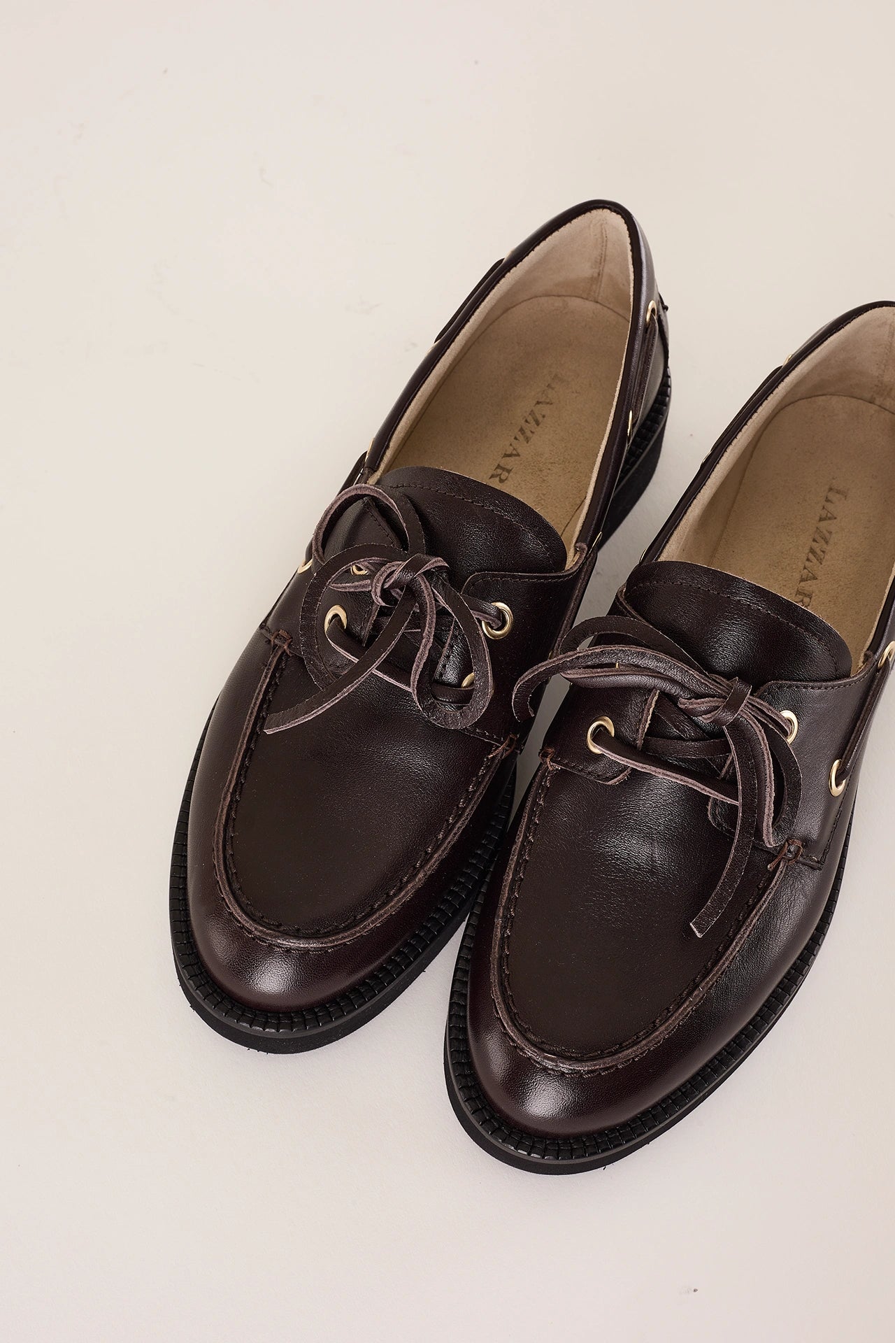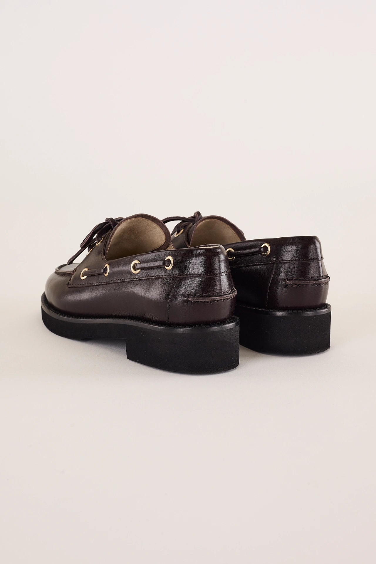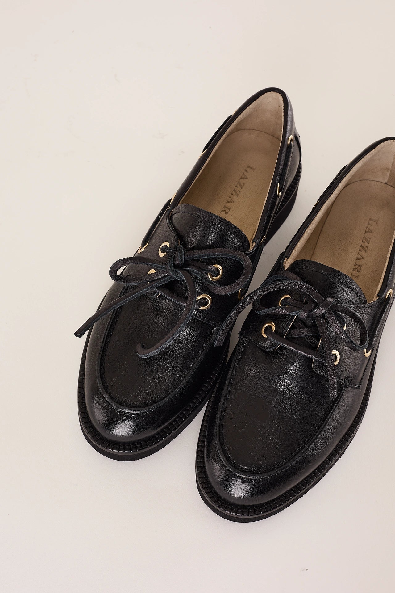 Una versione meno sportiva dei classici mocassini da barca. Per questo modello abbiamo mantenuto i dettagli iconici di queste calzature, come i lacci in cuoio, sostituendo però la suola carrarmato con una più semplice e confortevole in gomma microporosa, molto leggera e super morbida, per un look più versatile, adatto anche all’ufficio.