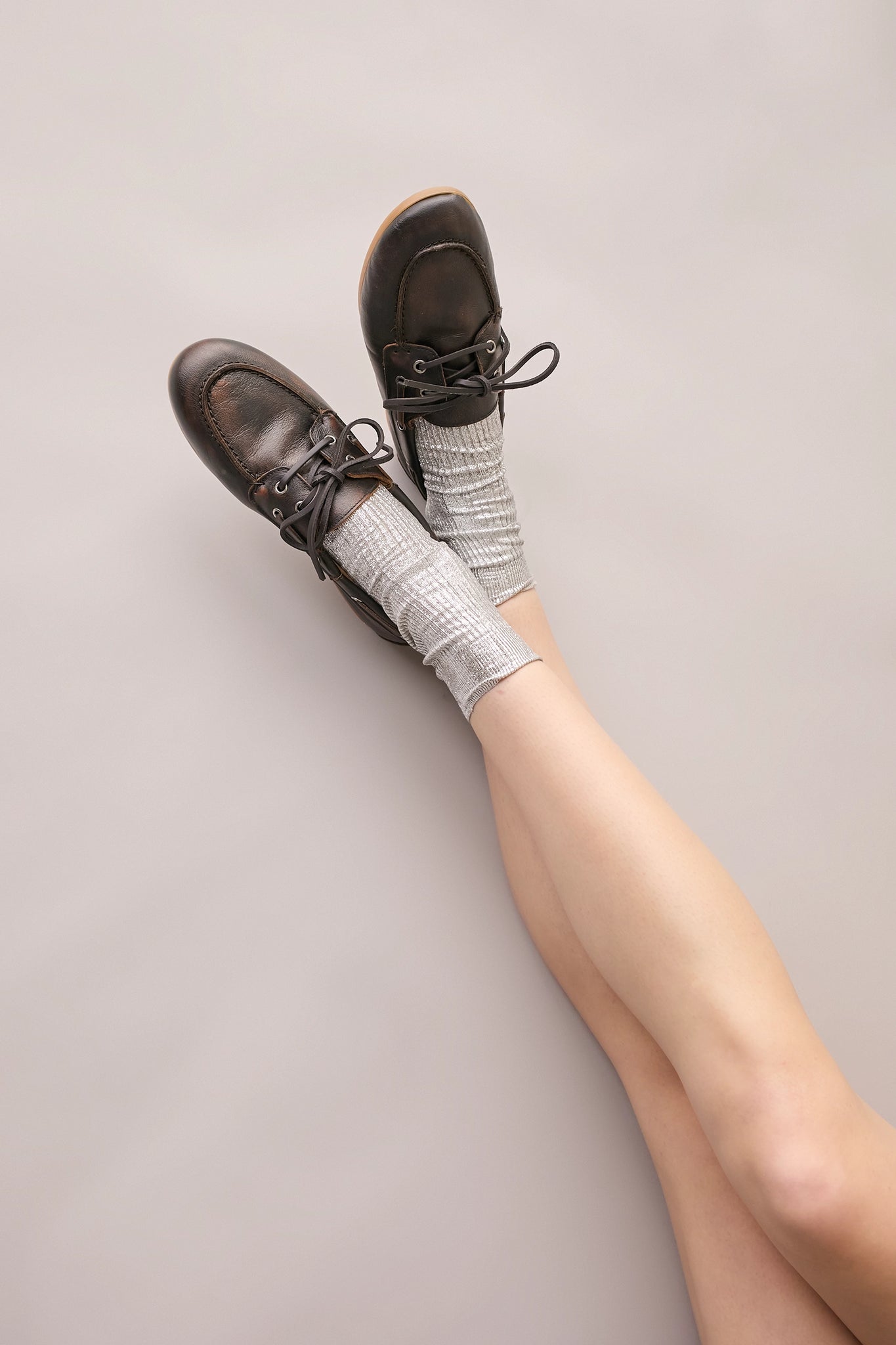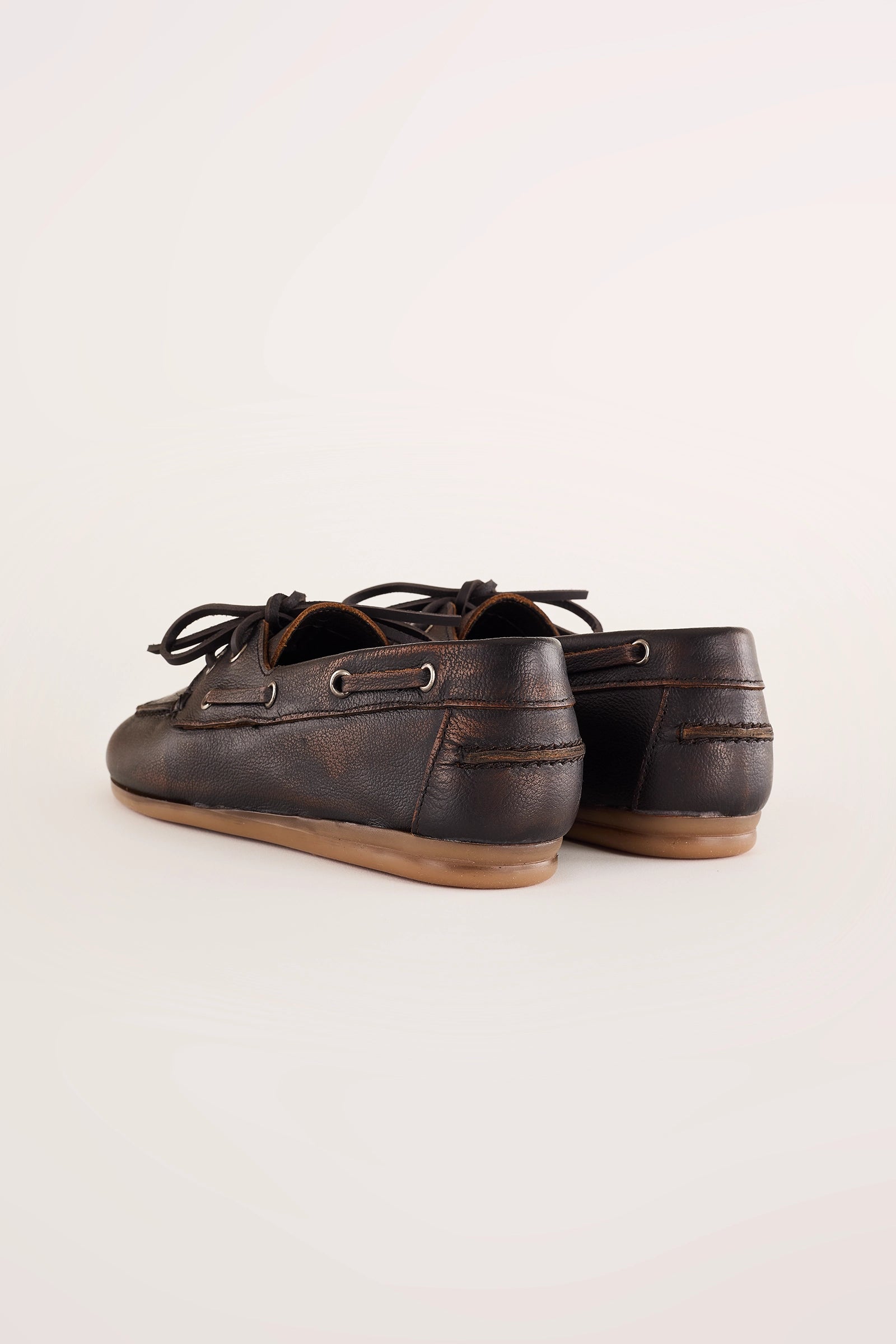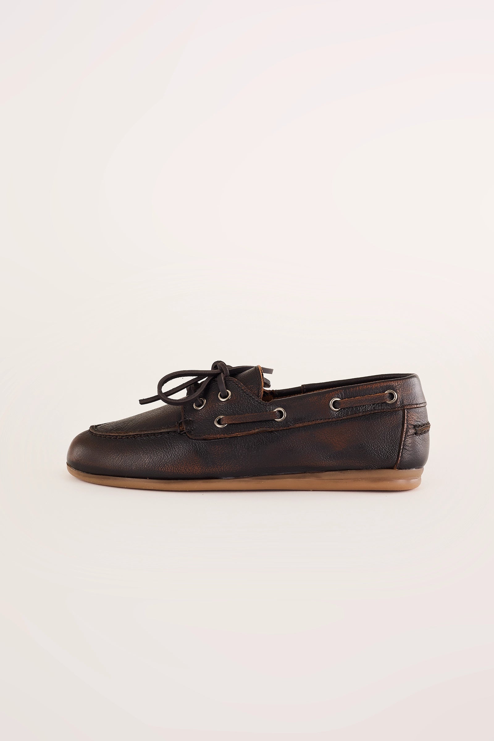 Questi mocassini da barca uniscono lo stile college all’ispirazione vintage, grazie a una speciale lavorazione della pelle che ricorda le naturali scoloriture causate dal sole. La silhouette leggermente affusolata e la suola in gomma assicurano comfort e versatilità. Disponibili in morbida nappa marrone con lacci in pelle, oppure in pelle scamosciata color tabacco con lacci in corda.