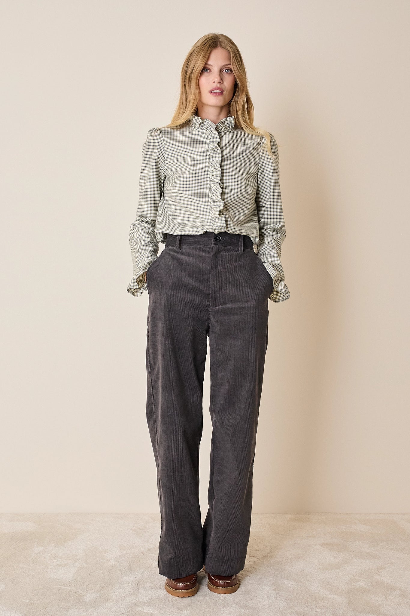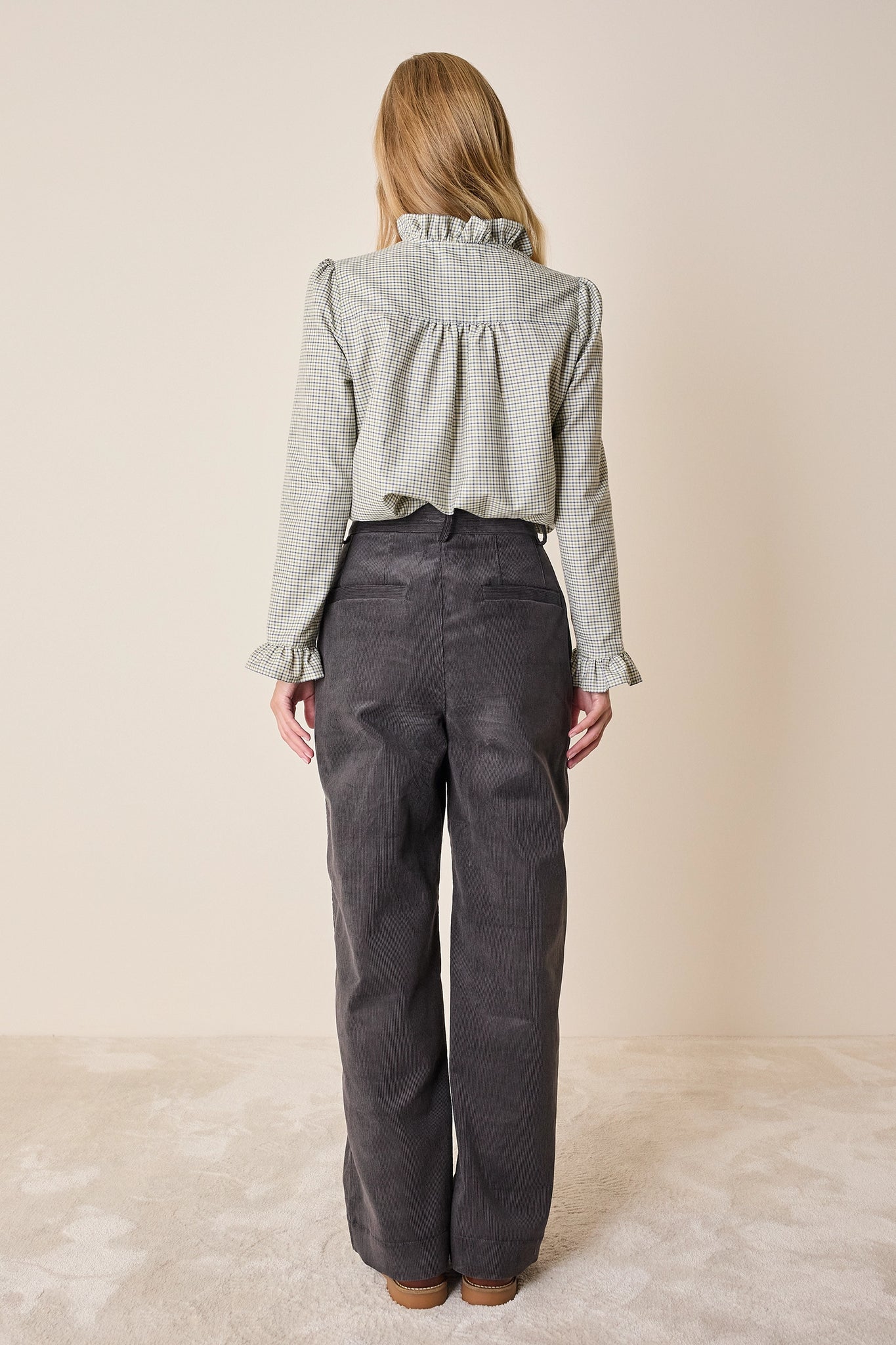 Questi pantaloni in velluto di cotone sono il capo ideale per l’ufficio. Adesso puoi abbinarli a una camicia in cotone, ma quando le giornate saranno più fredde saranno perfetti anche con un maglioncino in lana. Disponibili in grigio o kakhi.