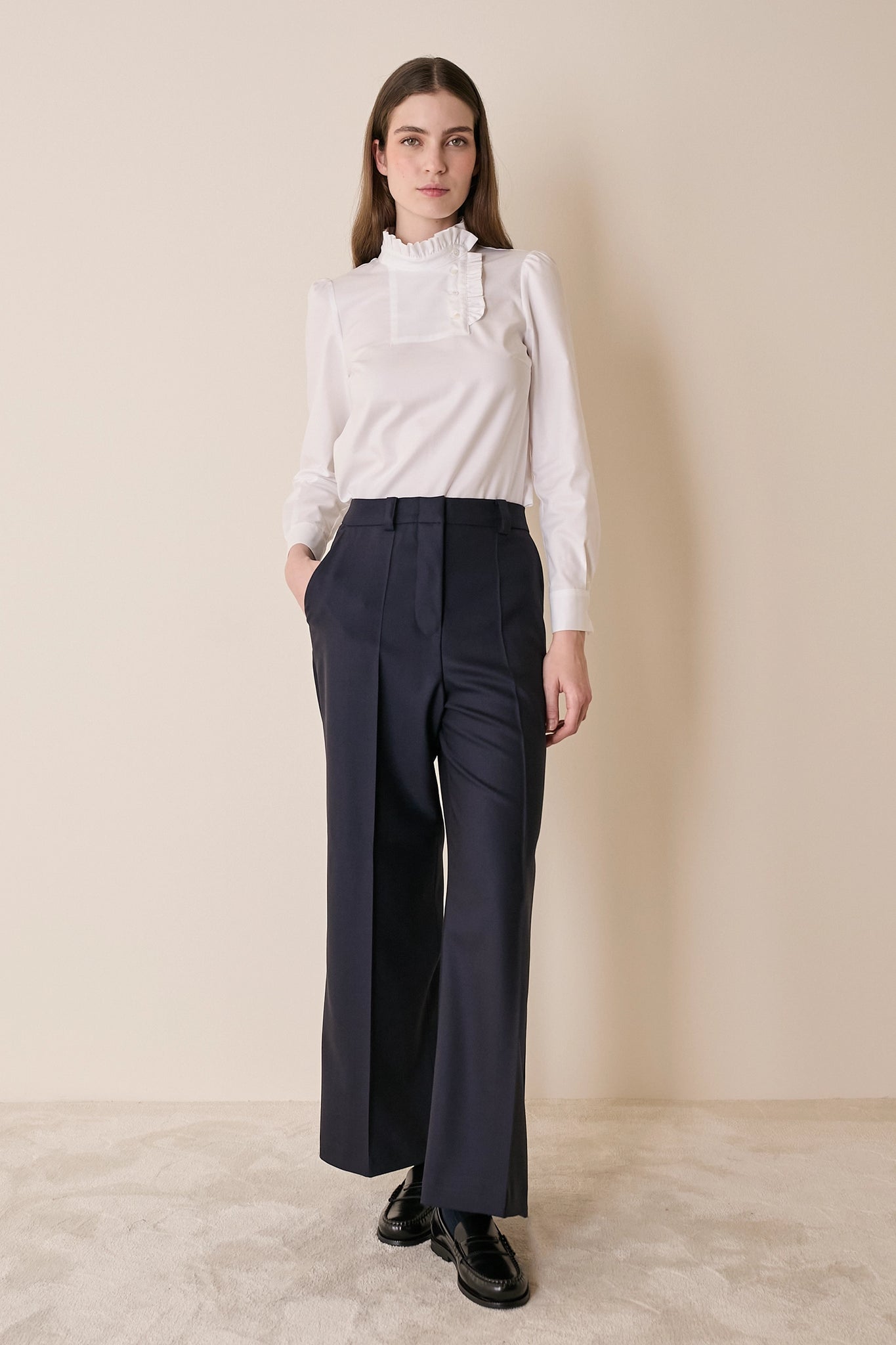 Pantaloni con piega in lana vergine