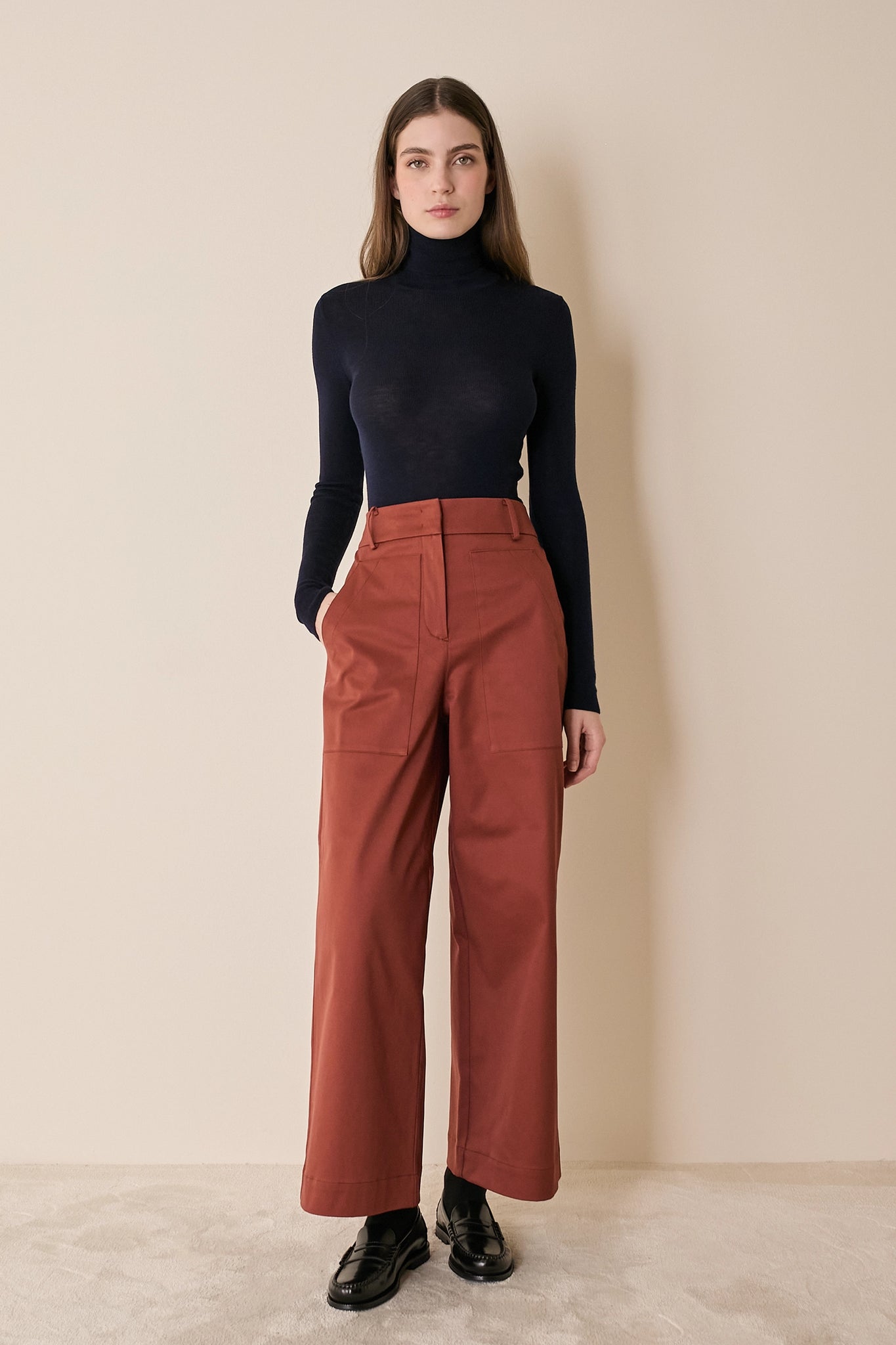 Disegnati per tutti i giorni, questi pantaloni in cotone si abbinano perfettamente a una camicia e un paio di mocassini, ma anche a un maglioncino girocollo e a un paio di stivaletti.