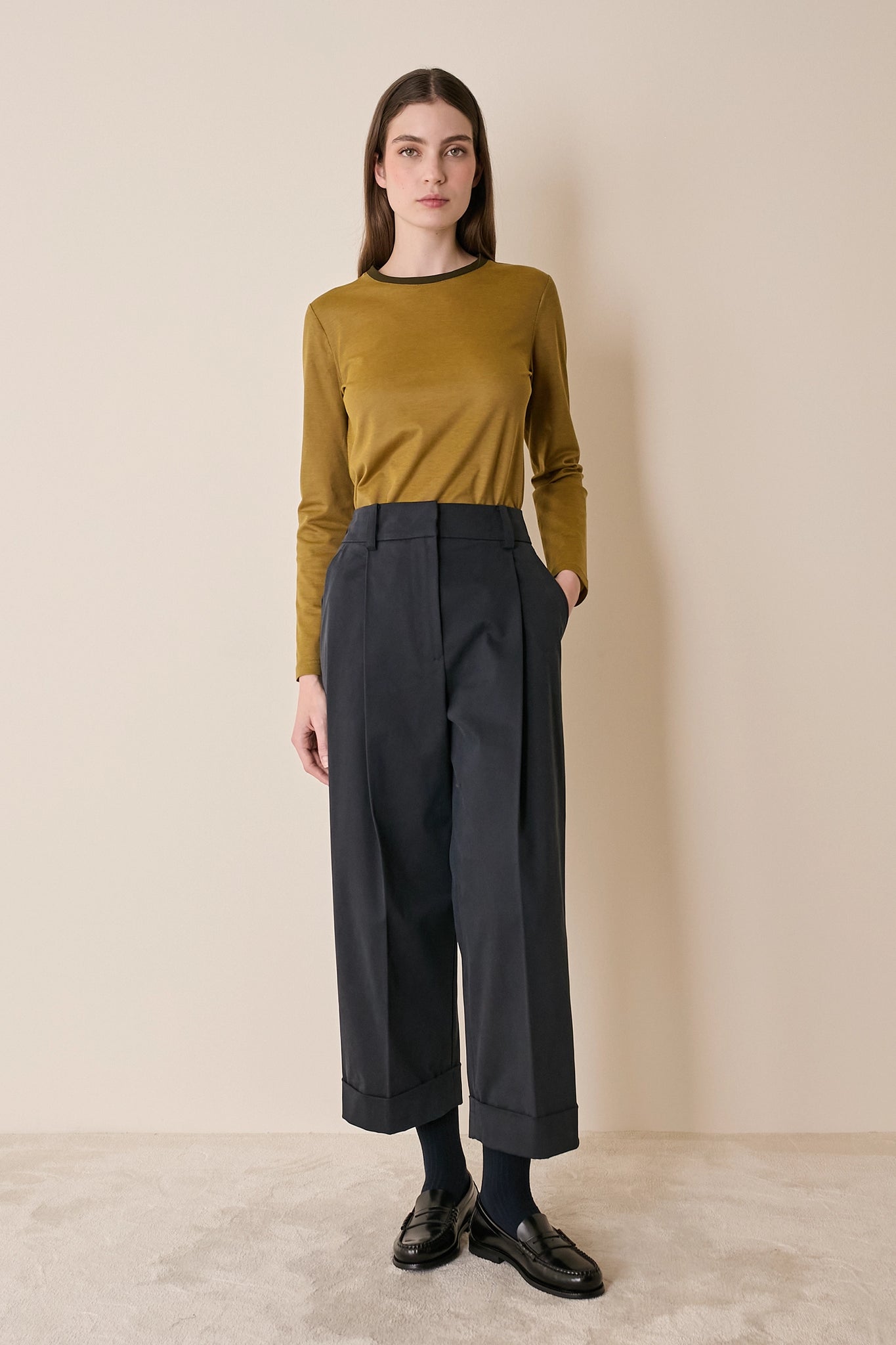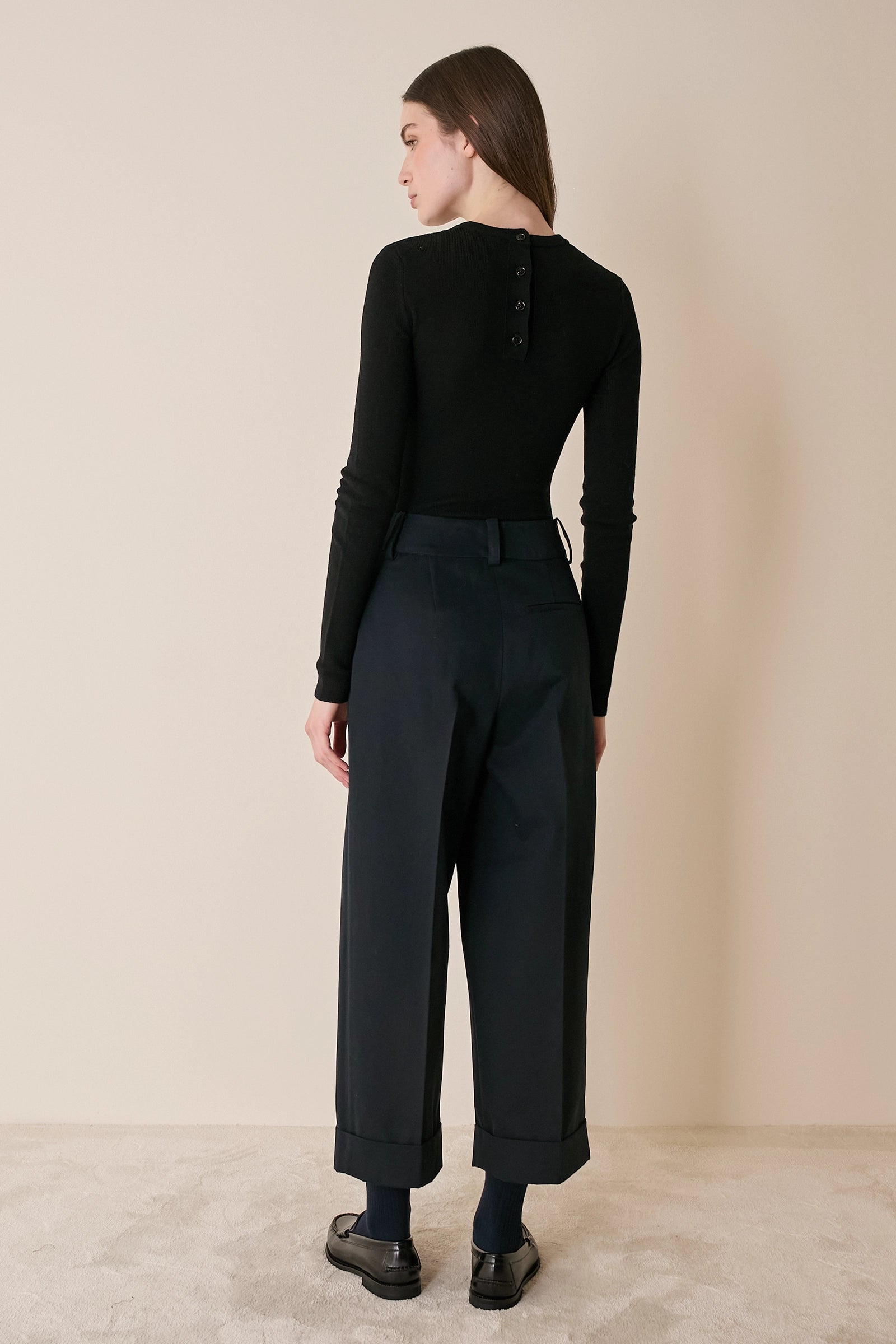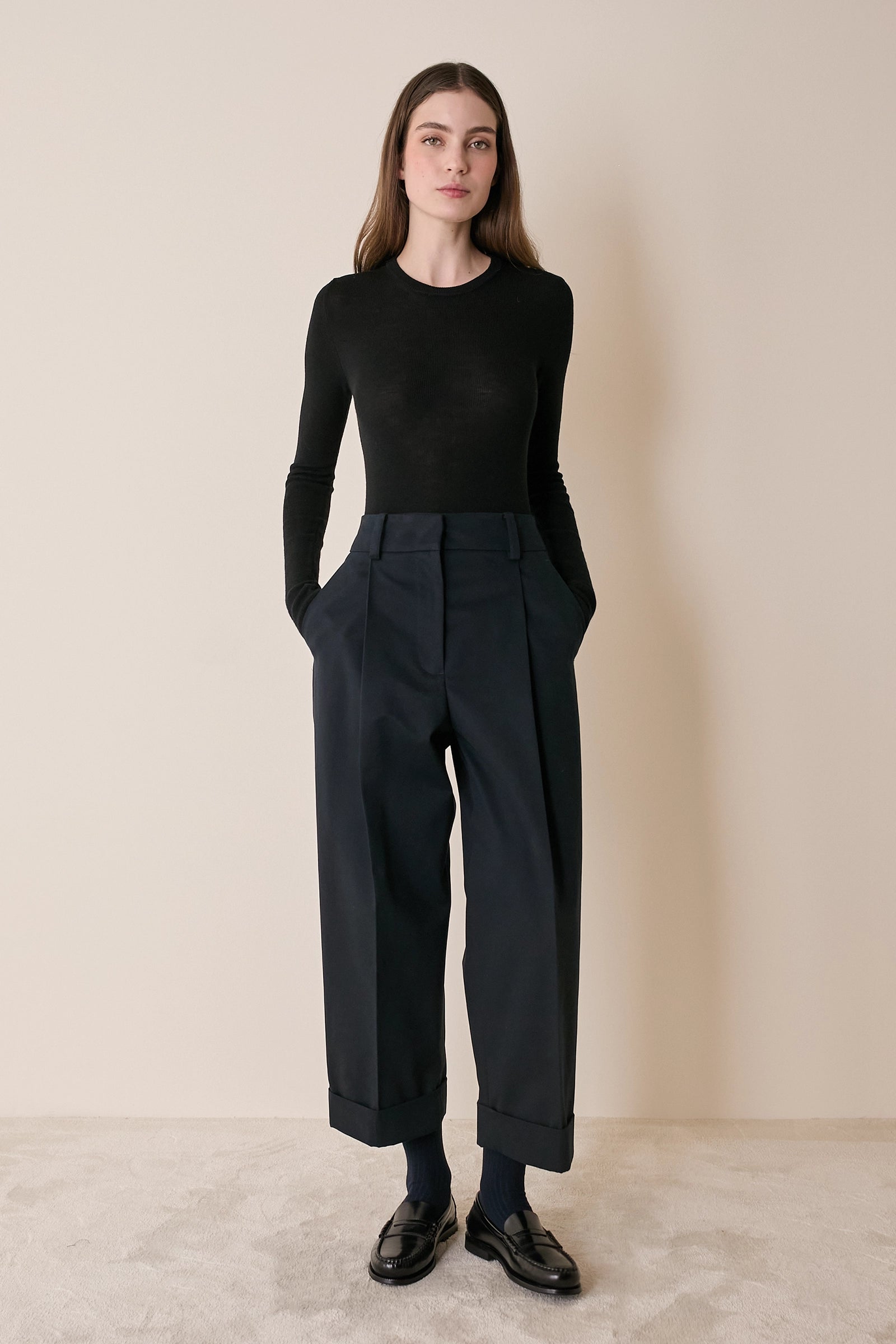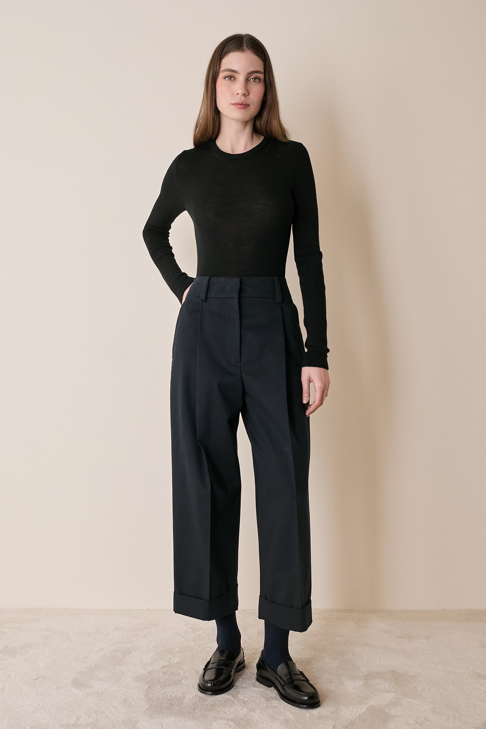 Pantaloni in cotone con piega e risvolto