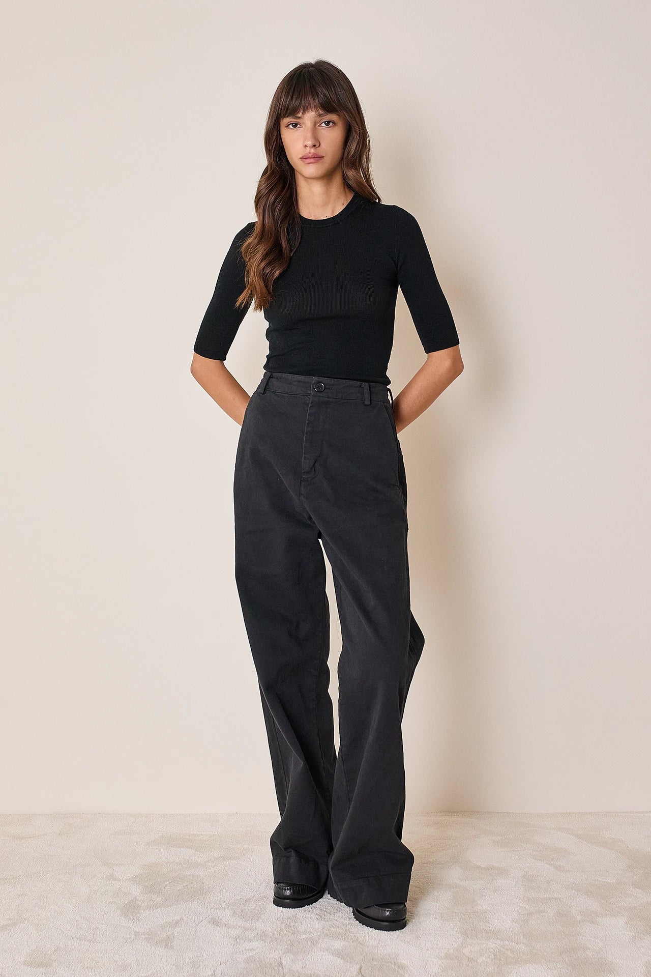 Pratici e versatili, questi pantaloni in gabardine di cotone sono pensati per essere indossati tutti i giorni. Disponibili in nero, blu o muschio.
