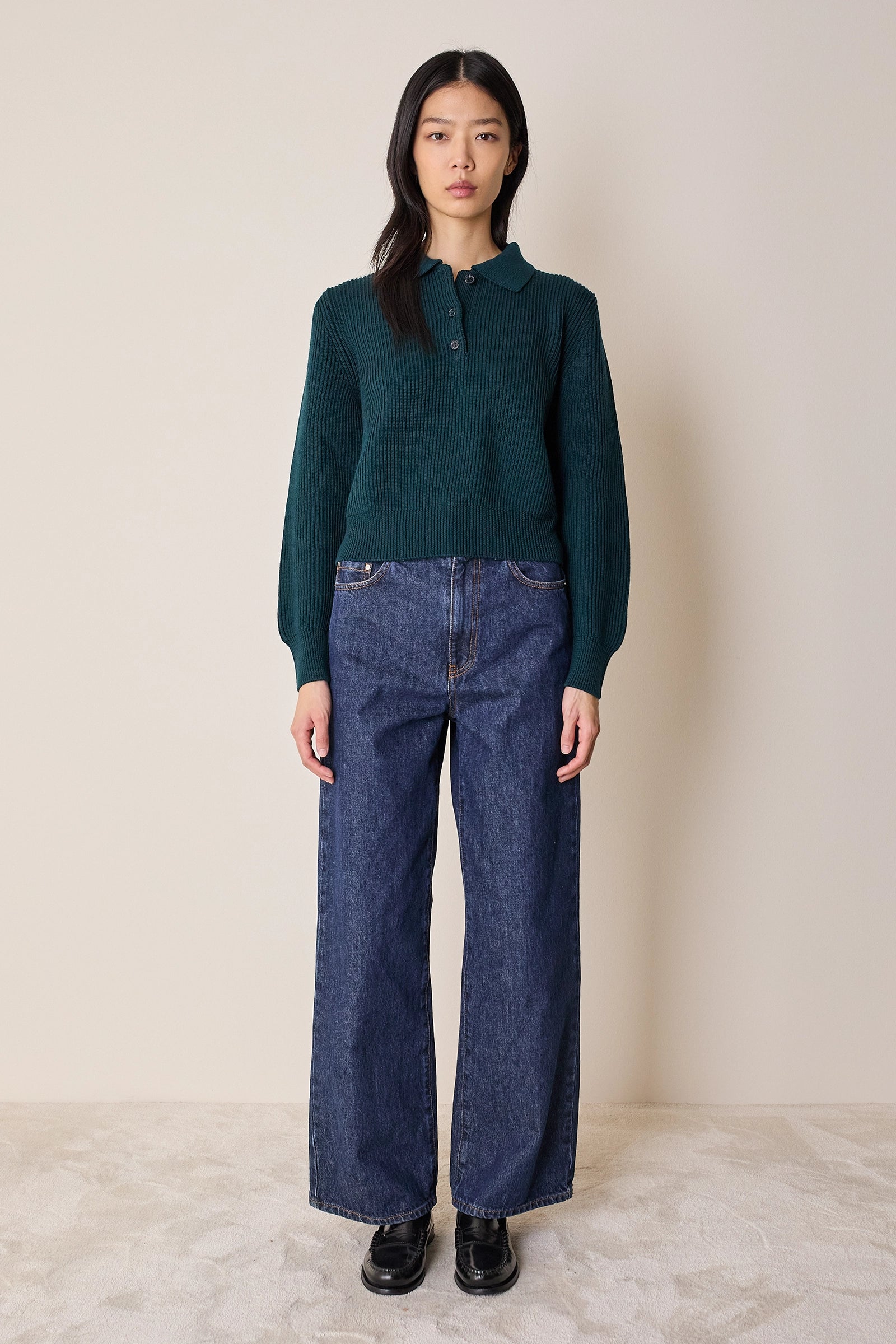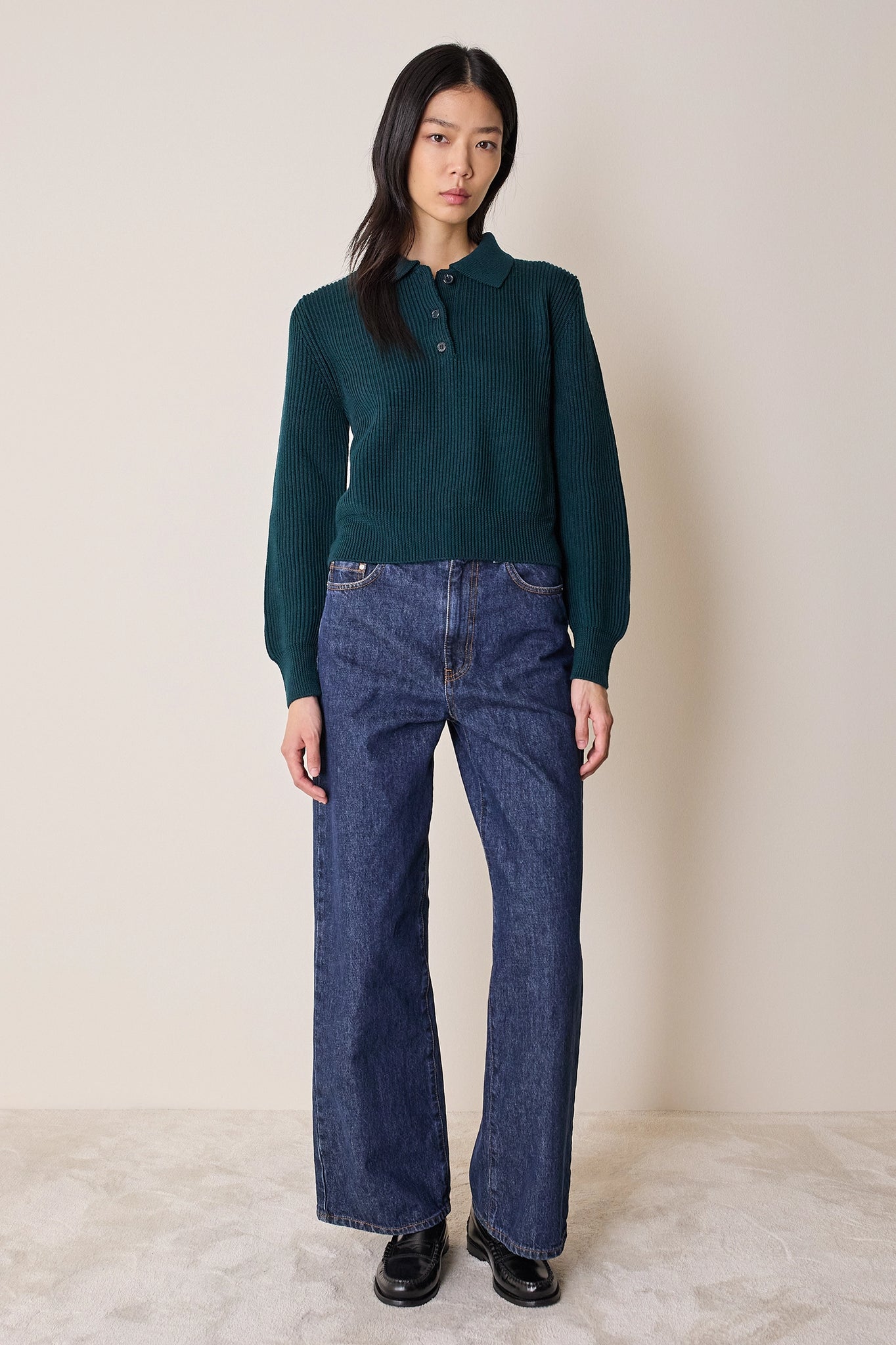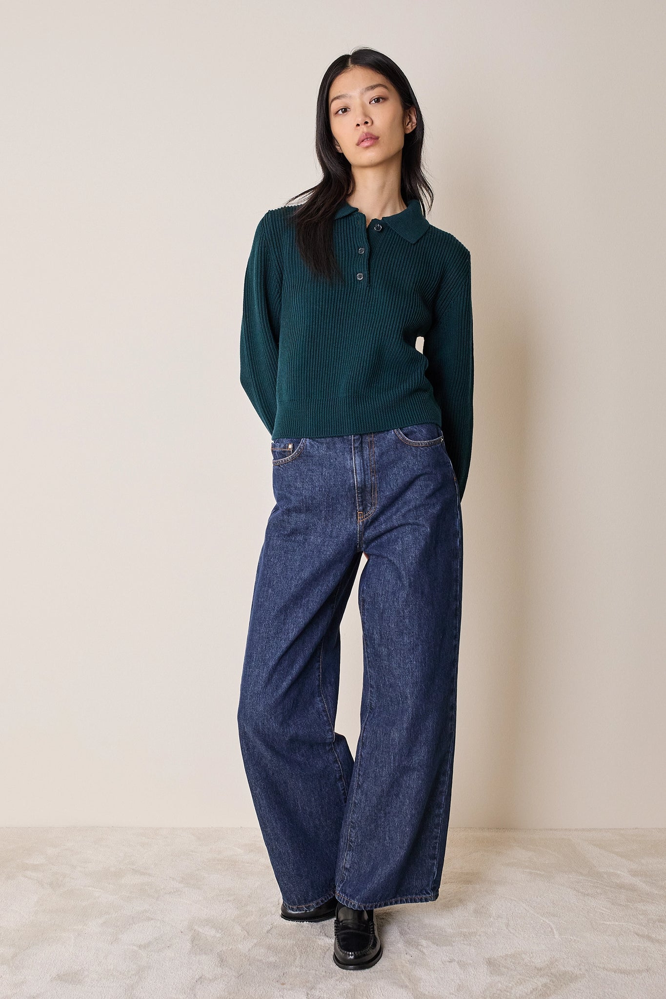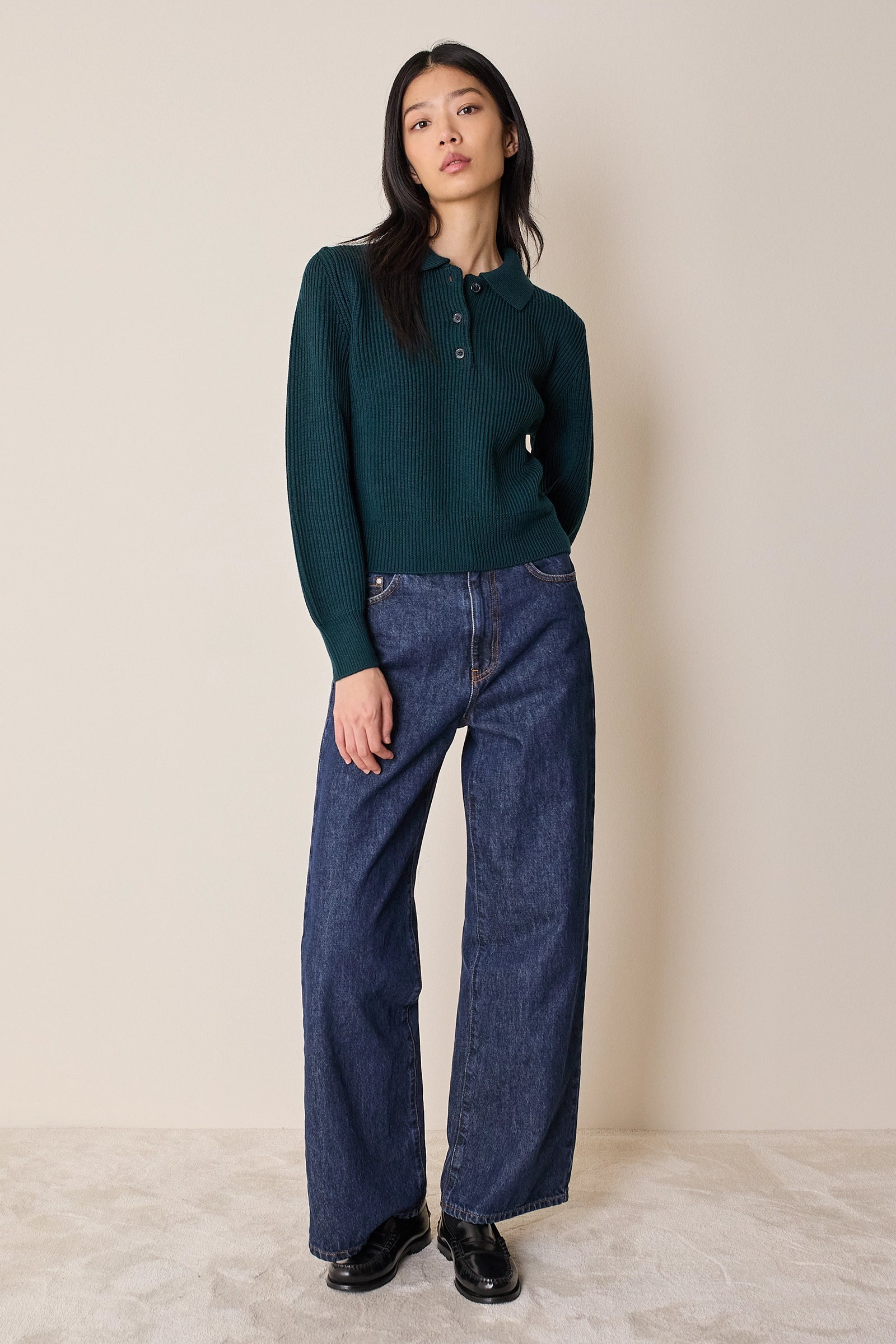 Semplice, versatile e naturalmente calda, questa polo a costine è perfetta sia con i pantaloni che con le gonne. Realizzata in pura lana vergine, è disponibile in giallo.
