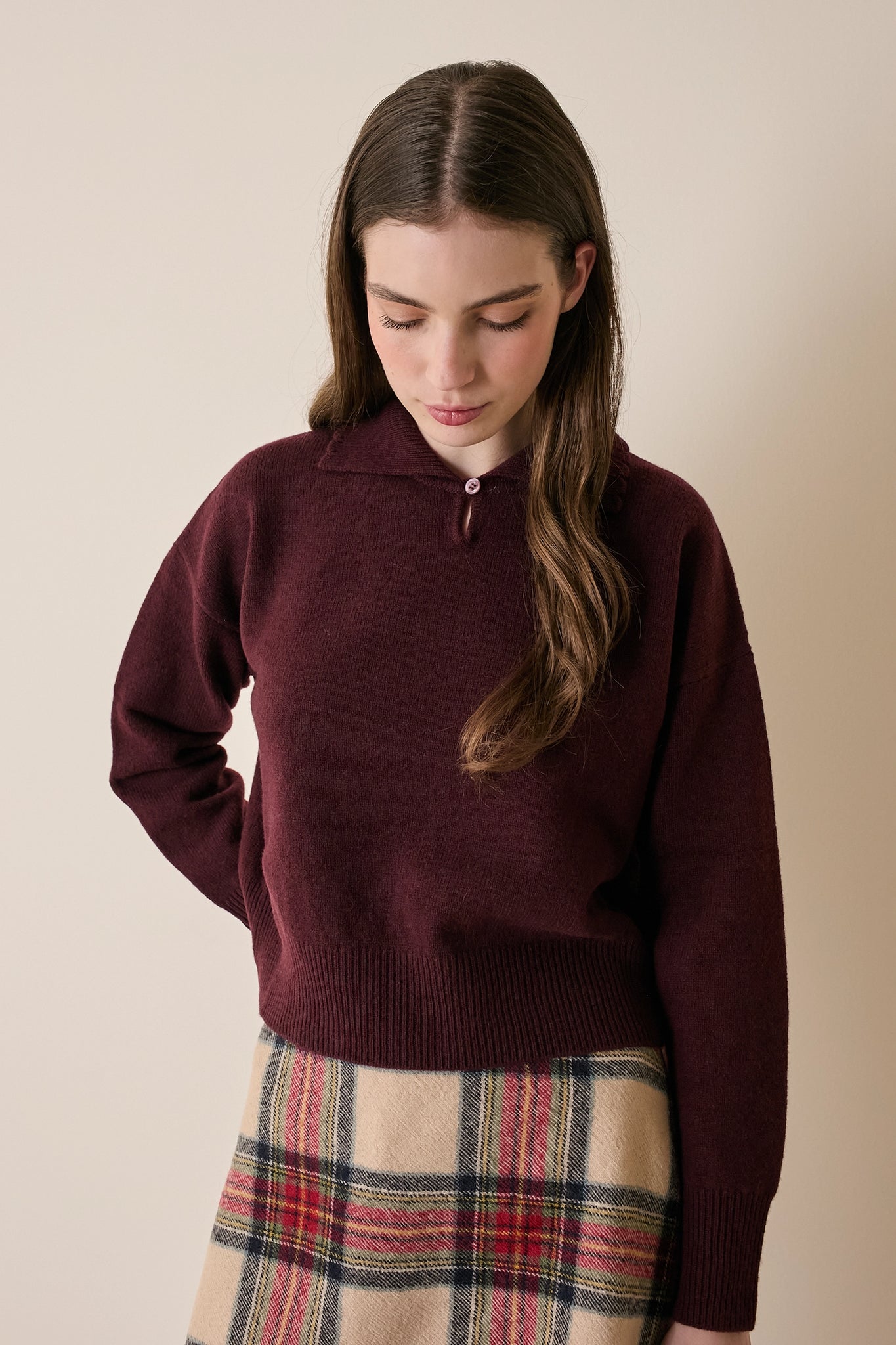 Polo in lana e cashmere con colletto smerlato