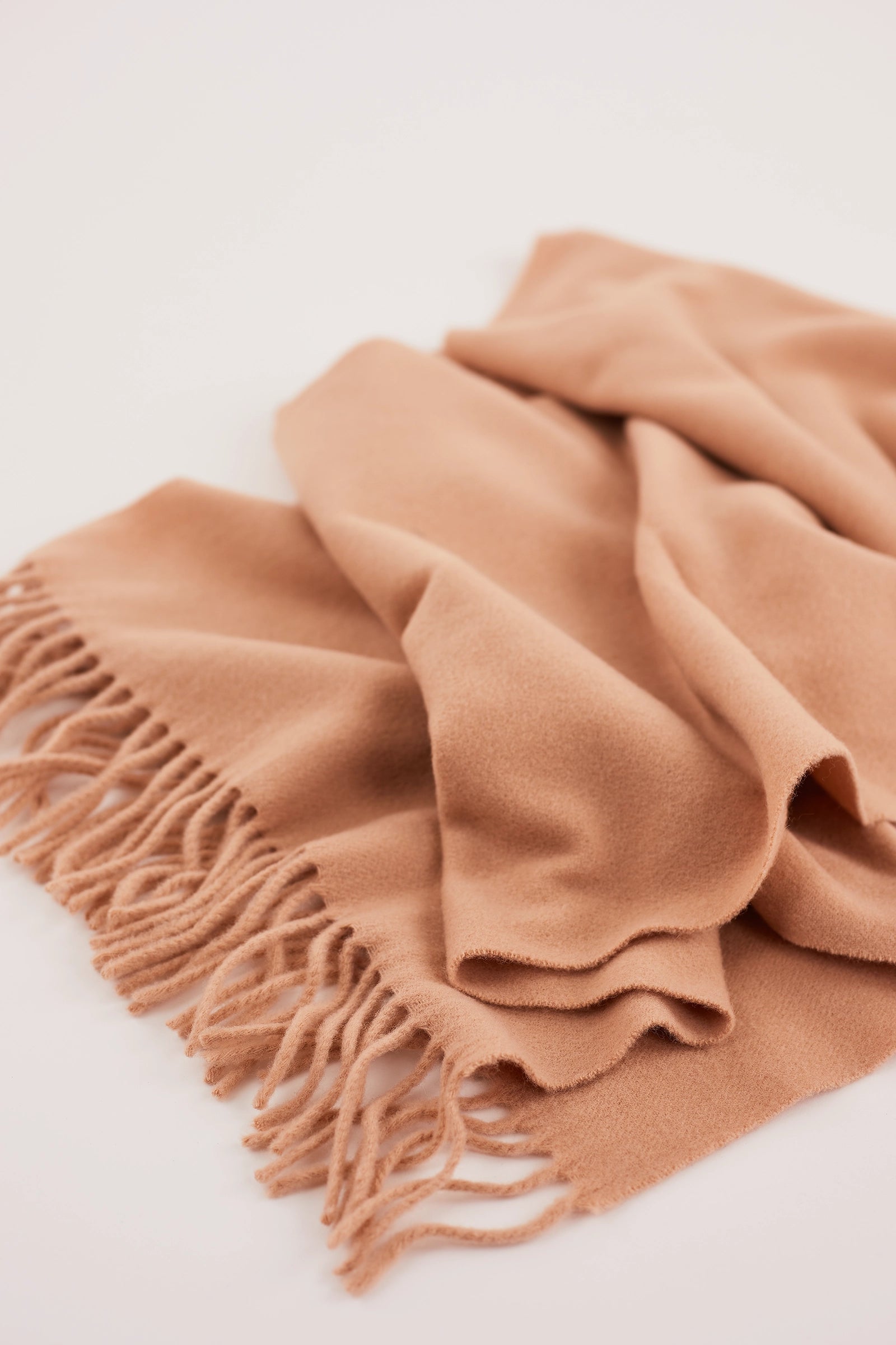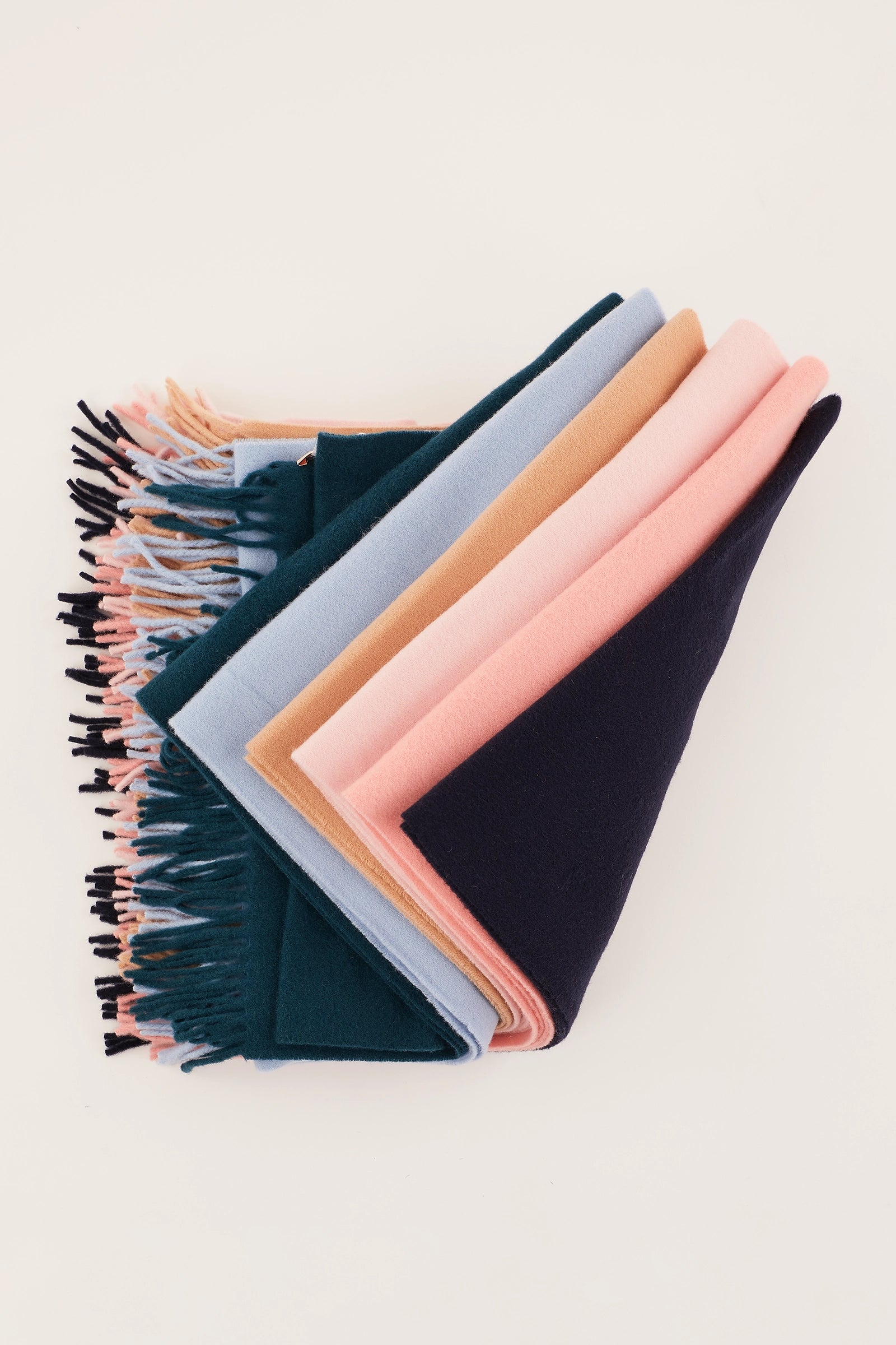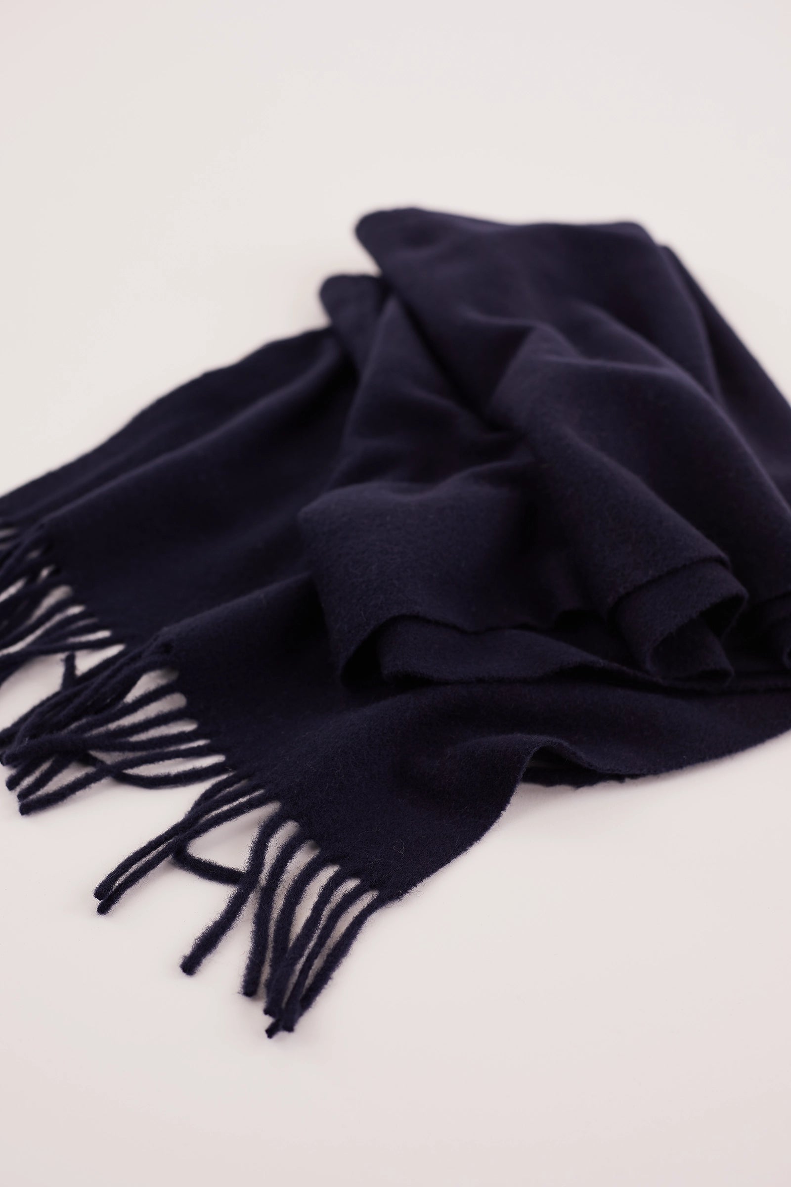 Per questa sciarpa tinta unita con frange abbiamo scelto il più morbido blend di lana e cashmere.