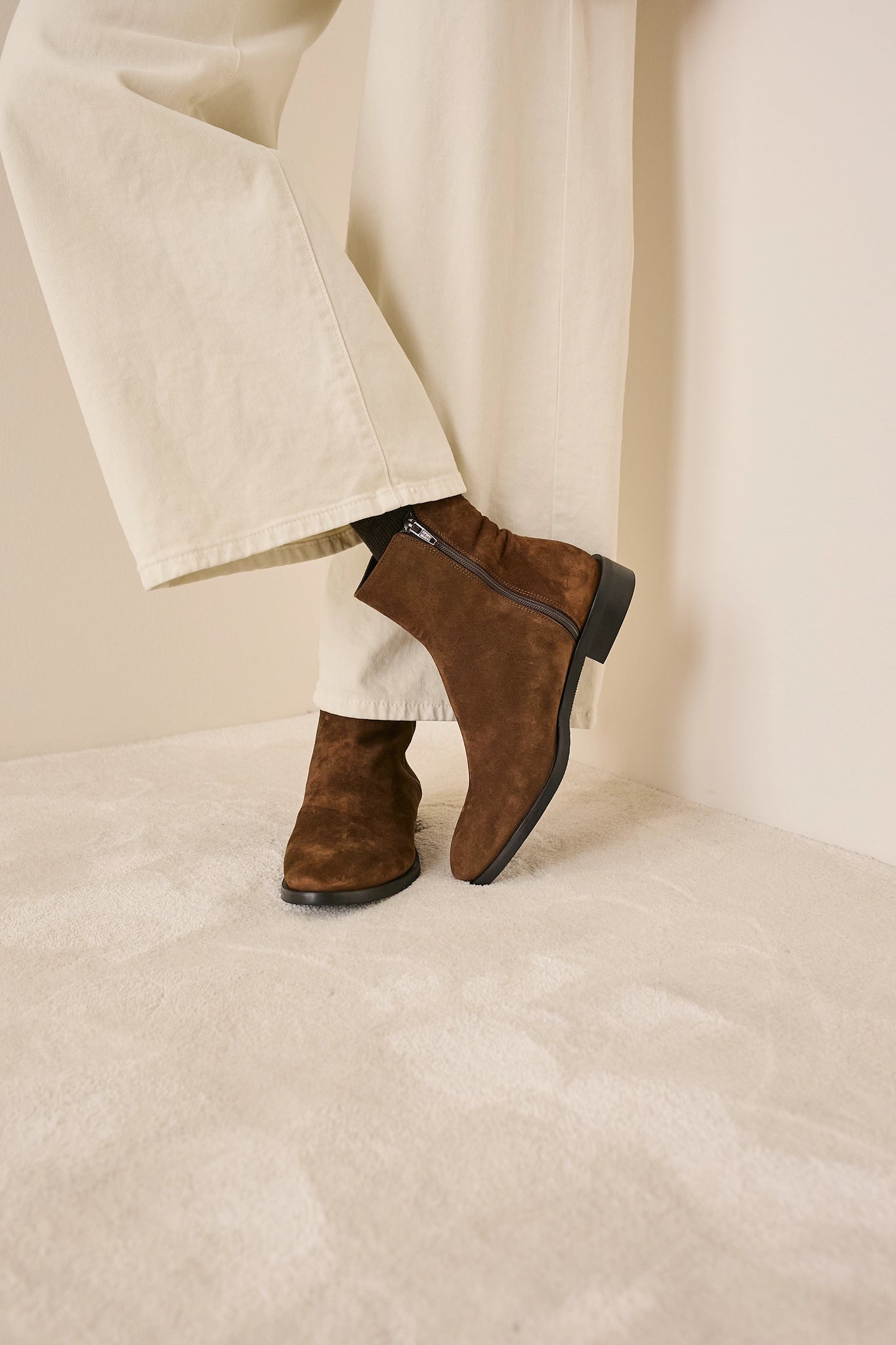 Gli stivaletti sportivi alla caviglia sono un modello che non smetterai mai di indossare perché sono perfetti sia per l’ufficio che per il tempo libero. I nostri sono caratterizzati dal dettaglio estetico e funzionale della doppia zip, che garantisce una calzata facile e veloce. Disponibili in pelle scamosciata marrone.