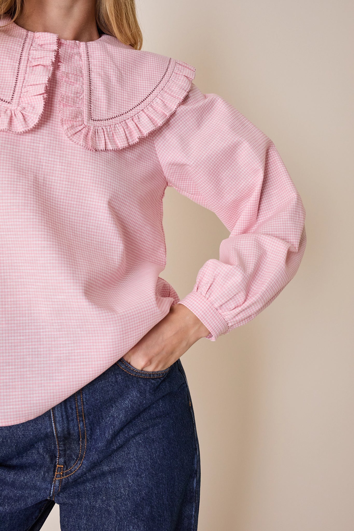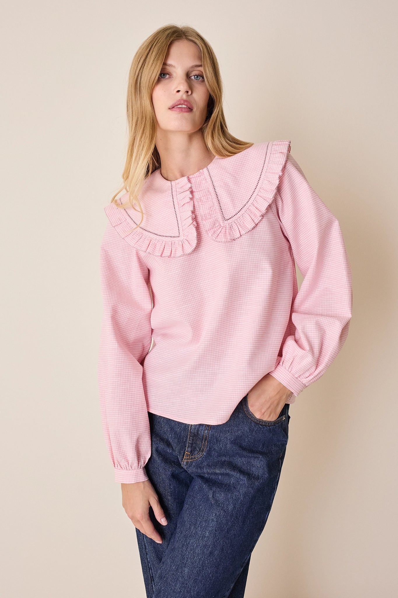 Questo top è caratterizzato dal dettaglio romantico del maxi colletto. Abbinalo a un paio di jeans o gonne in autunno, ma non dimenticartene questo inverno: il maxi colletto renderà speciale ogni maglia girocollo!