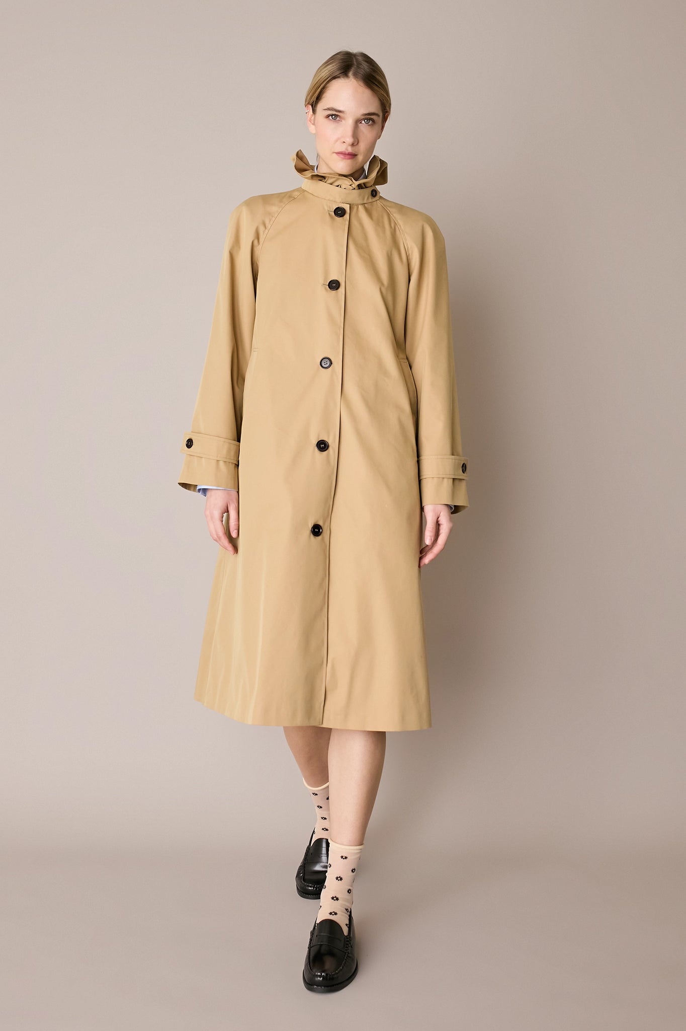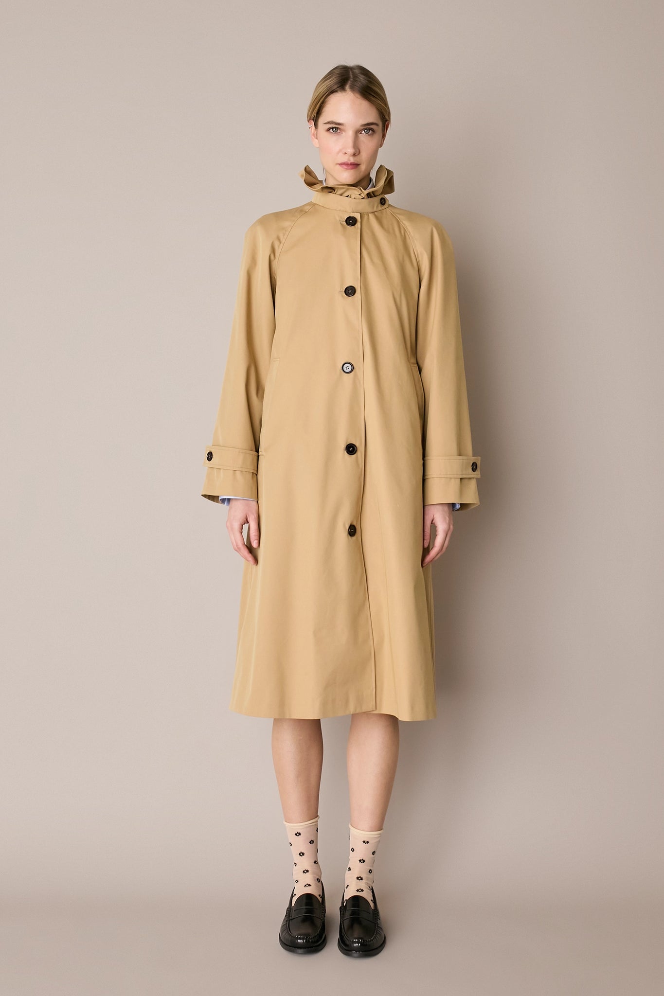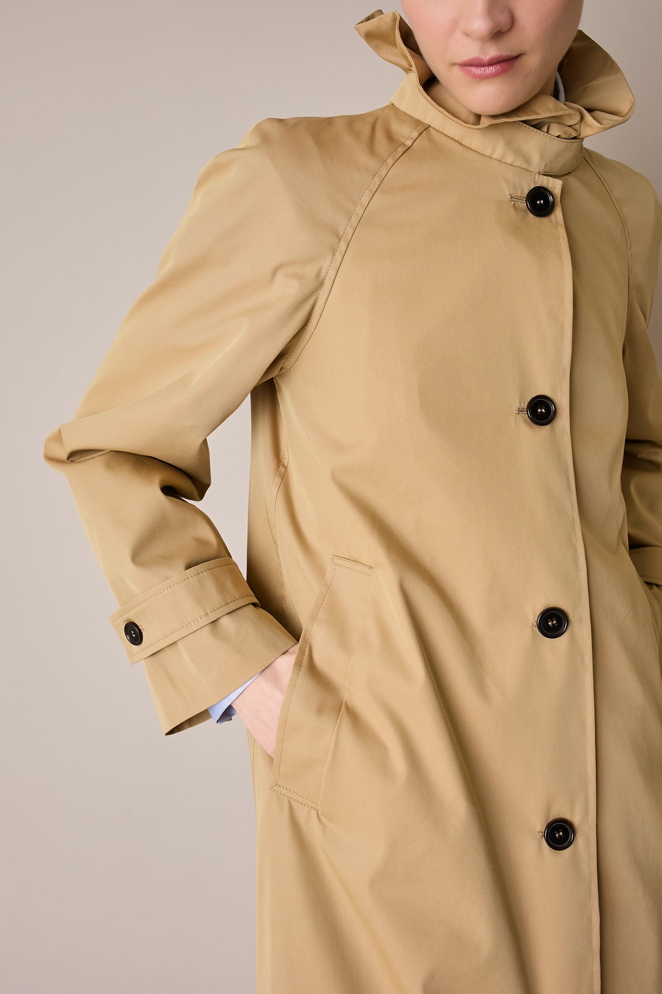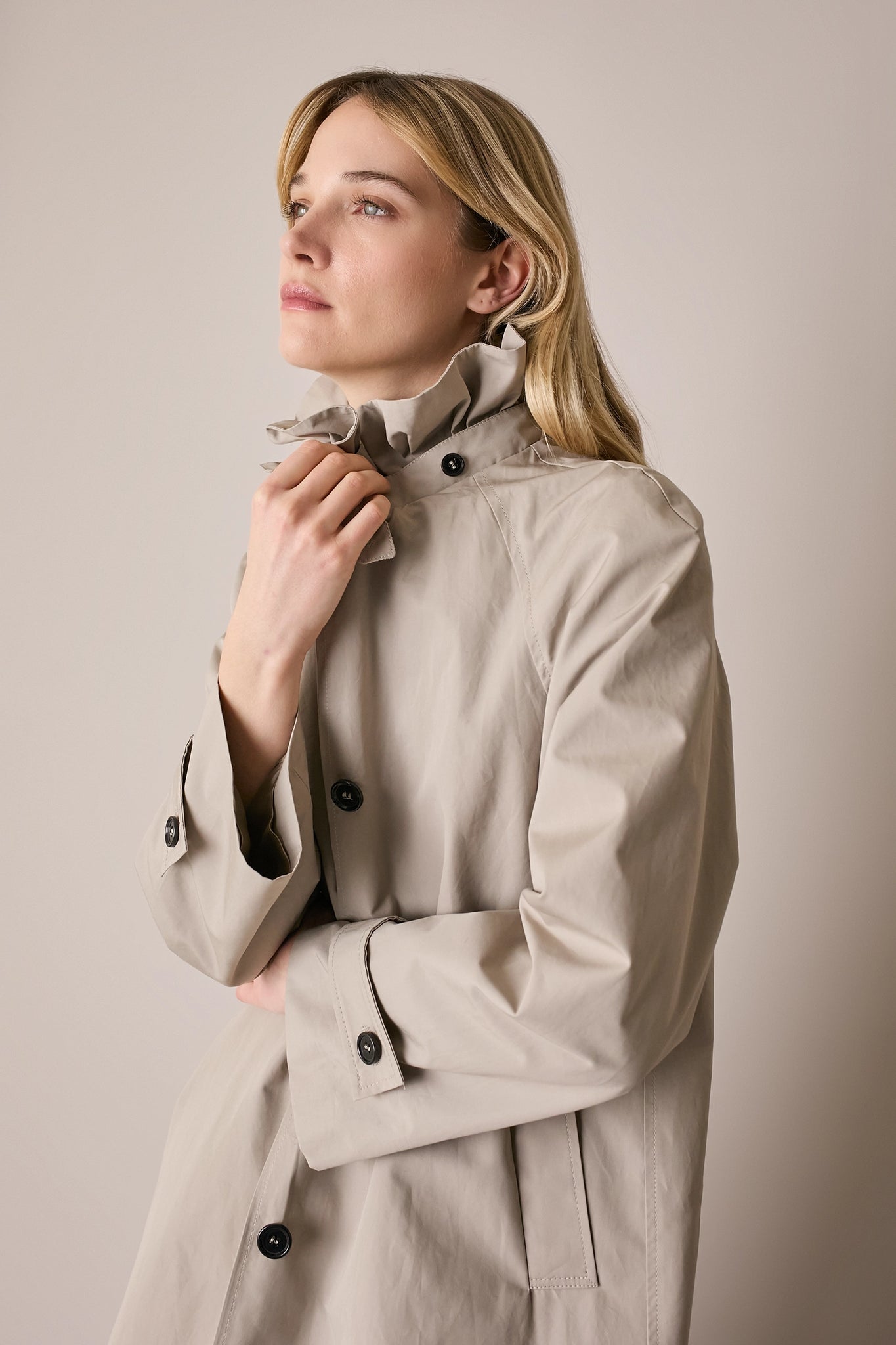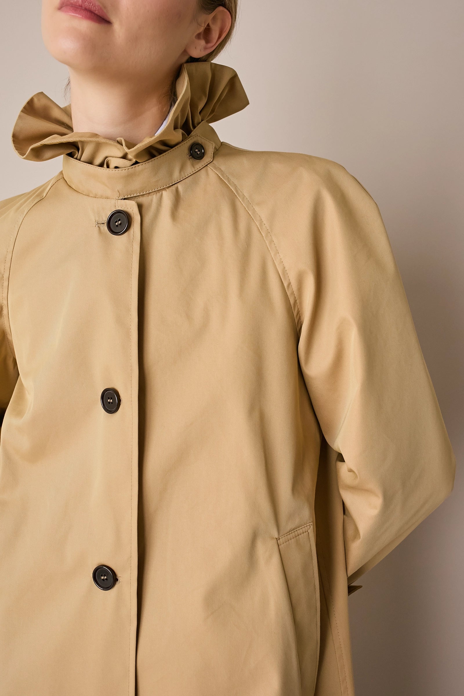 Questo trench in blend di cotone è caratterizzato da un dettaglio romantico: un colletto volant che lo distingue da tutti gli altri.