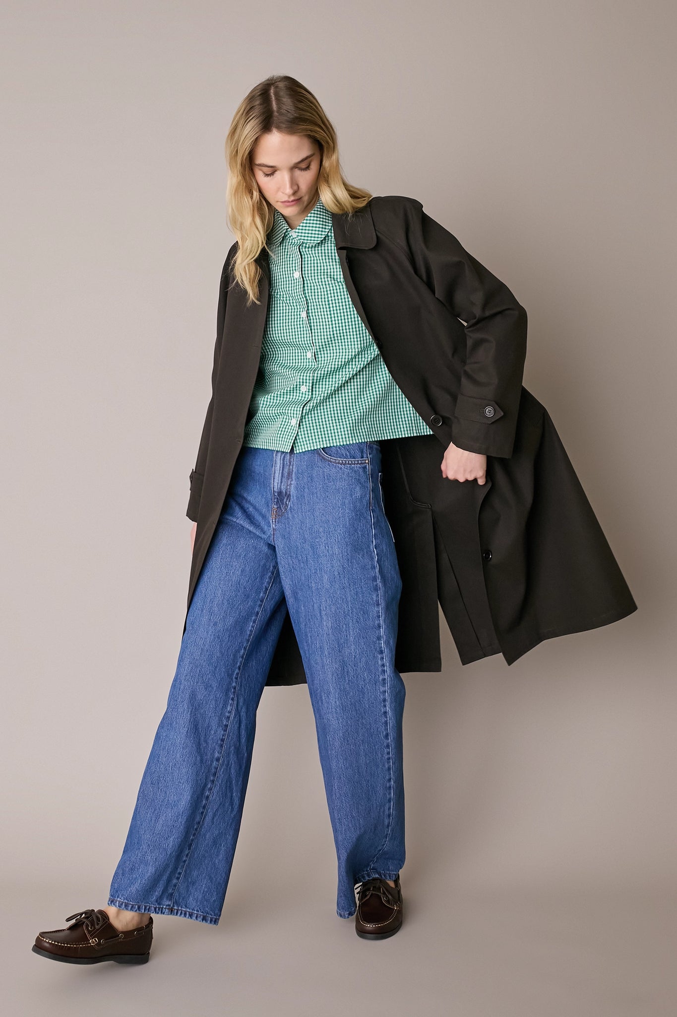 Questo trench in cotone strutturato è il soprabito ideale per la primavera. Disponibile in ebano.